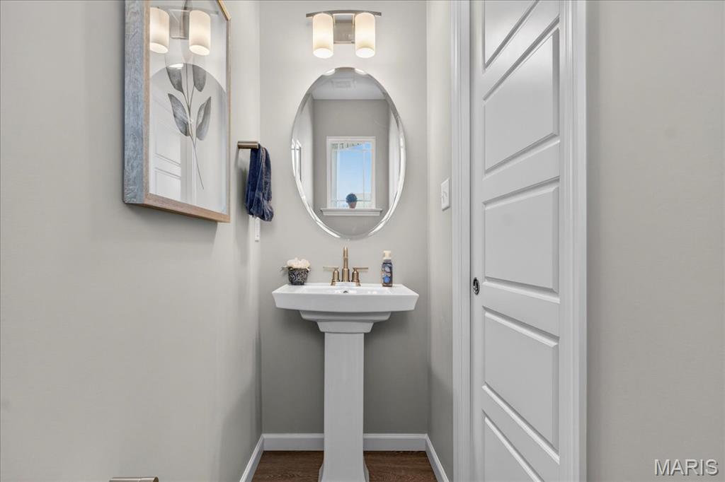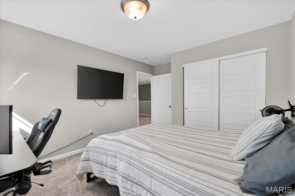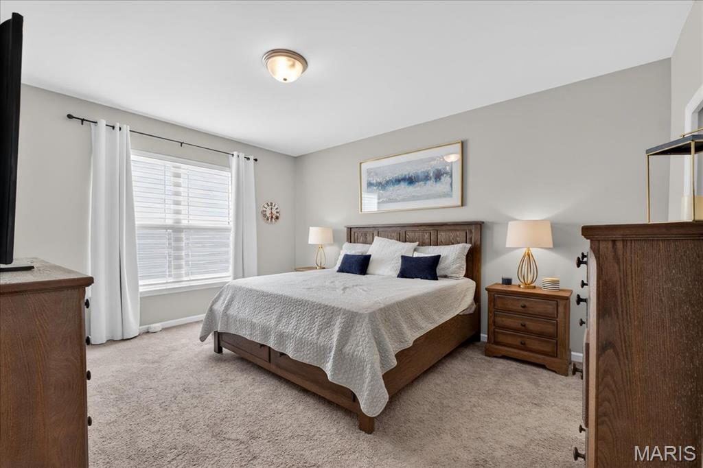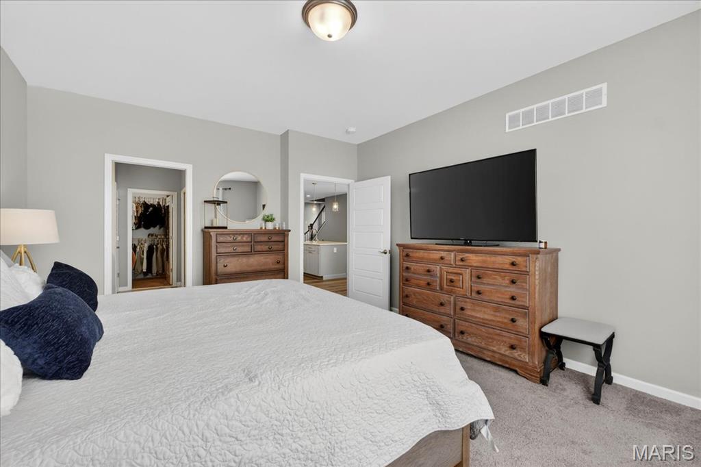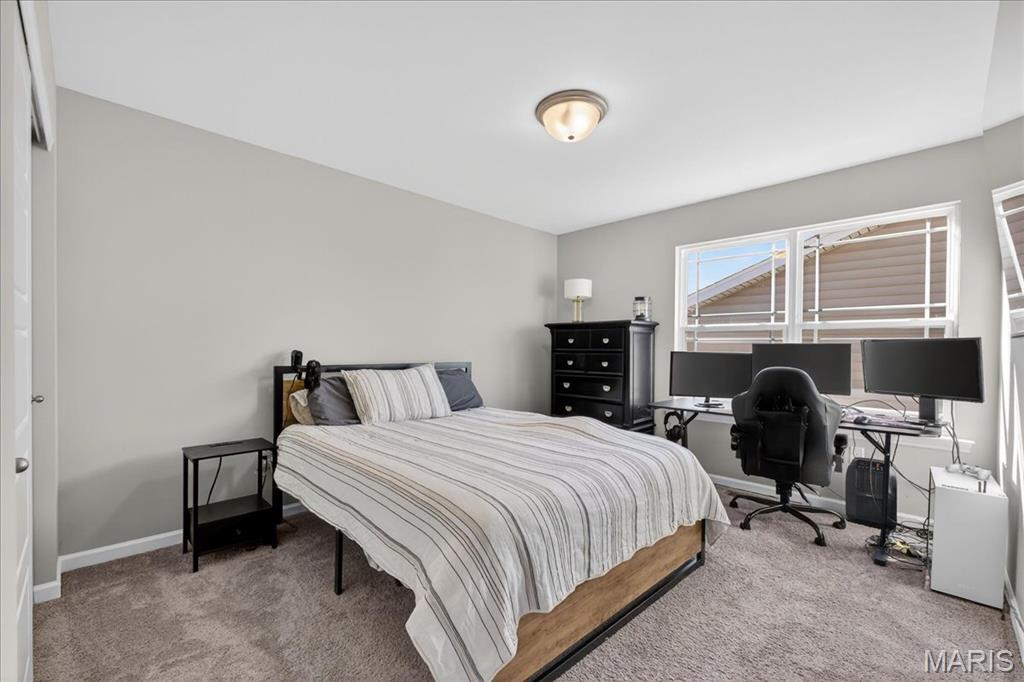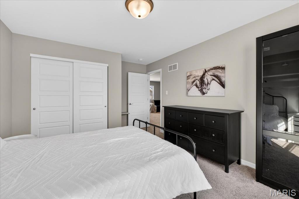 Like-new, only 3 years old, Fischer & Frichtel 1.5-story free-standing villa offering the perfect blend of luxury and low-maintenance living. Step inside to a spacious open floor plan highlighted by 9-foot ceilings that enhance the light and airy feel throughout. The stunning kitchen is a true showstopper, featuring quartz countertops, tile backsplash, custom 42" white cabinets with crown molding, stainless steel appliances, an oversized center island with seating, a wrap-around butler’s pantry, and an additional walk-in pantry. The kitchen opens seamlessly to the dedicated dining area with a beautiful chandelier and the family room, complete with an electric fireplace and access to the back patio—ideal for relaxing or entertaining. The main-level primary suite features a generous bedroom and a luxurious en-suite bath, complete with double vanities, a walk-in shower, a private commode area, and a spacious walk-in closet. A convenient laundry room and guest powder room complete the main level. Upstairs, you’ll find a large bonus room, two generously sized bedrooms, and a full bath. The lower level is ready for your finishing touches, featuring an egress window and rough-in plumbing for additional living space. Additional highlights include a 2-car attached garage, professional landscaping, zoned HVAC, and an amenity-rich community with lakes, pavilion, community gardens, and common grounds. Enjoy easy, low-maintenance living in this beautiful villa. Move-in ready with modern finishes and thoughtful design throughout.