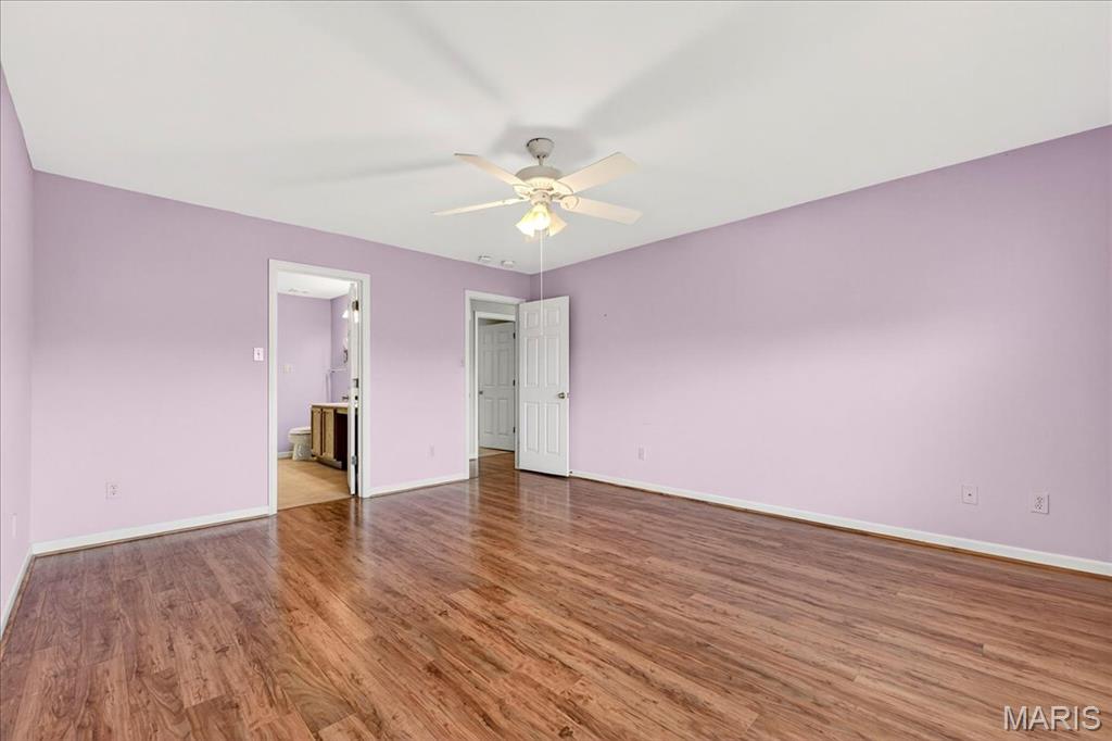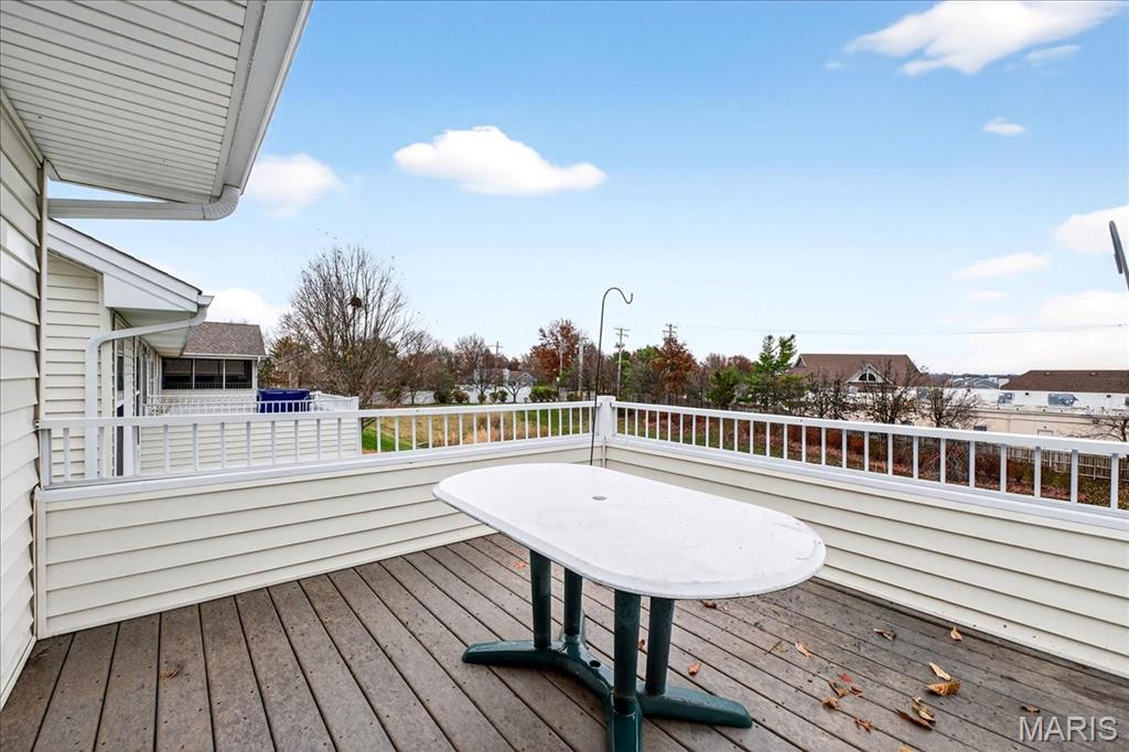 Lovely 3 bedroom, 3 full bath villa offering 1,942+/- sqft located in the highly desirable Wildwood area! Covered front porch welcomes you as you step inside the entry foyer. NEWER laminate “wood like” flooring through-out most of home. The spacious living/dining room combo boasts an expansive 12' vaulted ceiling, walls of windows allowing plenty of natural light & sliding glass door to a private composite deck overlooking the beautiful/peaceful community pond. Kitchen offers laminate “tile like” flooring, custom cabinetry, center island, 12’ vaulted ceiling & pantry. Primary suite features a ceiling fan, large single sink vanity w/makeup alcove, shower, tub & large walk-in closet. 2nd Bedroom with slide closet & shares hall full bath. Laundry room completes main level. Lower level extends living quarters with a rec room w/recessed lighting, built-in wine fridge & sliding glass walk-out to patio, 3rd bedroom w/carpet & slide closet share hall full bath, office & unfinished storage area w/French door entry. Outdoors, one will enjoy a level backyard with a partially covered concrete patio & 2-Car attached garage. Within the Rockwood School District w/walking distance access to Hwy 100/Manchester Rd, shopping, dining, & Wildwood amenities. Must see!