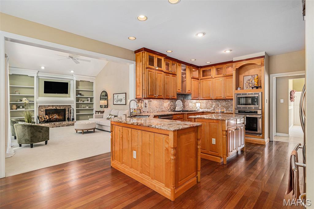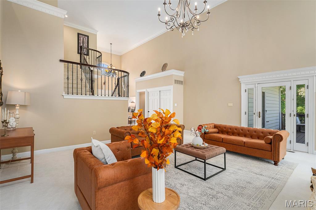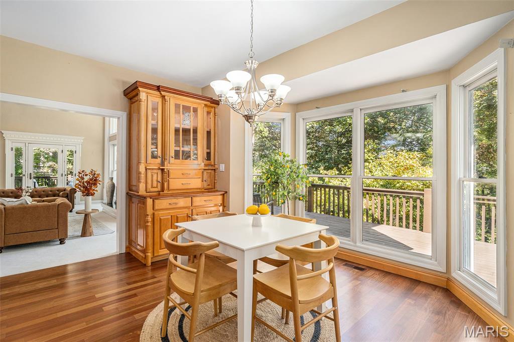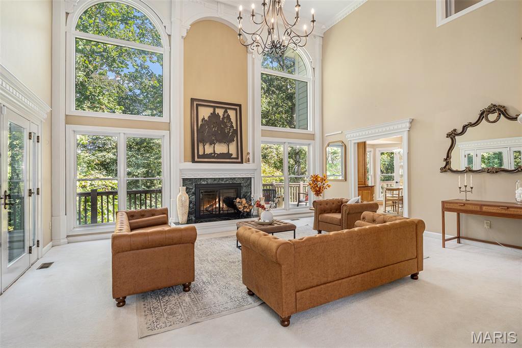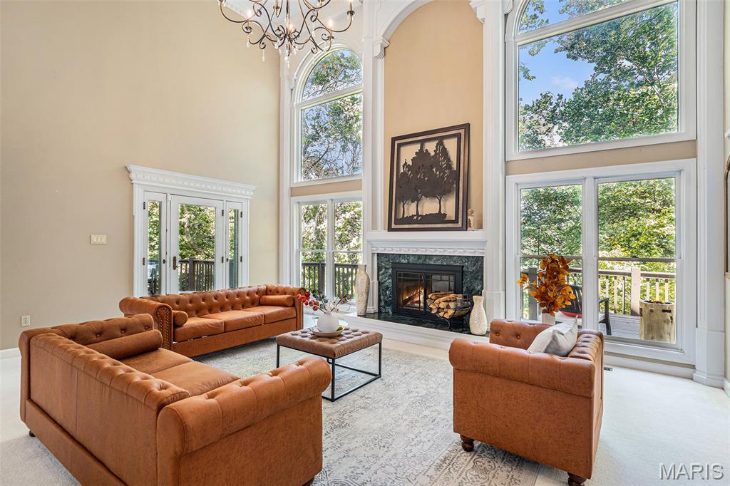 Welcome home and be dazzled by the glorious natural light pouring into every room of this beautiful Executive Home that blends function with luxury! As soon as you enter the front door, the open space makes you feel right at home. A main floor master bedroom, two baths, and laundry are all there along with the Great Room, an additional Living Room and Formal Dining Room, and TWO fireplaces! The Custom Cook's Kitchen has beautiful wooden cabinets, artistic granite and an adjacent Dining Area positioned in a lovely bay window setting looking out onto the deck and your OWN WOODS in back! The main floor deck runs the length of the house and is an entire separate living area in a beautiful natural setting overlooking your substantial wooded lot. The spacious full basement has areas for living, working, entertaining, with a THIRD fireplace and a large possible sleeping area with a full bath, and plenty of storage areas. Walk out to your hot tub on the lower deck from the basement to enjoy cozy, quiet evenings soaking and relaxing. The architecture, custom quality craftsmanship and timeless design reflect sophistication and thoughtful design that balances upscale living with practical elegance. The subdivision has fishing lakes, a pool, tennis courts, walking/hiking paths and more for your enjoyment. This beauty won't last long, so make it yours to call home!