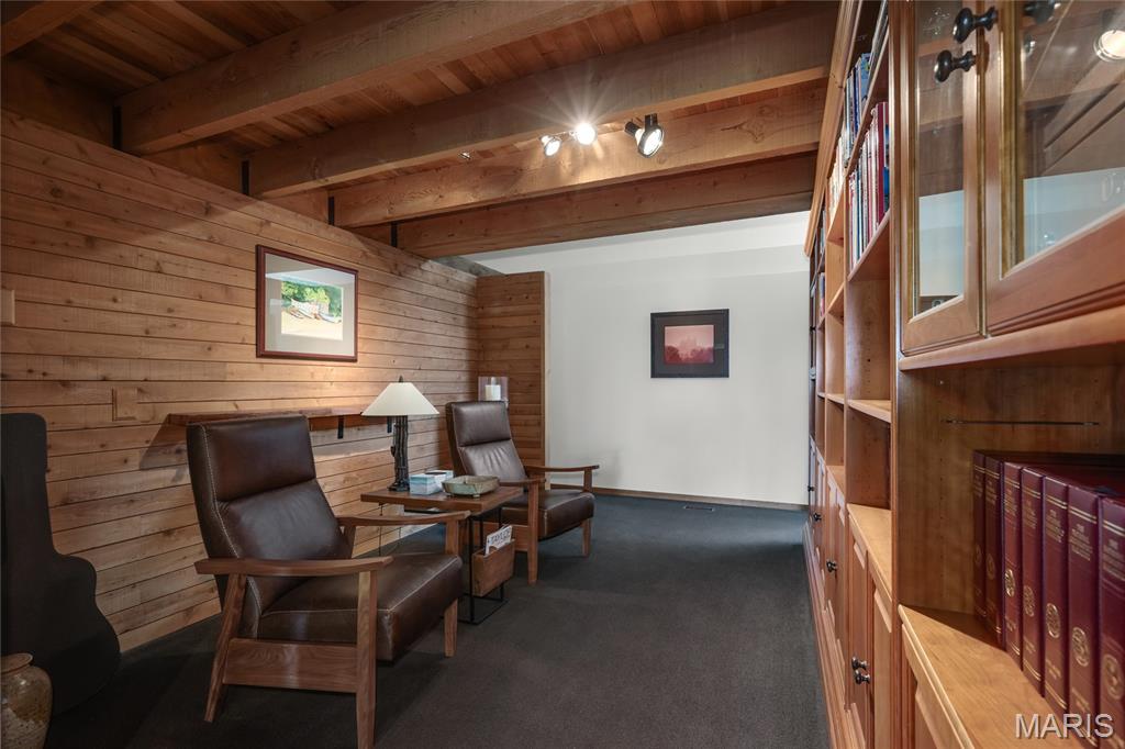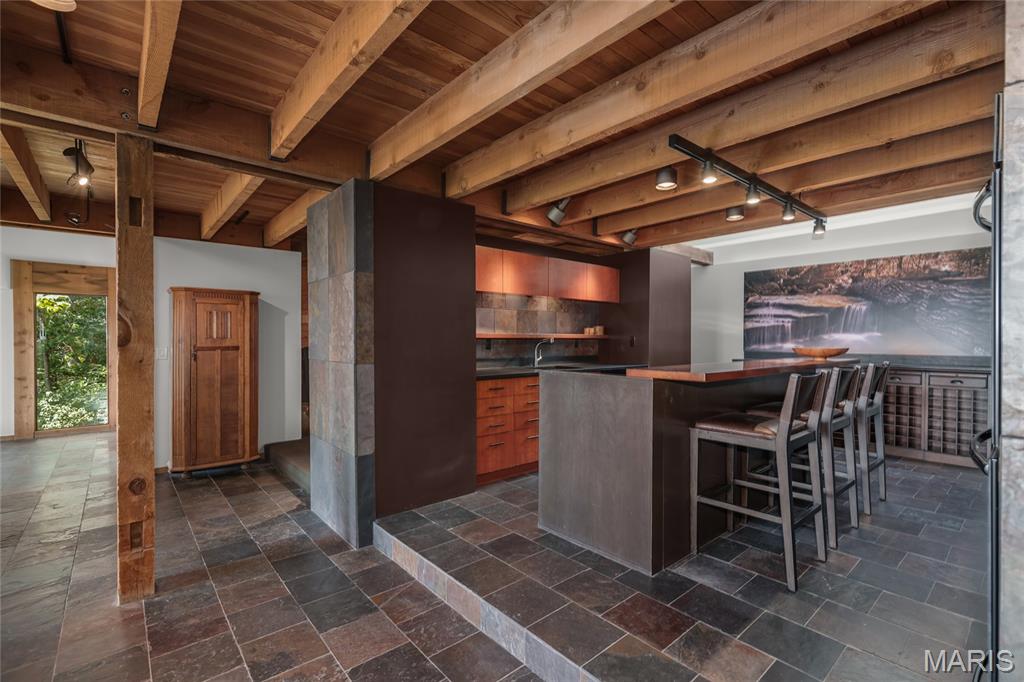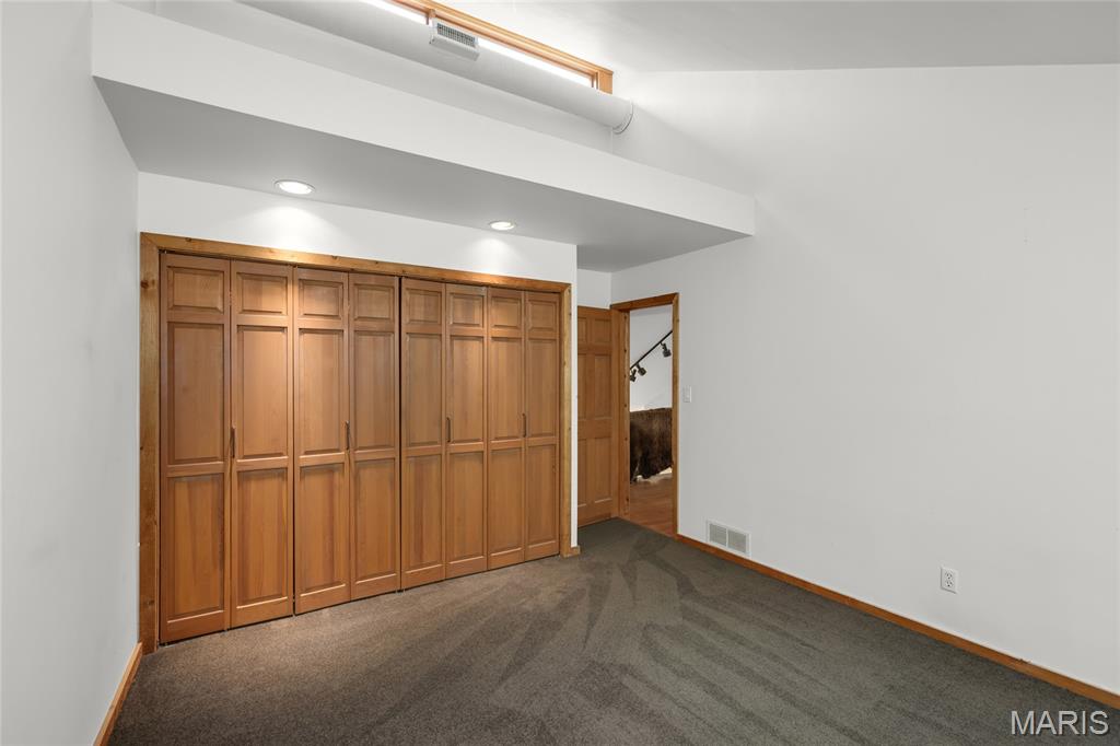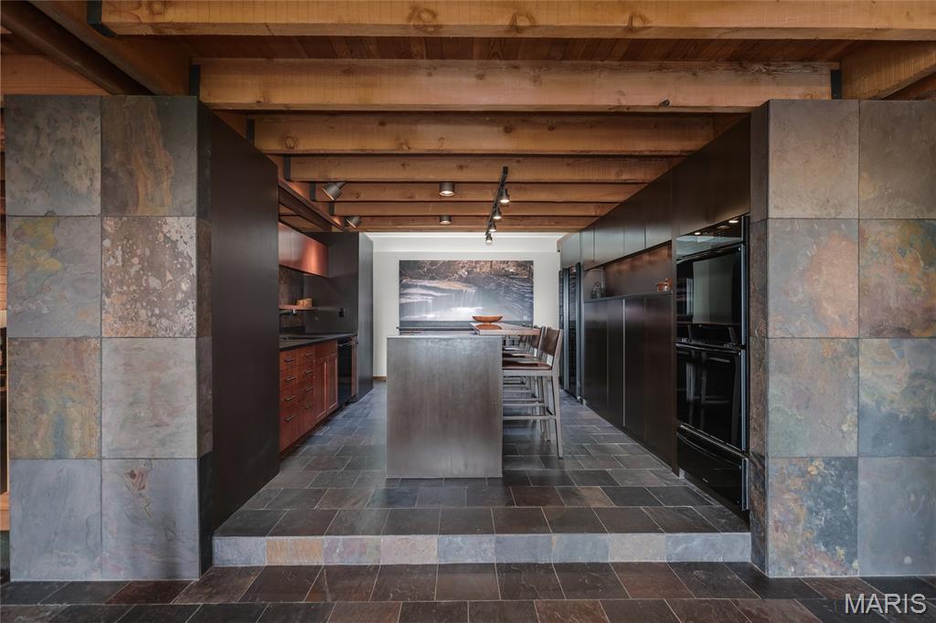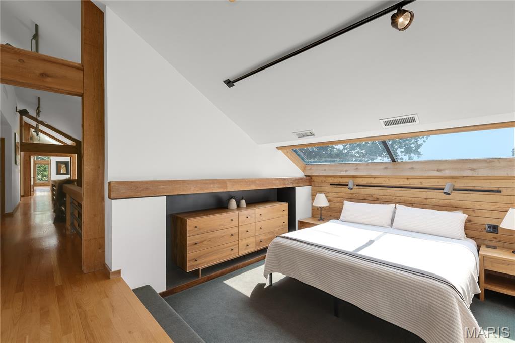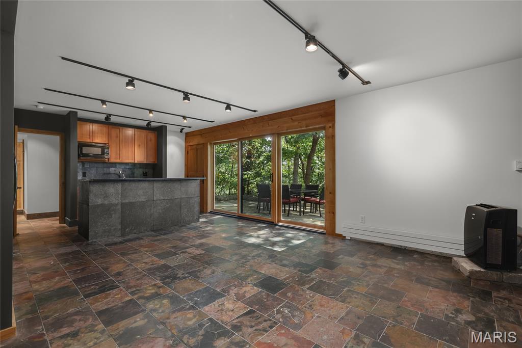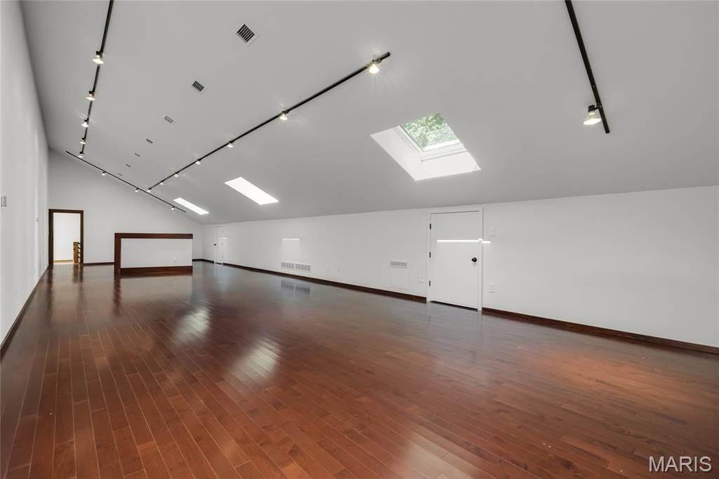 A true architectural masterpiece, this extraordinary 3.5-acre estate was custom designed & solely owned by a well-known St Louis-based architect, & offers sweeping, unobstructed views of the Meramec River Valley. With over 6,500sqft of total living space, this one-of-a-kind home is designed to showcase the landscape with a dramatic wall of windows that spans the main living areas, flooding the interior with natural light & treetop vistas for miles. Main level features formal dining, sleek modern kitchen, library, powder room, 2-story great room & family room divided by a see-thru fireplace. Private primary suite features vaulted sleeping area with skylight views of the stars & bath with freestanding soaking tub & custom walk-in shower. Discover another vaulted living space with a wall of glass, slate floors & 2nd large fireplace, a wide gallery-style hallway, & a stunning mudroom with circular staircase leading to a flexible upper level. This wing includes a 4th bed (currently used as an office with Murphy bed), full bath, & large-sized vaulted bonus space ready for your vision. Walkout lower level offers recreation space, kitchenette, full bath, & storage with additional laundry hookups. Separate exterior entrance leads to a full apartment with kitchen, living room, bed, bath & laundry. Multiple patios & stone pathways surround the home, creating extensive outdoor living spaces designed for entertaining & enjoying the scenery & breathtaking views.