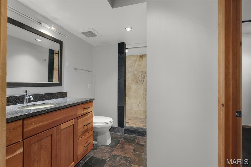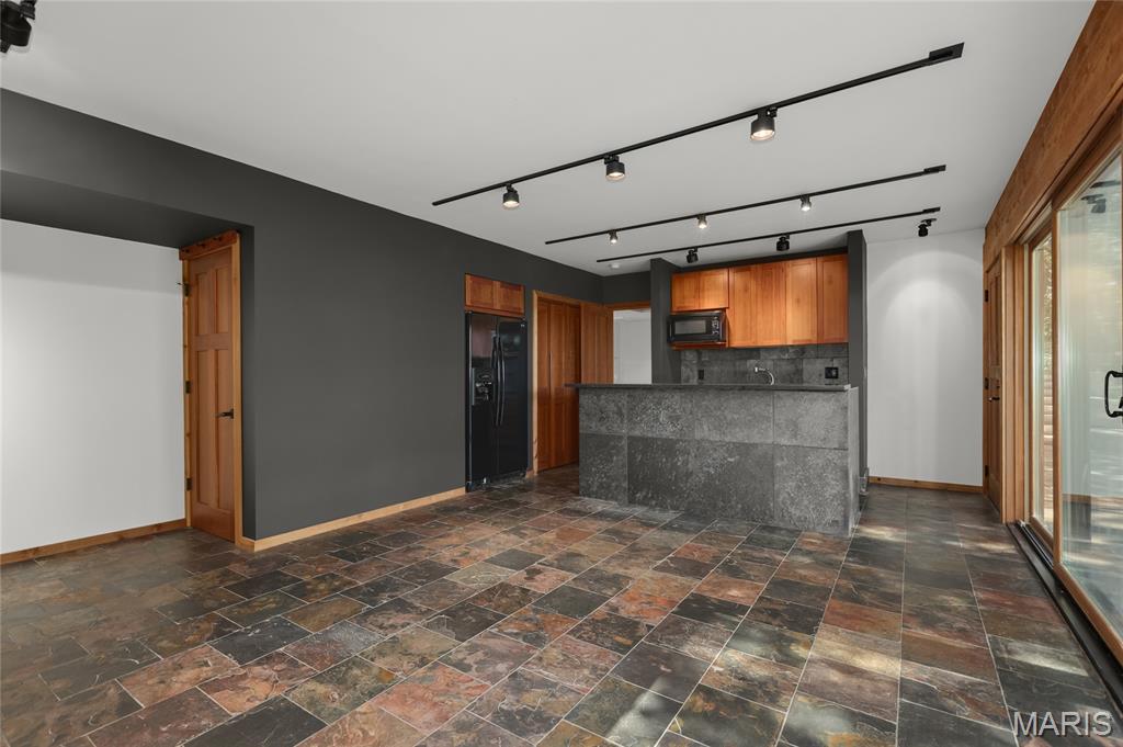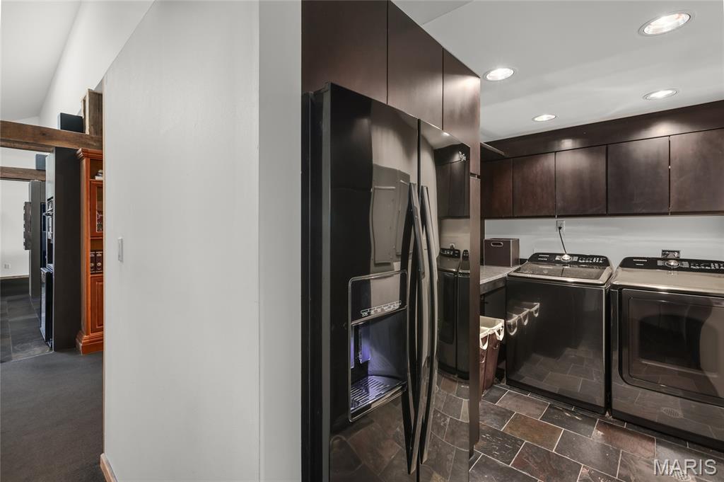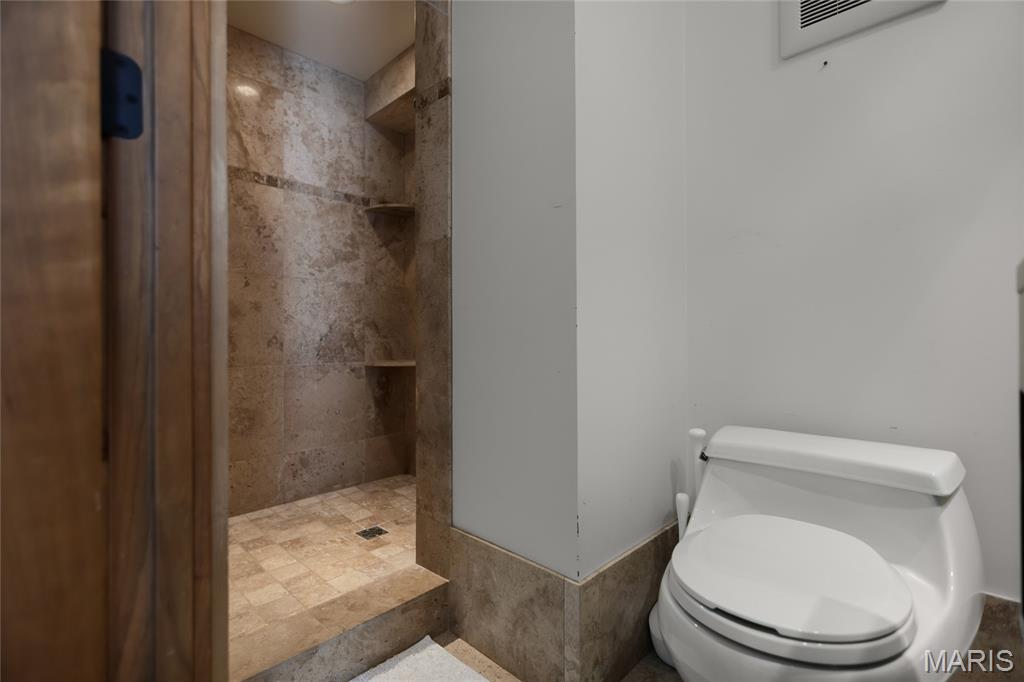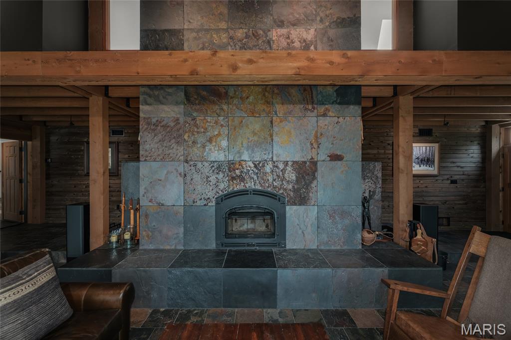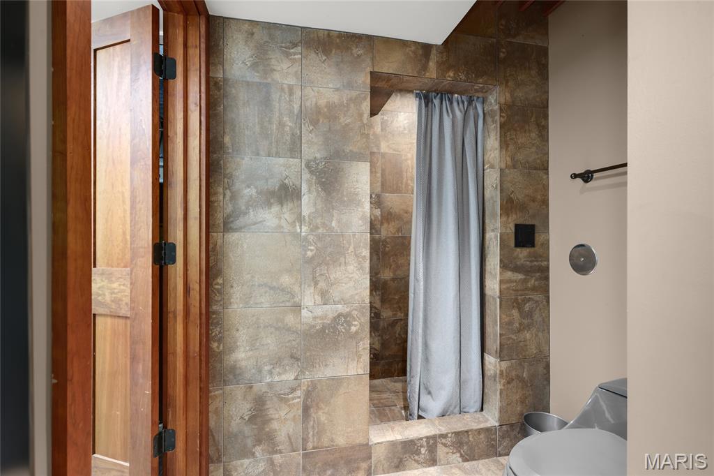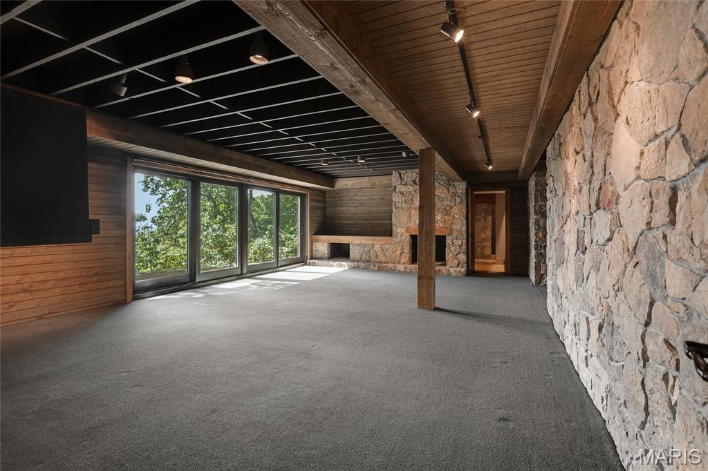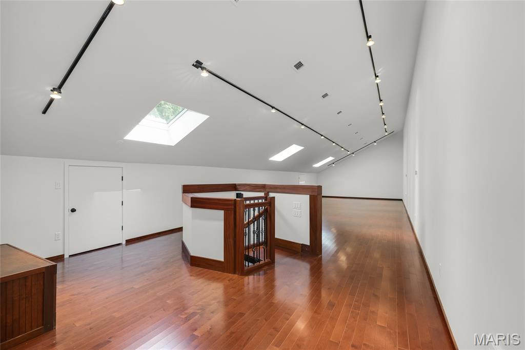 A true architectural masterpiece, this extraordinary 3.5-acre estate was custom designed & solely owned by a well-known St Louis-based architect, & offers sweeping, unobstructed views of the Meramec River Valley. With over 6,500sqft of total living space, this one-of-a-kind home is designed to showcase the landscape with a dramatic wall of windows that spans the main living areas, flooding the interior with natural light & treetop vistas for miles. Main level features formal dining, sleek modern kitchen, library, powder room, 2-story great room & family room divided by a see-thru fireplace. Private primary suite features vaulted sleeping area with skylight views of the stars & bath with freestanding soaking tub & custom walk-in shower. Discover another vaulted living space with a wall of glass, slate floors & 2nd large fireplace, a wide gallery-style hallway, & a stunning mudroom with circular staircase leading to a flexible upper level. This wing includes a 4th bed (currently used as an office with Murphy bed), full bath, & large-sized vaulted bonus space ready for your vision. Walkout lower level offers recreation space, kitchenette, full bath, & storage with additional laundry hookups. Separate exterior entrance leads to a full apartment with kitchen, living room, bed, bath & laundry. Multiple patios & stone pathways surround the home, creating extensive outdoor living spaces designed for entertaining & enjoying the scenery & breathtaking views.