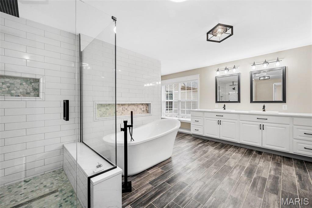 The ULTIMATE Family Retreat awaits sitting on 5.7 ACRES with a 7 CAR GARAGE!! This impressive estate features 6.5'' White Oak hardwood floors, Main Floor Primary, 2nd Floor Primary PLUS In Law Quarters. The sellers have done some incredible updates throughout! Walk in the 2 story entry foyer to the den and formal dining room. Living Room and Hearth room are complete with large format tile and gas fireplaces. Designer kitchen boasts Huge Center Island, new Bosch Appliances, backsplash, stone Counters and adjoins to the hearth room and dining room. Gorgeous Primary retreat has large walk in closets, huge shower w/free standing tub. Upstairs has a loft, additional laundry rm, LARGE Upstairs Primary bdrm suite and 3 additional bedrooms. The w/o lower level has a game room and full bath. Walk out the lower level doors to your private backyard complete with patio pavers and a wood burning fireplace. In Law Quarters is complete w/Large full bath, laundry, full kitchen, bdrm and living space.