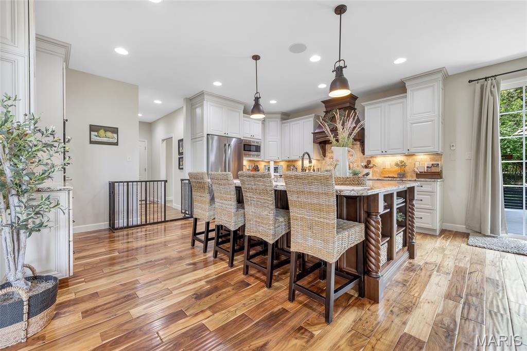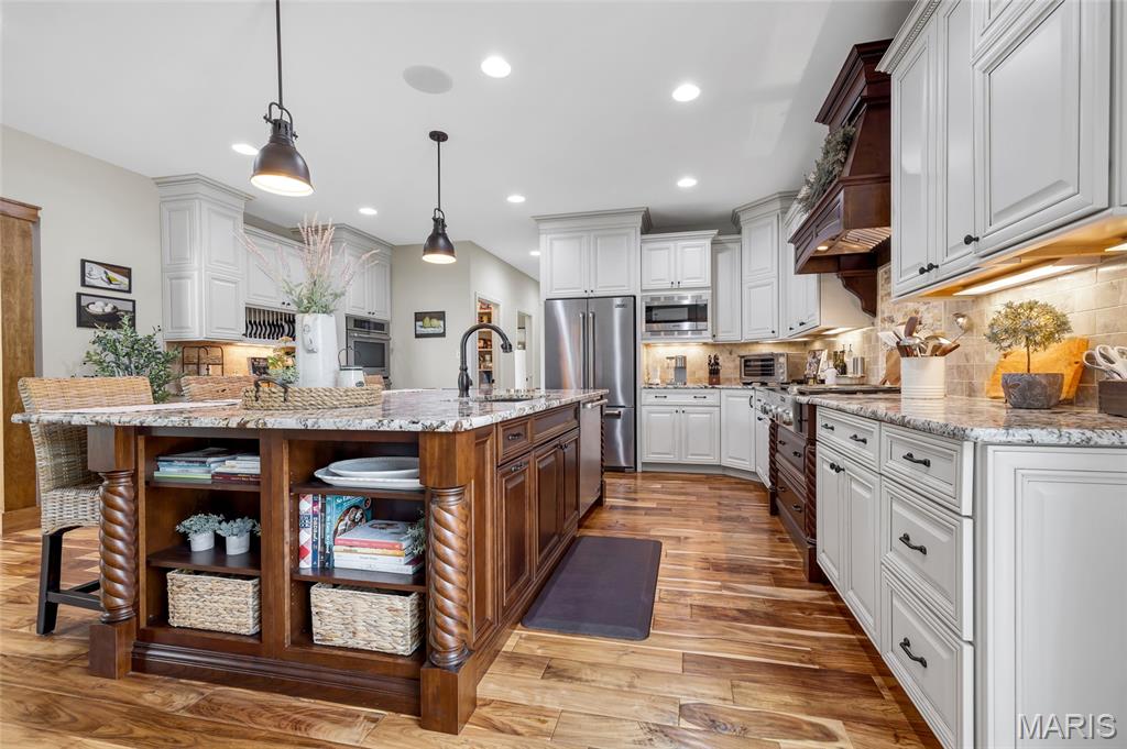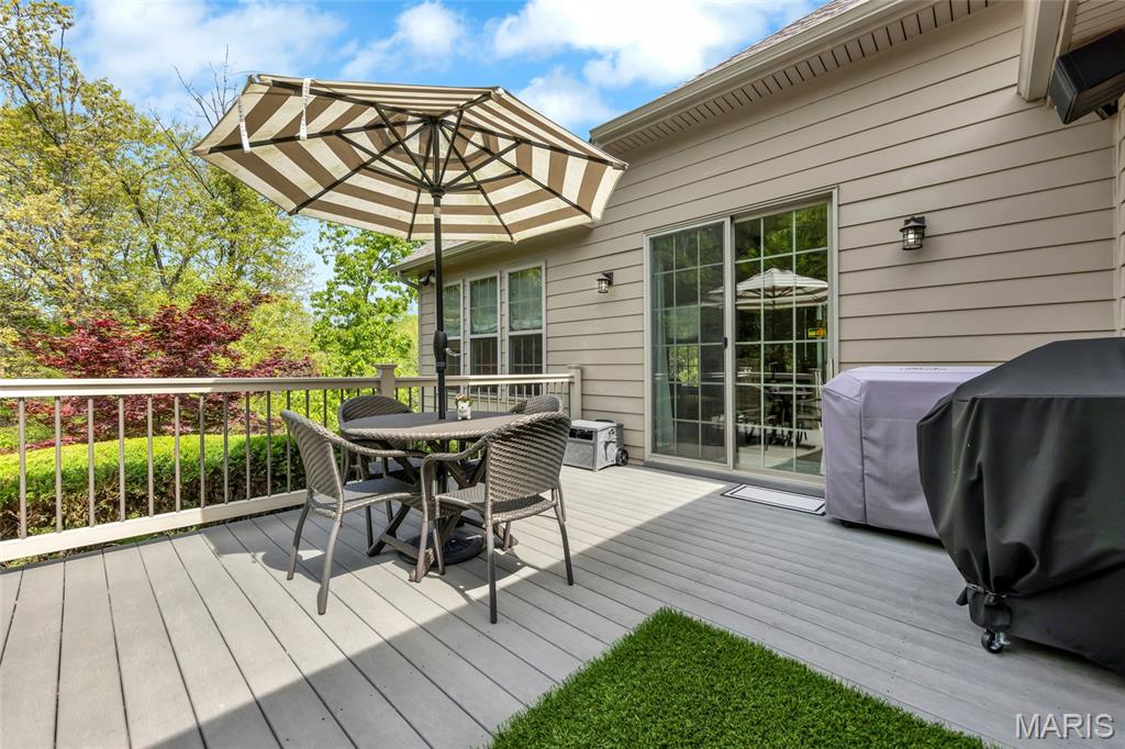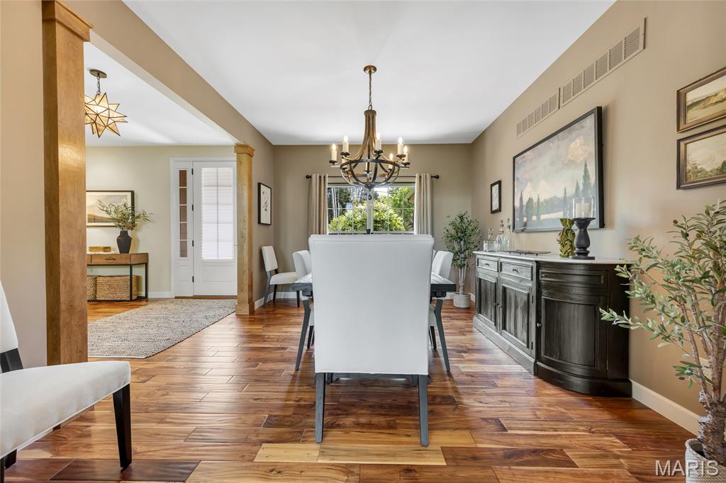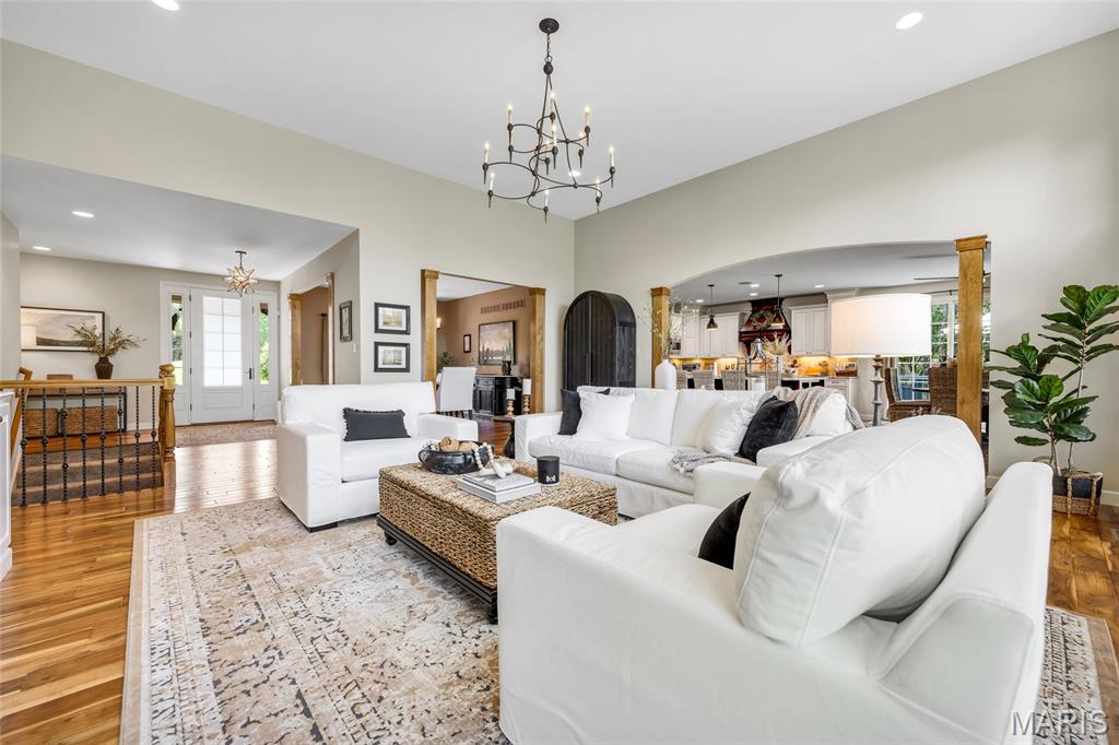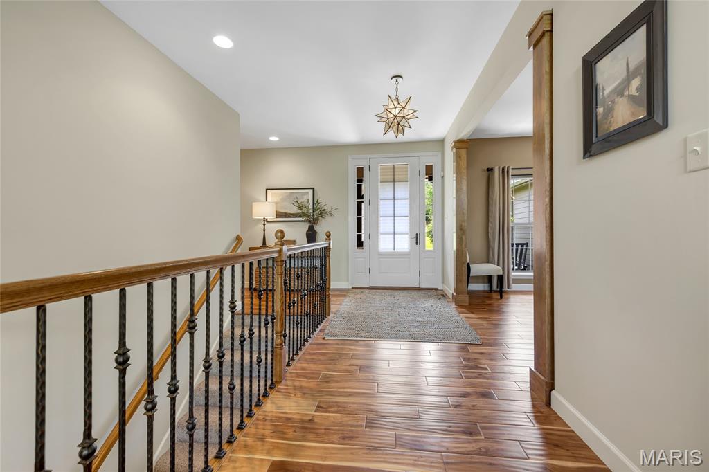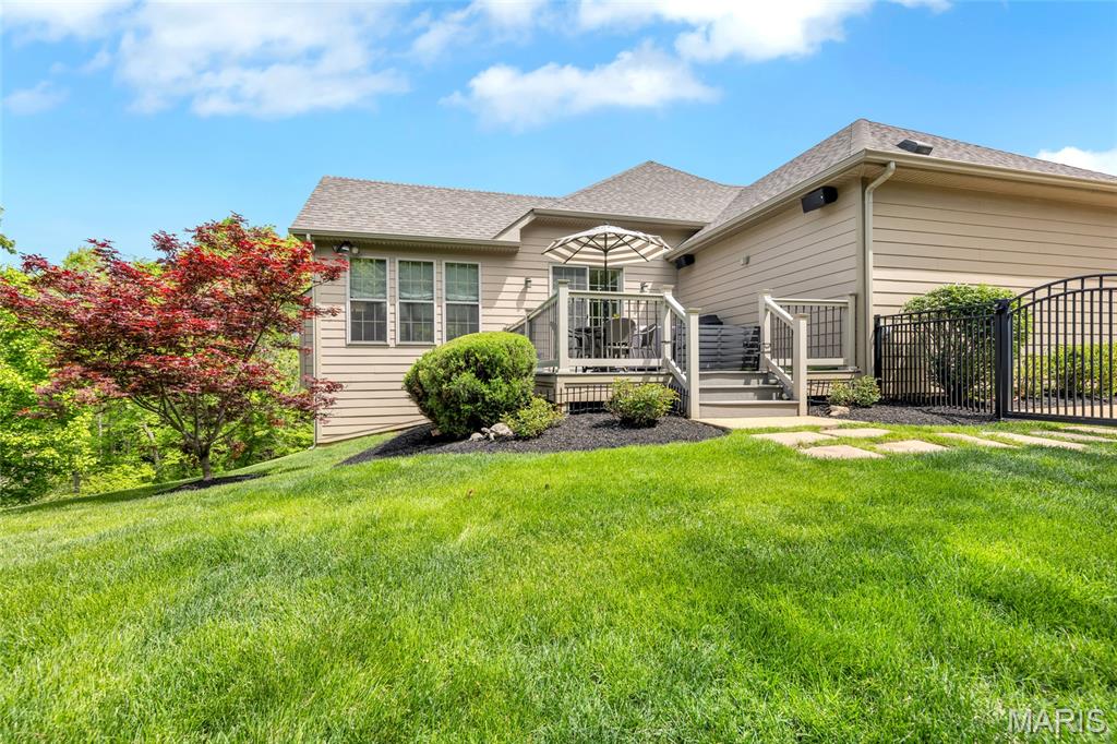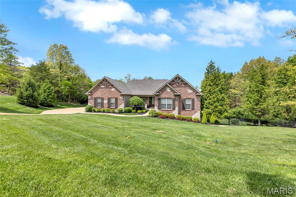 Welcome to 1707 Shepard Road. Experience refined living in this stunning Fischer & Fritchel 4 bedroom, 3.5 bath ranch nestled on 3.09 private acres with 4,000 sq. ft. of beautifully finished living space. From the moment you arrive, the stately curb appeal sets the tone for the thoughtful design within. The foyer features rich hardwoods that expand throughout the home and opens to a formal dining room distinguished by wood beamed columns, while the expansive great room boasts custom entertainment center and built-in speakers and abundant natural light flowing through the vast window wall. The open concept chef’s kitchen impresses with a generous center island, stainless steel appliances, double wall ovens, stone counters, high end cabinetry and a walk in pantry, seamlessly connecting to the breakfast room with deck access, and a warm hearth room anchored by a stone gas fireplace. The primary suite is a luxe retreat with spacious, dual walk in closets, double vanities and a substantial, spa like tiled shower. Two additional bedrooms serviced by a full bath, large mudroom with laundry and a powder room complete the main level. The walk out lower level is ideal for entertaining and features a large family room, a full wet bar, as well as a guest bedroom with walk in closet, full bath, home gym area and ample unfinished space for storage or additional expansion. Enjoy the secluded, tree lined backyard while relaxing on the platform deck or lower patio area. An oversized, side entry 3 car garage, pristine landscaping, partially fenced yard and lawn irrigation completes this exceptional home. With upscale finishes throughout and every detail carefully considered, this meticulous residence offers comfort, luxury and location. Fabulous opportunity within the award winning Rockwood School District.