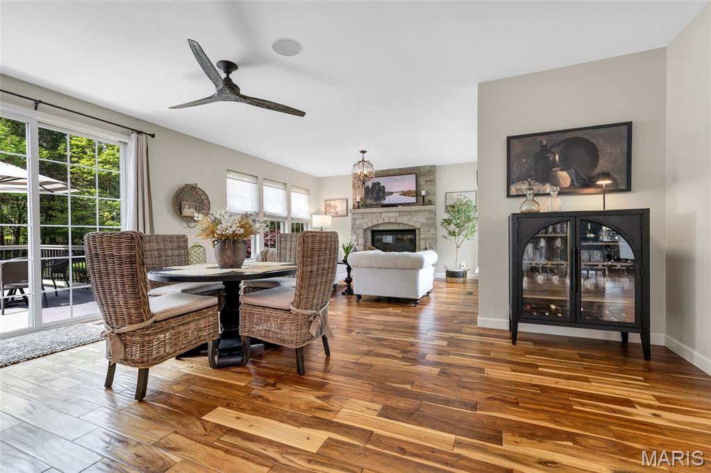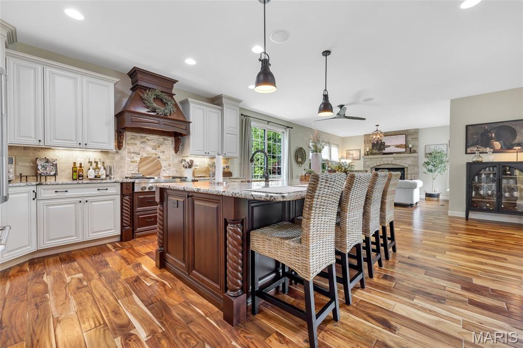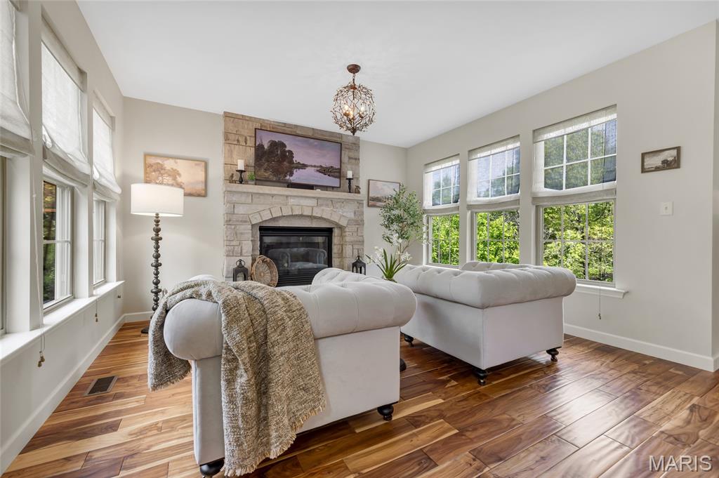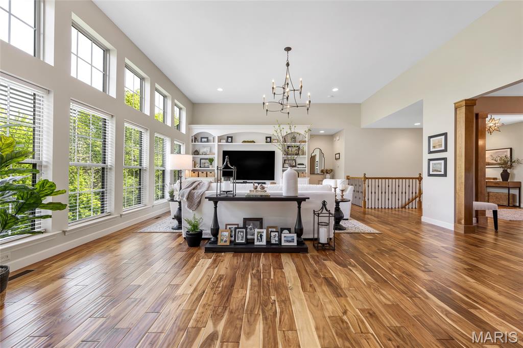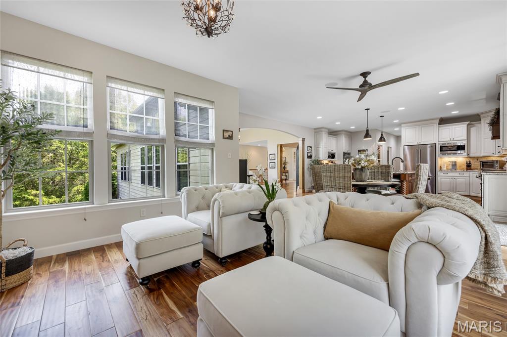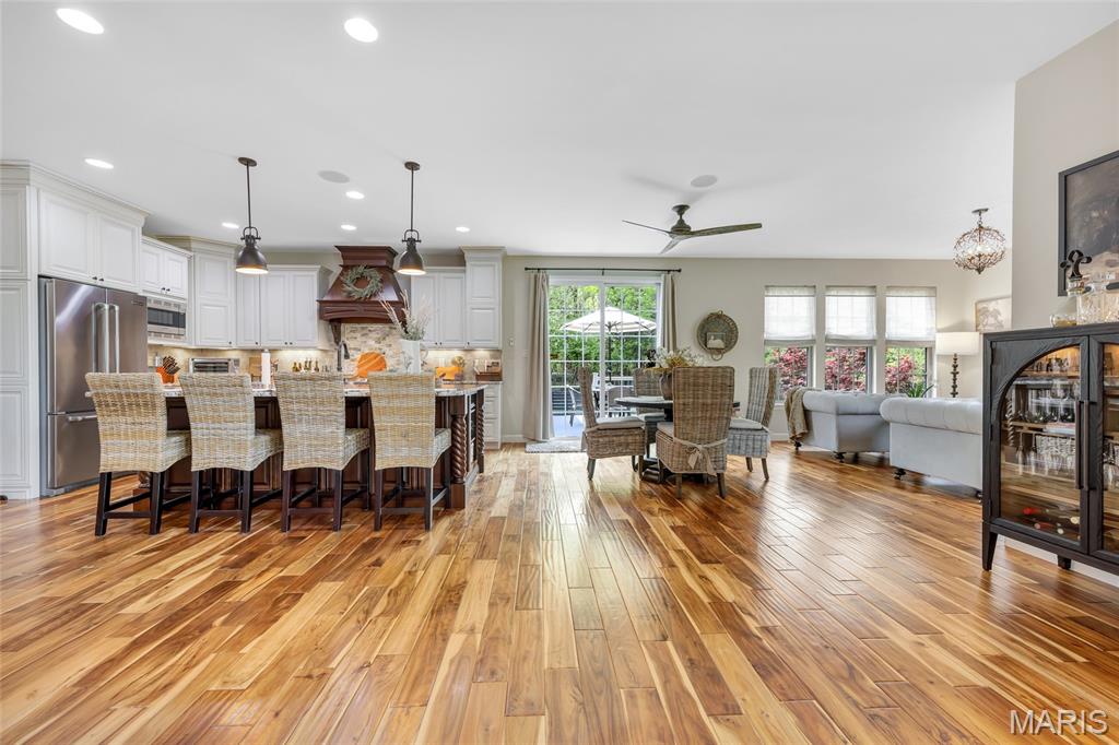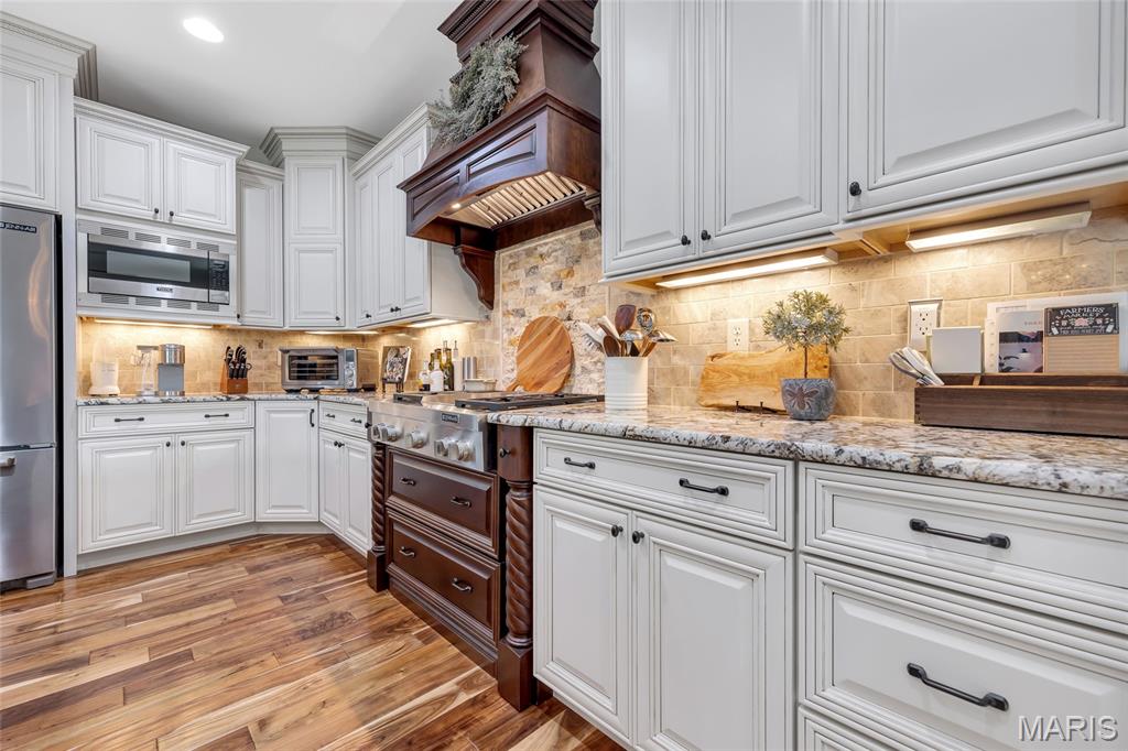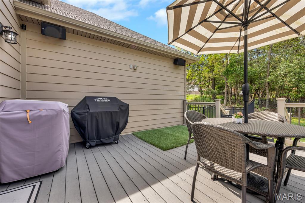 Welcome to 1707 Shepard Road. Experience refined living in this stunning Fischer & Fritchel 4 bedroom, 3.5 bath ranch nestled on 3.09 private acres with 4,000 sq. ft. of beautifully finished living space. From the moment you arrive, the stately curb appeal sets the tone for the thoughtful design within. The foyer features rich hardwoods that expand throughout the home and opens to a formal dining room distinguished by wood beamed columns, while the expansive great room boasts custom entertainment center and built-in speakers and abundant natural light flowing through the vast window wall. The open concept chef’s kitchen impresses with a generous center island, stainless steel appliances, double wall ovens, stone counters, high end cabinetry and a walk in pantry, seamlessly connecting to the breakfast room with deck access, and a warm hearth room anchored by a stone gas fireplace. The primary suite is a luxe retreat with spacious, dual walk in closets, double vanities and a substantial, spa like tiled shower. Two additional bedrooms serviced by a full bath, large mudroom with laundry and a powder room complete the main level. The walk out lower level is ideal for entertaining and features a large family room, a full wet bar, as well as a guest bedroom with walk in closet, full bath, home gym area and ample unfinished space for storage or additional expansion. Enjoy the secluded, tree lined backyard while relaxing on the platform deck or lower patio area. An oversized, side entry 3 car garage, pristine landscaping, partially fenced yard and lawn irrigation completes this exceptional home. With upscale finishes throughout and every detail carefully considered, this meticulous residence offers comfort, luxury and location. Fabulous opportunity within the award winning Rockwood School District.
