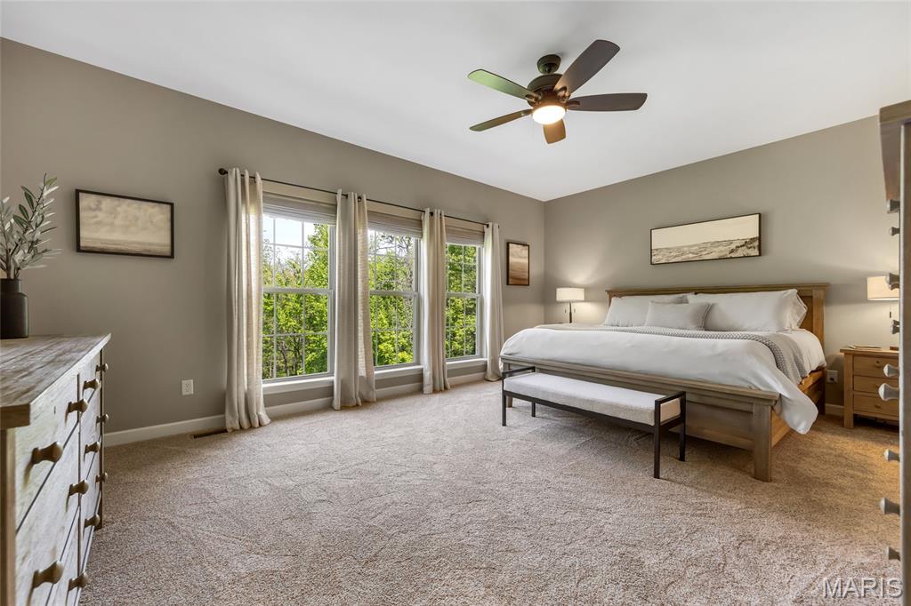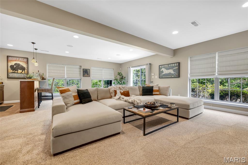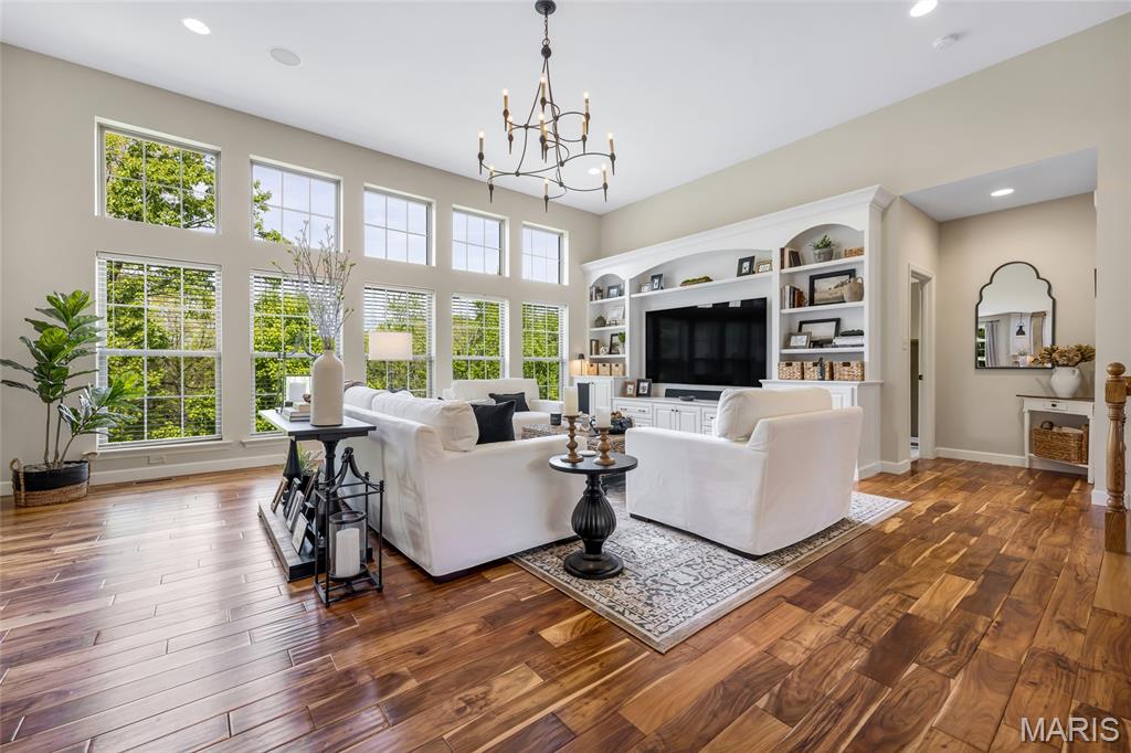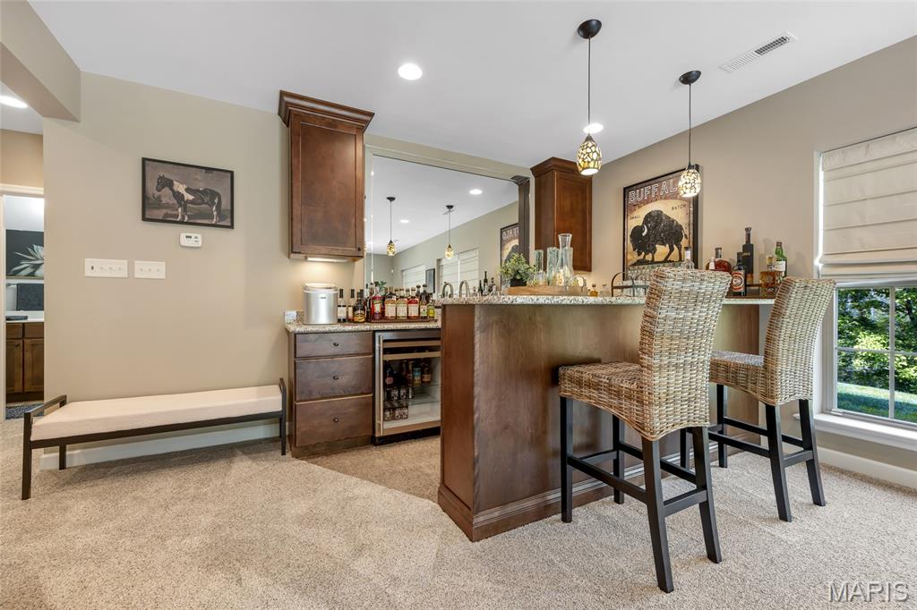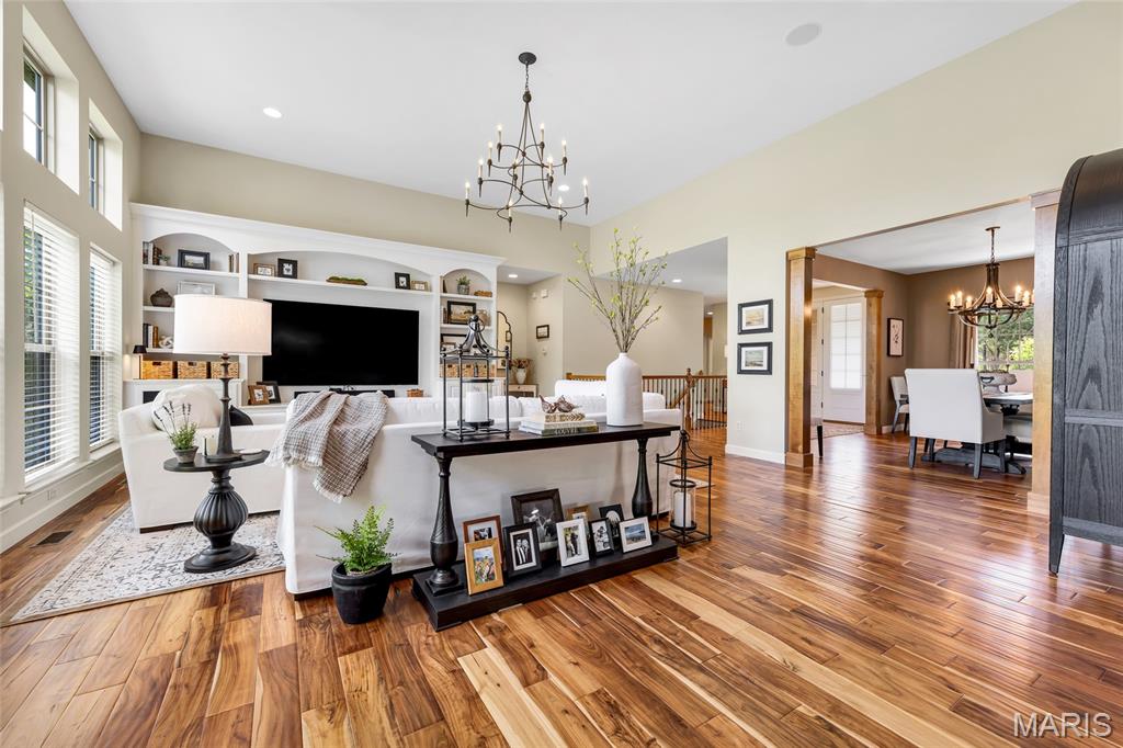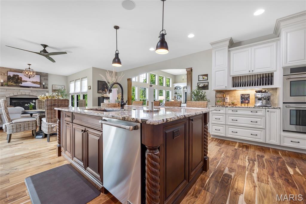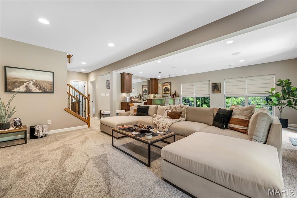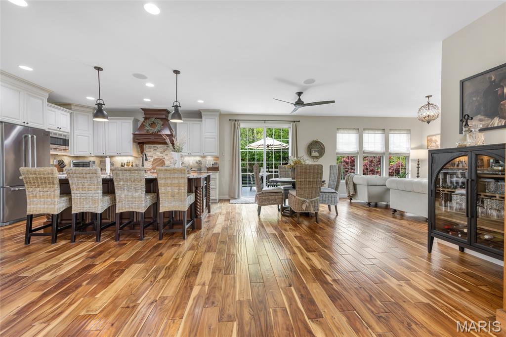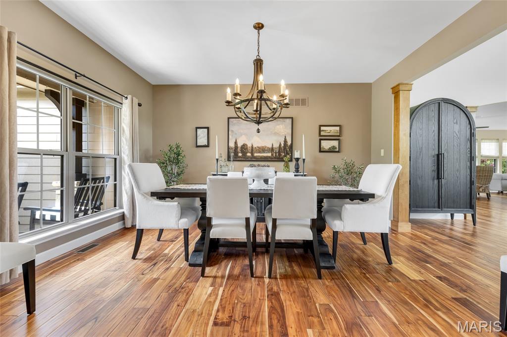 Welcome to 1707 Shepard Road. Experience refined living in this stunning Fischer & Fritchel 4 bedroom, 3.5 bath ranch nestled on 3.09 private acres with 4,000 sq. ft. of beautifully finished living space. From the moment you arrive, the stately curb appeal sets the tone for the thoughtful design within. The foyer features rich hardwoods that expand throughout the home and opens to a formal dining room distinguished by wood beamed columns, while the expansive great room boasts custom entertainment center and built-in speakers and abundant natural light flowing through the vast window wall. The open concept chef’s kitchen impresses with a generous center island, stainless steel appliances, double wall ovens, stone counters, high end cabinetry and a walk in pantry, seamlessly connecting to the breakfast room with deck access, and a warm hearth room anchored by a stone gas fireplace. The primary suite is a luxe retreat with spacious, dual walk in closets, double vanities and a substantial, spa like tiled shower. Two additional bedrooms serviced by a full bath, large mudroom with laundry and a powder room complete the main level. The walk out lower level is ideal for entertaining and features a large family room, a full wet bar, as well as a guest bedroom with walk in closet, full bath, home gym area and ample unfinished space for storage or additional expansion. Enjoy the secluded, tree lined backyard while relaxing on the platform deck or lower patio area. An oversized, side entry 3 car garage, pristine landscaping, partially fenced yard and lawn irrigation completes this exceptional home. With upscale finishes throughout and every detail carefully considered, this meticulous residence offers comfort, luxury and location. Fabulous opportunity within the award winning Rockwood School District.