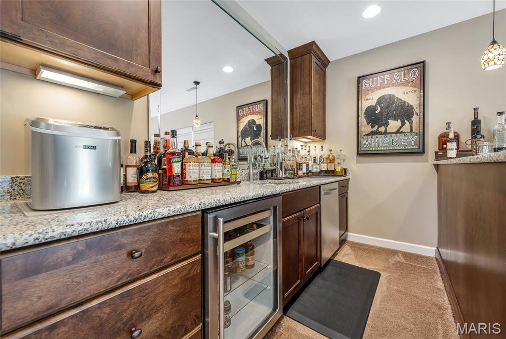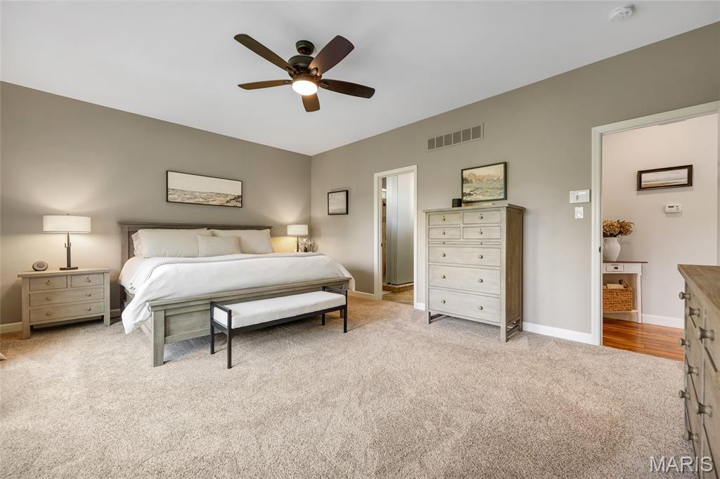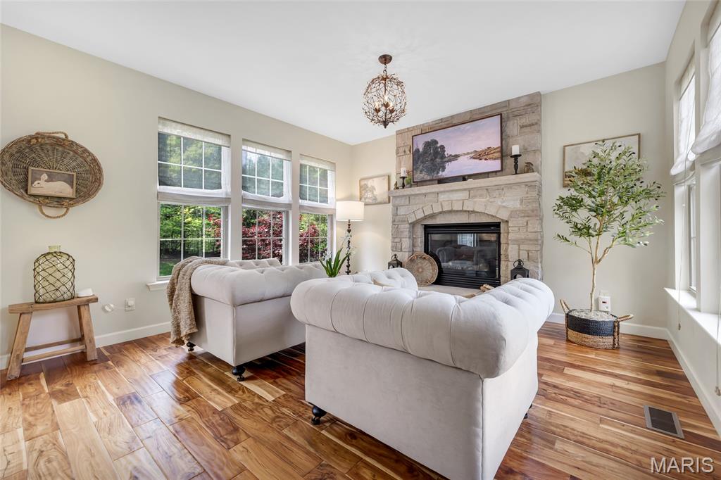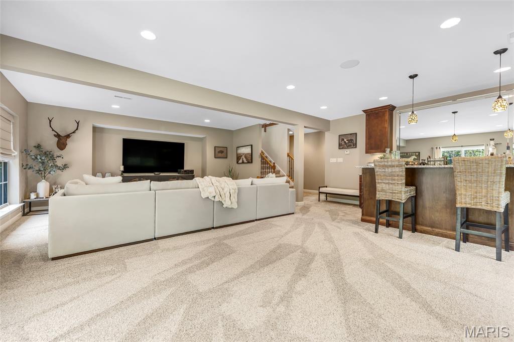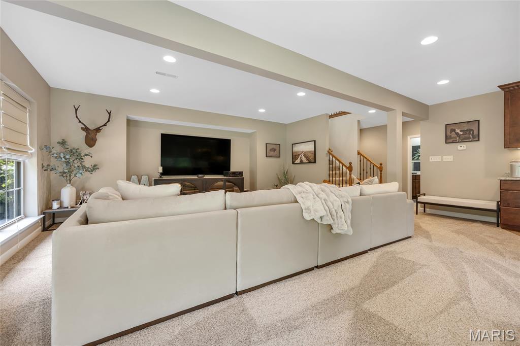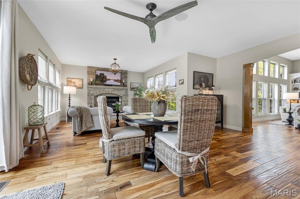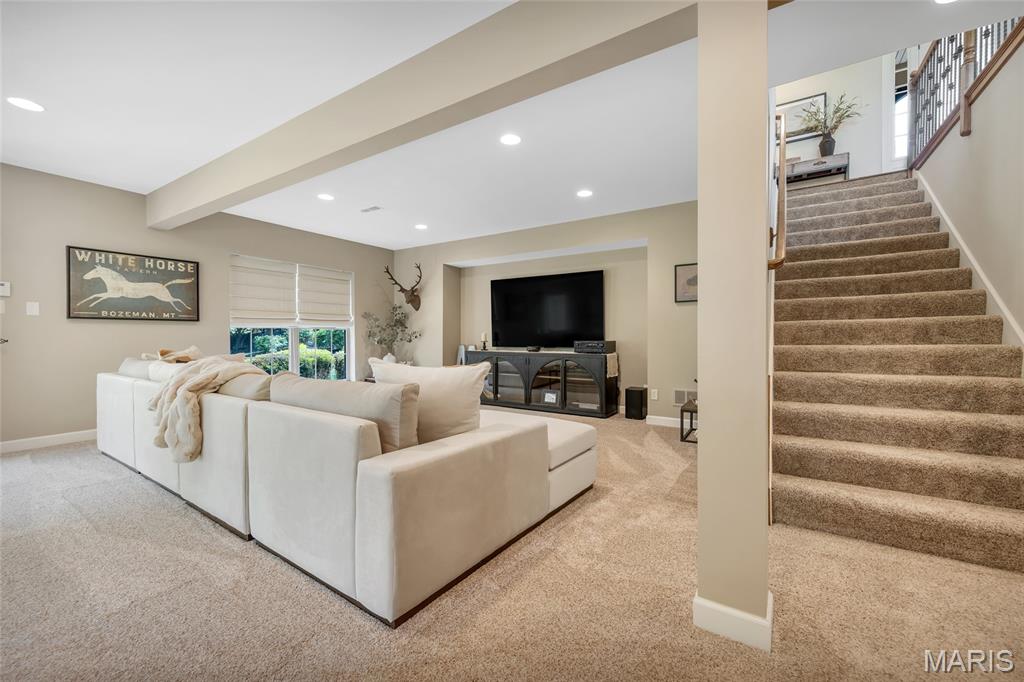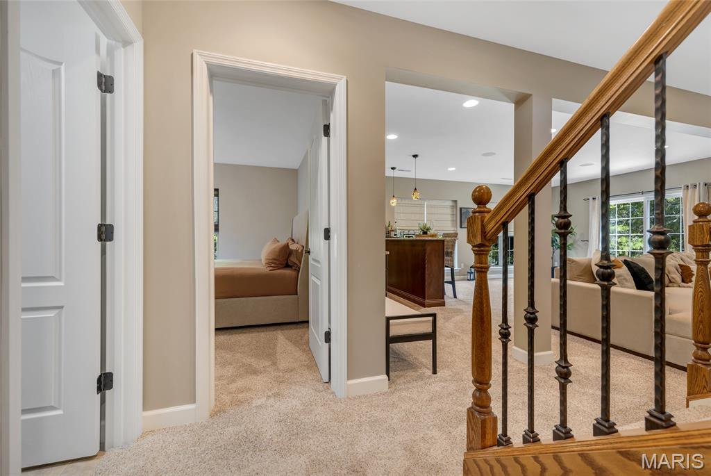 Welcome to 1707 Shepard Road. Experience refined living in this stunning Fischer & Fritchel 4 bedroom, 3.5 bath ranch nestled on 3.09 private acres with 4,000 sq. ft. of beautifully finished living space. From the moment you arrive, the stately curb appeal sets the tone for the thoughtful design within. The foyer features rich hardwoods that expand throughout the home and opens to a formal dining room distinguished by wood beamed columns, while the expansive great room boasts custom entertainment center and built-in speakers and abundant natural light flowing through the vast window wall. The open concept chef’s kitchen impresses with a generous center island, stainless steel appliances, double wall ovens, stone counters, high end cabinetry and a walk in pantry, seamlessly connecting to the breakfast room with deck access, and a warm hearth room anchored by a stone gas fireplace. The primary suite is a luxe retreat with spacious, dual walk in closets, double vanities and a substantial, spa like tiled shower. Two additional bedrooms serviced by a full bath, large mudroom with laundry and a powder room complete the main level. The walk out lower level is ideal for entertaining and features a large family room, a full wet bar, as well as a guest bedroom with walk in closet, full bath, home gym area and ample unfinished space for storage or additional expansion. Enjoy the secluded, tree lined backyard while relaxing on the platform deck or lower patio area. An oversized, side entry 3 car garage, pristine landscaping, partially fenced yard and lawn irrigation completes this exceptional home. With upscale finishes throughout and every detail carefully considered, this meticulous residence offers comfort, luxury and location. Fabulous opportunity within the award winning Rockwood School District.