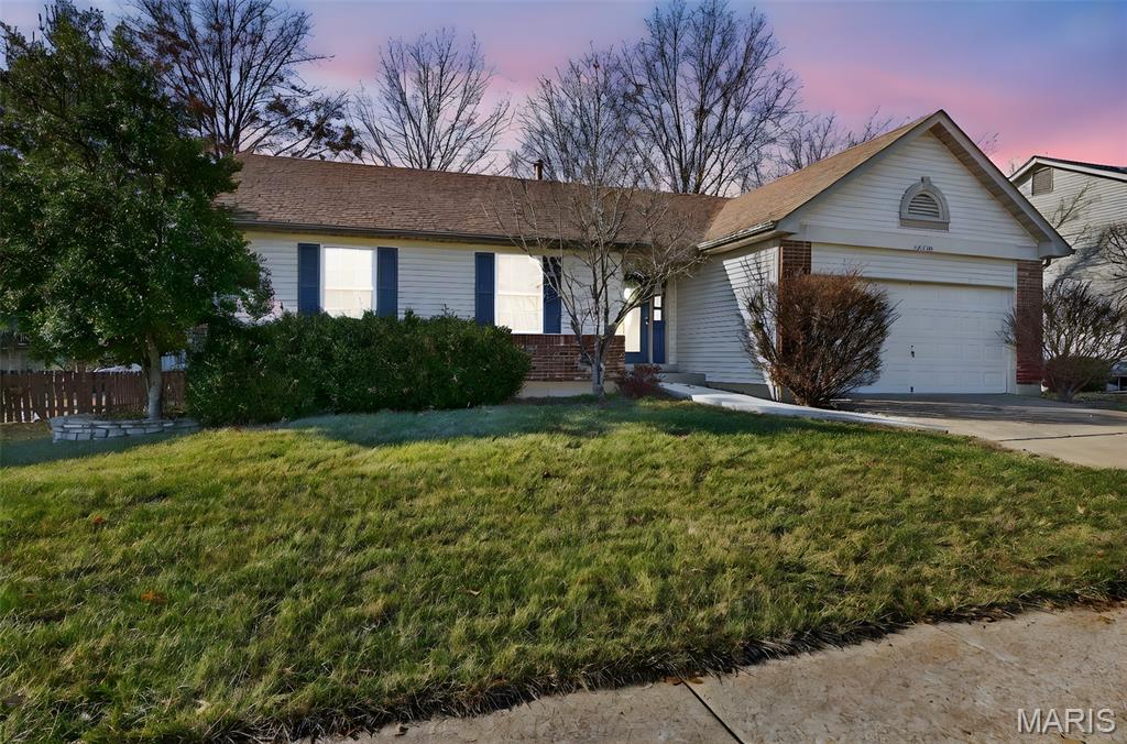 CONTINUE TO SHOW. SELLER IS ACCEPTING BACKUP OFFERS. This well-maintained great room ranch combines comfort and functionality with 3 bedrooms, 2 full baths, and 1,380 square feet of inviting living space. The exterior features vinyl siding with classic brick accents, a two-car garage, and attractive landscaping that enhances curb appeal. Inside, an inviting entry foyer with parquet flooring leads into the vaulted great room, where plush carpeting and a brick wood-burning fireplace create a welcoming focal point, flanked by windows that bring in abundant natural light. The great room flows seamlessly into the kitchen and breakfast room, ideal for both everyday living and entertaining. The breakfast room features a large bay window and a door that opens to the deck, overlooking the level backyard with mature trees. The kitchen offers a breakfast bar, pantry and includes all appliances, providing both functionality and convenience. The primary suite features a French door entry, a walk-in closet, and a private full bath with a separate shower and tub. Two additional bedrooms and a full hall bath complete the main level. The full basement is unfinished and offers ample storage with built-in shelving, presenting excellent potential for future finishing. Located in the Nantucket subdivision, residents enjoy access to a clubhouse, pool, and basketball court. This home is situated in Wildwood within the highly regarded Rockwood School District. Thoughtfully cared for and move-in ready, this property offers classic style, a wonderful combination of comfort, amenities, and location.