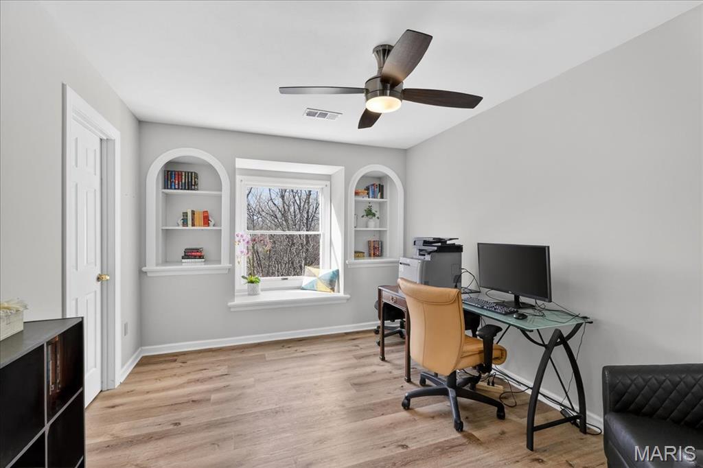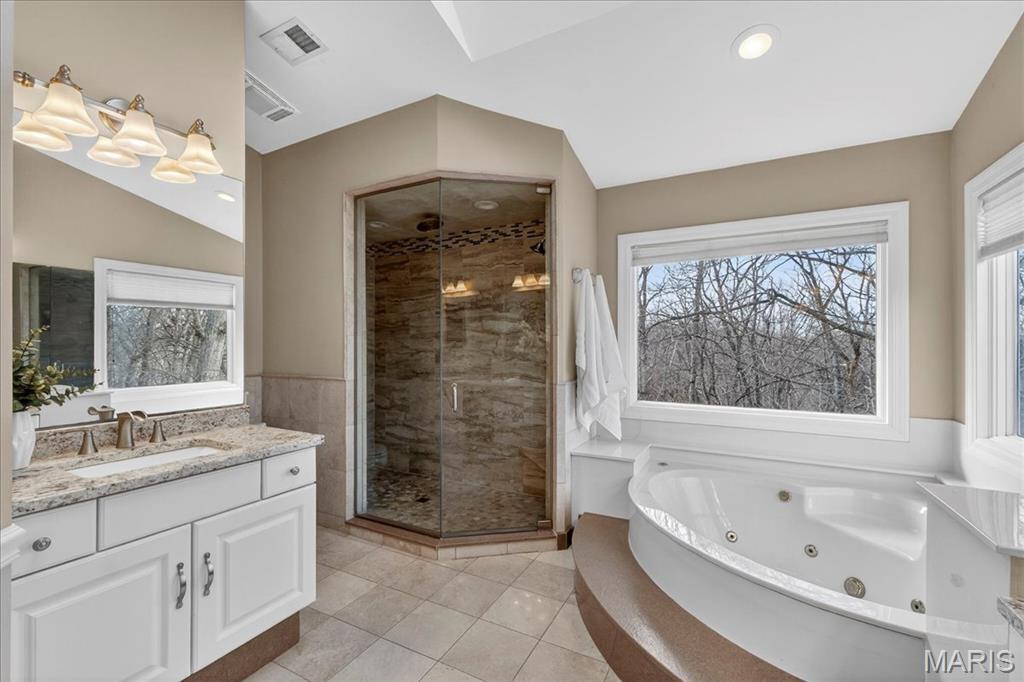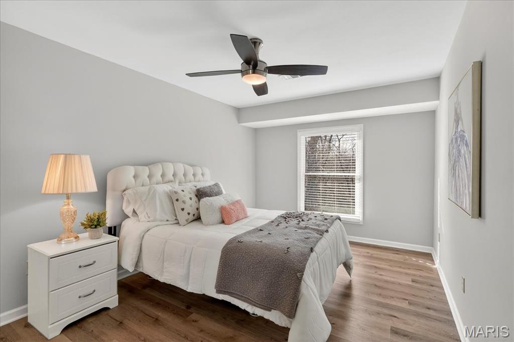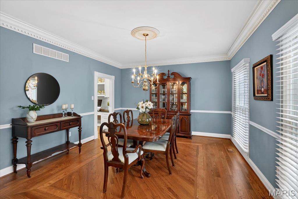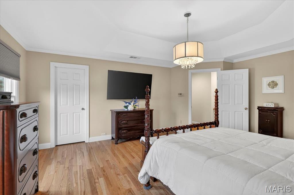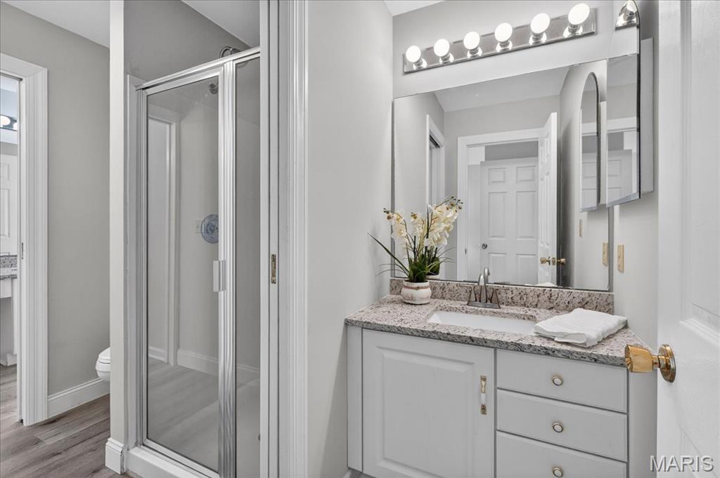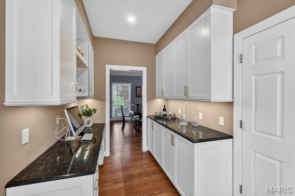 Beautifully updated two-story home ideally situated on a private cul-de-sac lot, offering both elegance and exceptional living space. A dramatic two-story foyer welcomes you inside, where gleaming hardwood floors extend throughout the main level. Formal dining and living rooms showcase custom moldings, creating the perfect setting for entertaining and everyday living. The great room is a true centerpiece, featuring a wood-burning fireplace, built-in bookcases, transom windows that flood the space with natural light, and a wet bar with quartz countertop and beverage refrigerator. The updated vaulted kitchen is a chef’s dream, appointed with custom 42" cabinetry, granite countertops, center island, custom tile backsplash, planning desk, butler’s pantry, and stainless steel appliances including double ovens. The adjoining breakfast room offers access to the composite deck, overlooking the private backyard. The spacious primary suite features hardwood floors, a coffered ceiling, room-darkening shades, walk-in closet, and a vaulted ensuite bath with newer dual vanities, a custom walk-in shower with triple shower heads, and a relaxing jetted tub. Three additional bedrooms, all with solid surface flooring, and two full baths complete the upper level. The deep-pour walk-out lower level expands the living space with a family room featuring a second wood-burning fireplace, a recreation room, an additional bedroom, a full bath with newer custom shower, and abundant storage. Additional highlights include a three-car side-entry garage, central vacuum system, newer Hardie Board siding, and a new roof. Enjoy subdivision amenities including pools, lakes, sports courts, and walking trails. A truly expansive home offering comfort, quality, and an exceptional lifestyle.