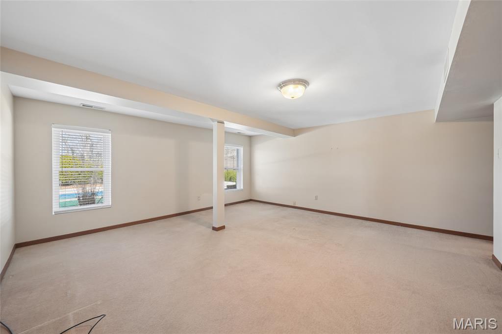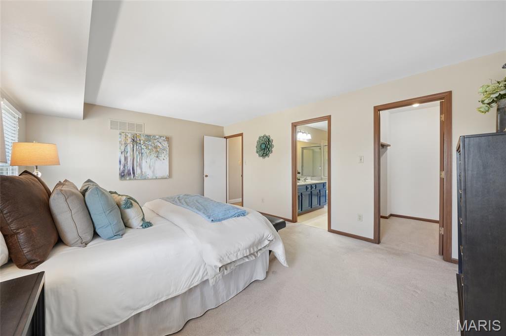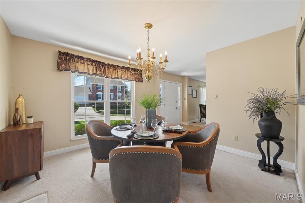 Spacious 5-bedroom, 3 full and 1 half bath home located in the highly sought-after Rockwood School District. Step inside to a welcoming formal living room and dining room, offering the perfect space for gatherings and everyday living. The updated kitchen features stainless steel appliances, granite countertops, and a breakfast bar that opens to the main living areas. The thoughtfully designed floor plan includes a private main-floor primary suite with a large walk-in closet, providing both comfort and convenience. French doors from the family room lead to the outdoor living space, creating a seamless connection between indoor and outdoor living. The upper level includes three generously sized bedrooms and an additional full bathroom, providing comfortable space for family or guests. The finished walk-out lower level offers incredible versatility with a large bedroom, full bathroom, two recreation areas, and a cedar closet—perfect for guests or additional living space. Step outside to your own backyard retreat featuring a fabulous in-ground swimming pool with Kool Deck, professional landscaping, and views backing to common ground. The expansive 20x20 maintenance-free deck overlooks the pool and is ideal for relaxing and enjoying the outdoor setting. Additional highlights include a 2-car garage, 2024 Furnace and Air Conditioner, and a fantastic location close to parks, shopping, dining, and everything the area has to offer.