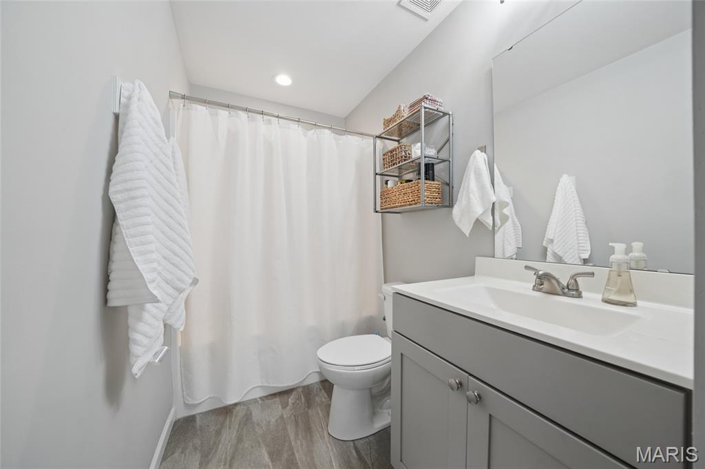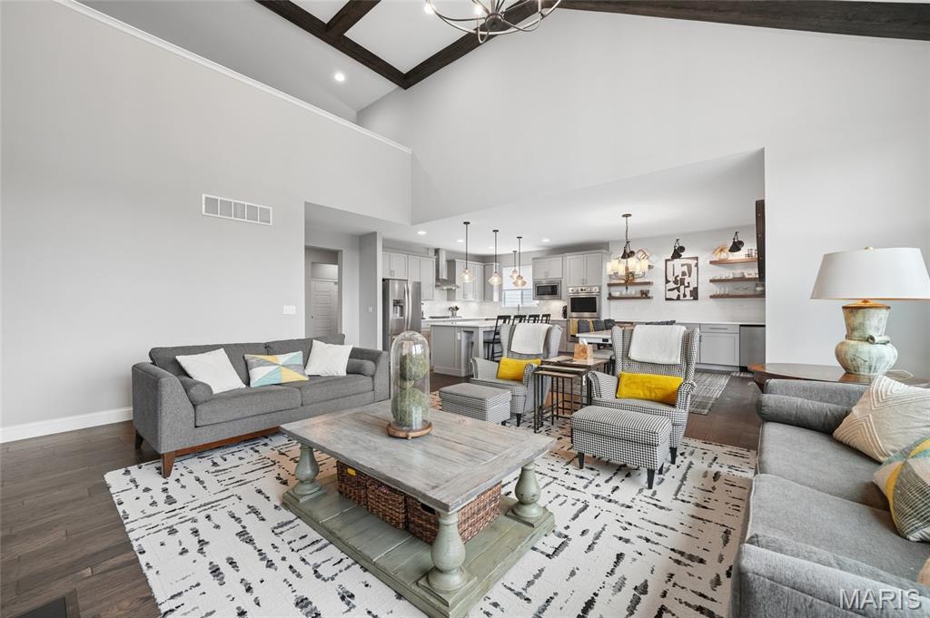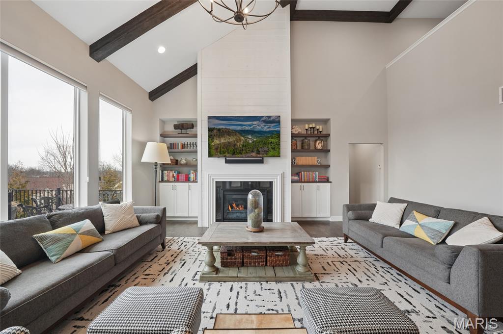 This gorgeous 1.5 story home is sure to impress from the inside out. Tall ceilings, light filled rooms, and beautiful finishes throughout create an inviting space you’ll love coming home to. The stunning kitchen features sleek stainless appliances, including double ovens, a large breakfast bar, walk-in pantry, floating shelves, and enough counter space to prep the most ambitious meals you can imagine. It’s open to the dining area as well as the showstopper of a great room, which has a sky-high vaulted ceiling, huge windows, built-ins, and a warm fireplace you’ll want to relax around on chilly evenings. The bright office will make you want to work from home. Outside, the serene screened in patio leads to the composite deck overlooking a lushly landscaped, fenced-in backyard. The main floor primary bedroom suite has a spacious bathroom with separate soaking tub, dual sink vanity, and an enviable walk-in closet. Upstairs, the loft space offers an additional flex area to suit your family’s needs. Two bedrooms share a jack-and-jill bath, and another has its own ensuite. The finished walkout lower level is the perfect multi-generational living solution. The full living quarters include a bedroom with large walk-in closet and full ensuite bath, a living room, dining area, kitchen, separate laundry, and a private sitting area outside on the patio. There is still plenty of basement storage space too, and the three-car garage is extra deep offering space for more storage and to comfortably park your larger vehicles. 3M sun control window film in the primary bedroom and great room keep the hot afternoon sun out without sacrificing the natural light.