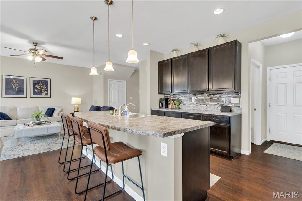 Who wouldn't love to live within walking distance of the quaint Town Center Grover! Now you can. This lovely home is available for the 1st time since it was built 12 years ago. Craftsman style construction welcomes you to the entry space of 2636 Grover Crossing Way. Quality wood floors grace the entire 1st floor. Walking into the great room and see the welcoming fireplace. Open space allows you to entertain large groups. The kitchen and dining area flow in a comfortable fashion. Beautiful cabinets, backsplash and counters make the space easy to be a gourmet cook! Doors to the composite deck make BBQ simple Main floor laundry and powder room complete the comfortable 1st floor. Head upstairs to find double doors to enter the primary bedroom. Walk in closet and luxury bath with soaking tub and double sink. 2 more large bedrooms and hall bath. This floor plan is perfect for any family. The full basement with walk out to a patio and private back yard completes the package. Priced to sell and make you home shopping end!