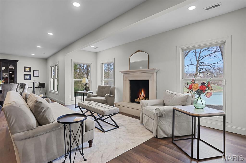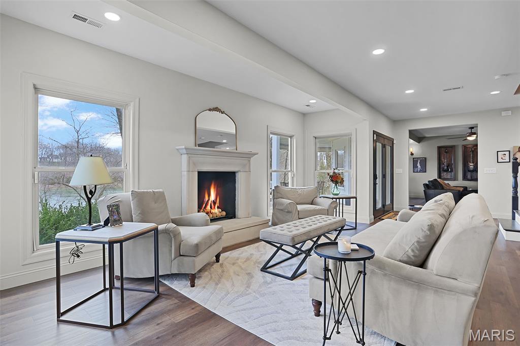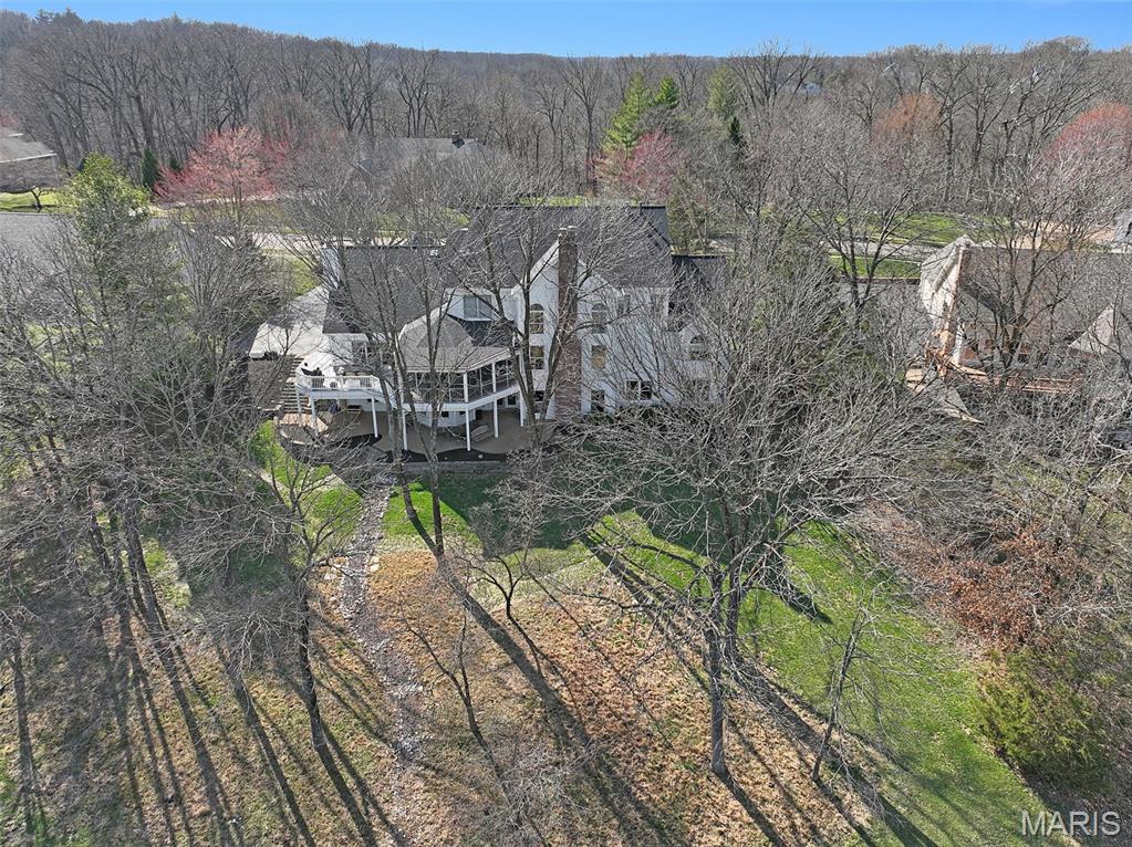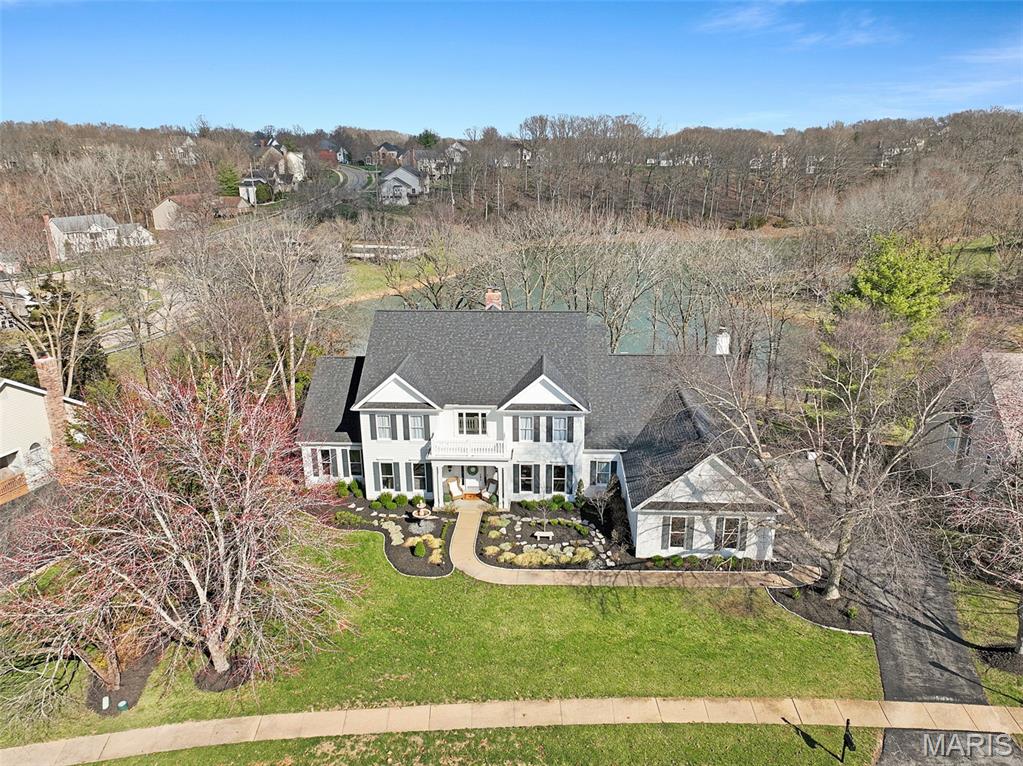 Experience luxury living in this stunning 1.5-story home in Wildwood, perfectly positioned on a picturesque lot backing to trees with beautiful lake views and walking distance to the subdivision pool and tennis courts. From the moment you step inside, you’re welcomed by a grand two-story foyer with soaring ceilings and beautifully refinished hardwood floors that flow throughout the main level. The thoughtfully designed layout features a private study, elegant formal dining room, and an impressive two-story great room with fireplace filled with natural light. The gourmet kitchen is truly the heart of the home, showcasing updated quartz countertops, farmhouse sink, and high-end appliances including a 6-burner gas cooktop and refrigerator. Designed with entertaining in mind, the space offers a large center island, abundant cabinetry, walk-in pantry, breakfast bar seating, and a bright breakfast nook. Just off the kitchen, a beautifully updated wet bar features a beverage refrigerator, sink, and wine rack—perfect for hosting guests. The kitchen seamlessly opens to a vaulted family room with stunning stone fireplace, creating a warm and inviting gathering space. The main level also includes a laundry room with half bath, plus an additional half bath for guests. Retreat to the luxurious main-floor primary suite, complete with vaulted ceilings and a spa-inspired bath featuring separate his-and-her vanities, soaking tub, glass walk-in shower, heated marble flooring, and two walk-in closets with custom closet systems. Upstairs offers four additional bedrooms, including two bedrooms connected by a Jack-and-Jill bath with separate vanities and shower/tub combo, while two more bedrooms share a beautifully appointed hall bath with large vanity and glass shower. All closets throughout the home feature custom closet systems, providing exceptional organization and storage. The fully remodeled walkout lower level is an entertainer’s dream. Highlights include a spacious recreation room with limestone fireplace, a full updated kitchen with granite counters, custom cabinetry, sink, dishwasher, microwave, and beverage refrigerator, and a temperature-controlled wine cellar with capacity for over 500 bottles. The lower level also features a sitting/bonus room, a dedicated theater room with surround sound and new projector, plus an exercise room, hobby room, and half bath. A private lower-level bedroom with ensuite bath featuring a walk-in shower and large vanity provides the perfect space for guests. Additional features include an in-home elevator, screened-in porch, deck, and patio for enjoying the scenic backyard/lake view. The 4-car garage features epoxy-coated floors and a custom steel locker storage system. With newer systems and a new roof and gutters installed in 2022, this home offers the perfect blend of luxury, comfort, and thoughtful updates. This exceptional Wildwood home truly has it all.