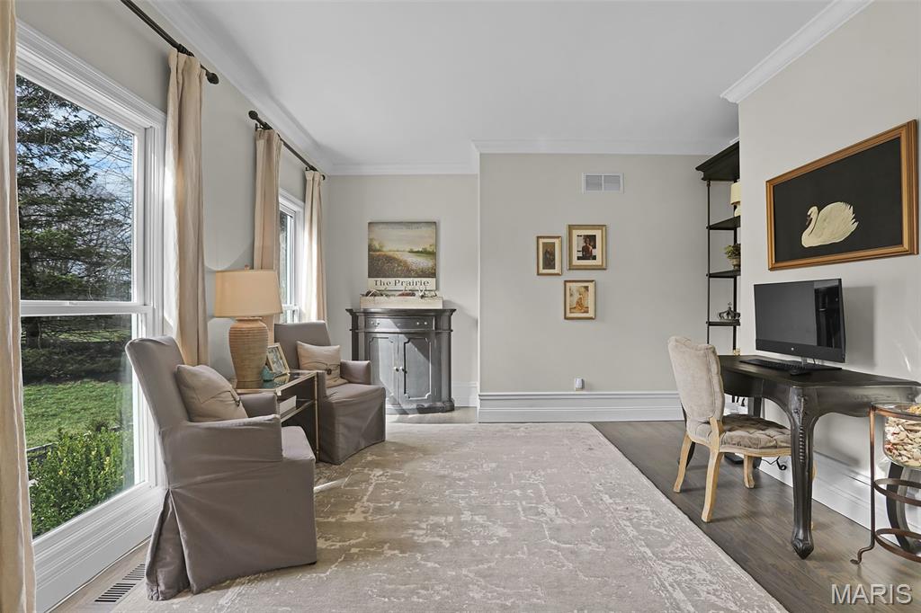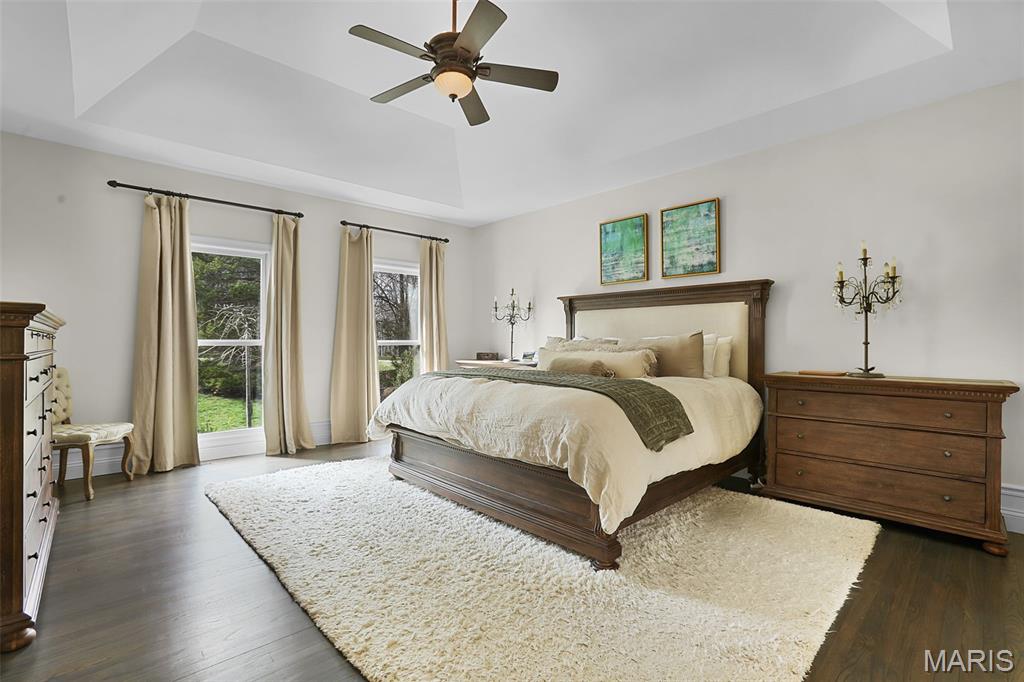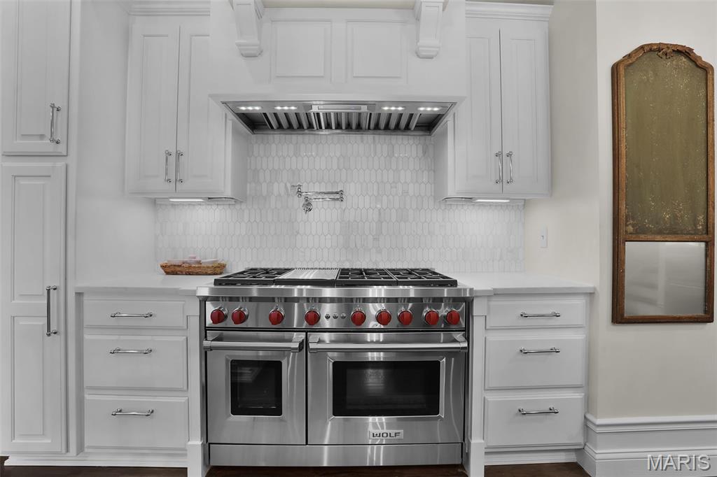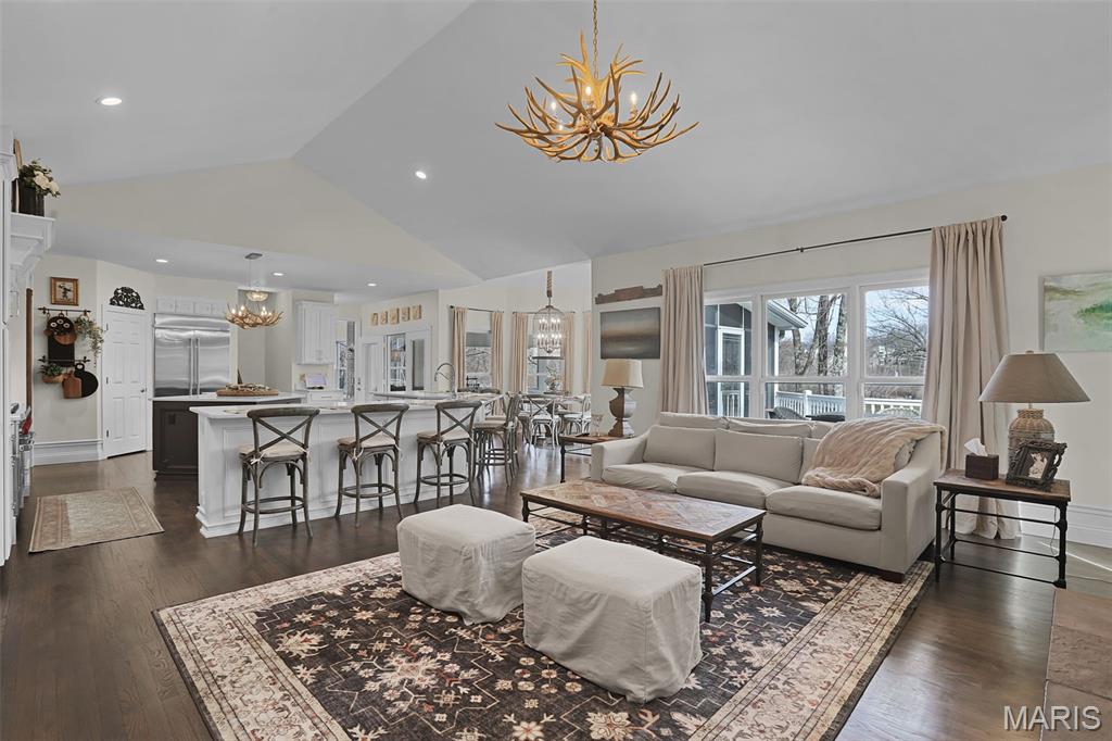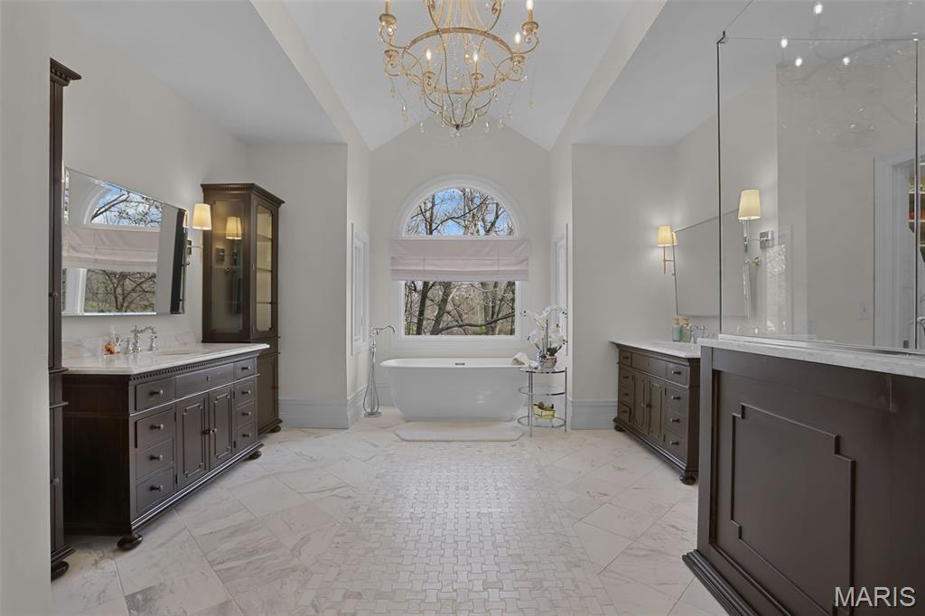 Experience luxury living in this stunning 1.5-story home in Wildwood, perfectly positioned on a picturesque lot backing to trees with beautiful lake views and walking distance to the subdivision pool and tennis courts. From the moment you step inside, you’re welcomed by a grand two-story foyer with soaring ceilings and beautifully refinished hardwood floors that flow throughout the main level. The thoughtfully designed layout features a private study, elegant formal dining room, and an impressive two-story great room with fireplace filled with natural light. The gourmet kitchen is truly the heart of the home, showcasing updated quartz countertops, farmhouse sink, and high-end appliances including a 6-burner gas cooktop and refrigerator. Designed with entertaining in mind, the space offers a large center island, abundant cabinetry, walk-in pantry, breakfast bar seating, and a bright breakfast nook. Just off the kitchen, a beautifully updated wet bar features a beverage refrigerator, sink, and wine rack—perfect for hosting guests. The kitchen seamlessly opens to a vaulted family room with stunning stone fireplace, creating a warm and inviting gathering space. The main level also includes a laundry room with half bath, plus an additional half bath for guests. Retreat to the luxurious main-floor primary suite, complete with vaulted ceilings and a spa-inspired bath featuring separate his-and-her vanities, soaking tub, glass walk-in shower, heated marble flooring, and two walk-in closets with custom closet systems. Upstairs offers four additional bedrooms, including two bedrooms connected by a Jack-and-Jill bath with separate vanities and shower/tub combo, while two more bedrooms share a beautifully appointed hall bath with large vanity and glass shower. All closets throughout the home feature custom closet systems, providing exceptional organization and storage. The fully remodeled walkout lower level is an entertainer’s dream. Highlights include a spacious recreation room with limestone fireplace, a full updated kitchen with granite counters, custom cabinetry, sink, dishwasher, microwave, and beverage refrigerator, and a temperature-controlled wine cellar with capacity for over 500 bottles. The lower level also features a sitting/bonus room, a dedicated theater room with surround sound and new projector, plus an exercise room, hobby room, and half bath. A private lower-level bedroom with ensuite bath featuring a walk-in shower and large vanity provides the perfect space for guests. Additional features include an in-home elevator, screened-in porch, deck, and patio for enjoying the scenic backyard/lake view. The 4-car garage features epoxy-coated floors and a custom steel locker storage system. With newer systems and a new roof and gutters installed in 2022, this home offers the perfect blend of luxury, comfort, and thoughtful updates. This exceptional Wildwood home truly has it all.