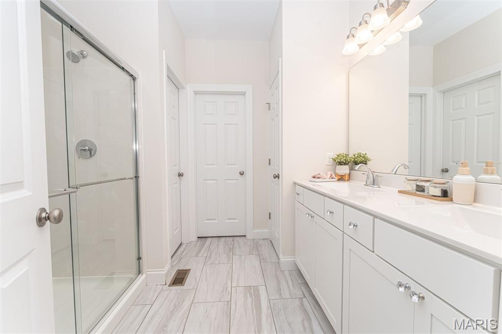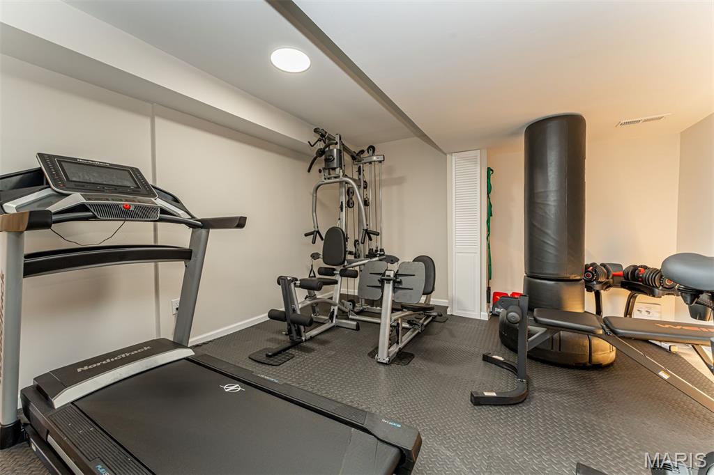 Enjoy refined, modern living in this four year young ranch designed with soaring ceilings and an abundance of natural light. The open concept kitchen serves as the heart of the home, featuring a generous center island and a sun filled breakfast room ideal for everyday living and effortless entertaining. The well proportioned living room offers a welcoming gathering space anchored by a gas fireplace and framed by expansive windows. The main floor primary suite provides a peaceful retreat with a spacious walk in closet and beautifully appointed bath, accompanied by two additional bedrooms. Convenient main floor laundry adds thoughtful ease to daily routines. The finished lower level expands the living space dramatically with a sprawling recreation area, dedicated theater room, fitness space, additional bedroom, and full bath, offering exceptional flexibility for guests, hobbies, and entertaining. Outdoors, relax on the large covered porch or enjoy the maintenance free deck overlooking a beautifully landscaped backyard setting. Ideally located just moments from Wildwood Town Center with convenient access to grocery shopping, Starbucks, and a variety of popular restaurants.