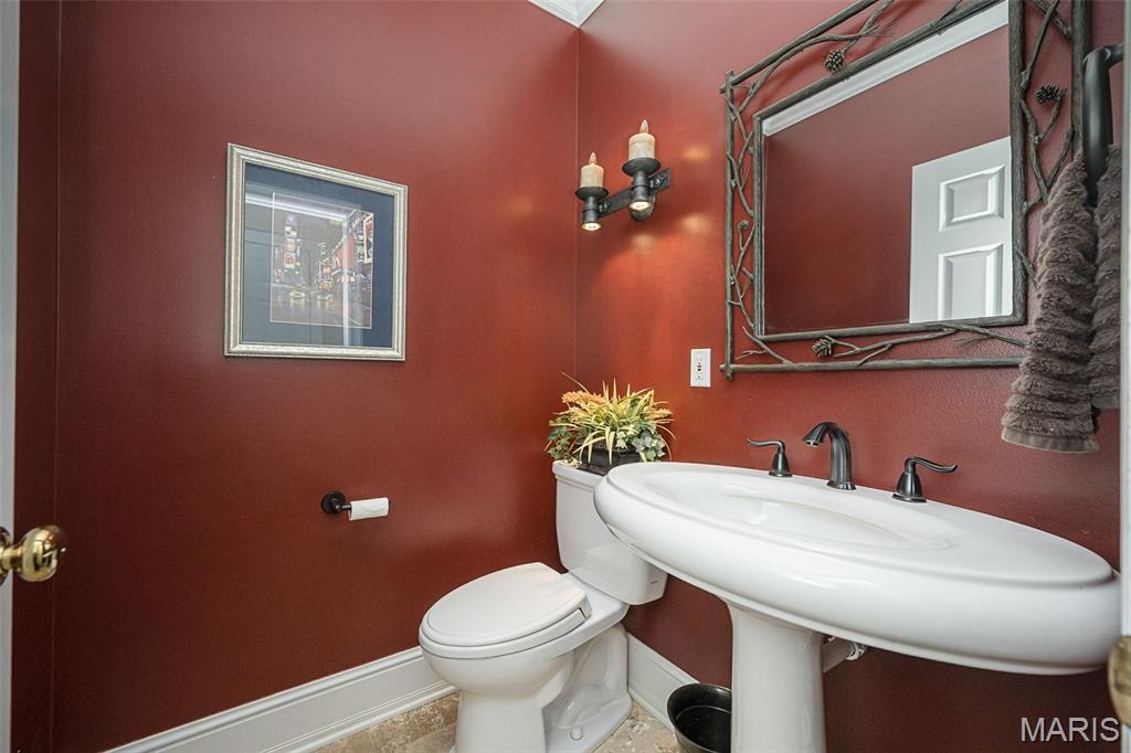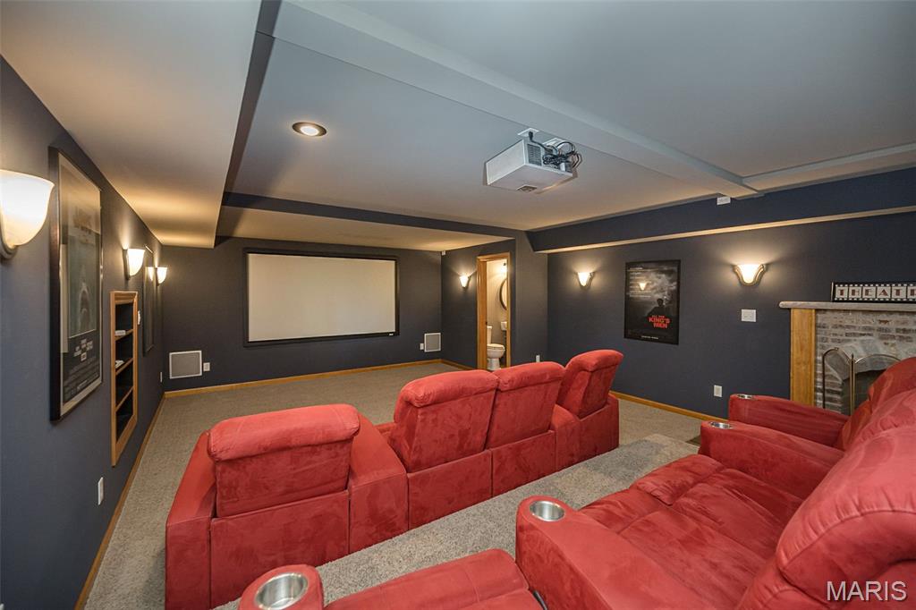 Have you been searching for a truly one-of-a-kind, custom home in the St. Louis area? From the moment you arrive, you’ll be captivated by this extraordinary, European-inspired 1.5 story estate, perfectly situated on a breathtaking 3+ acre private lot. A sweeping brick drive—designed in true Old World fashion—wraps gracefully around to a three-car rear-entry garage, setting the tone for what lies ahead. Authentic exterior lighting and architectural antique elements throughout reinforce the home’s timeless appeal. Entering through impressive French doors, you are welcomed by a grand two-story foyer featuring a sweeping staircase and custom flooring. A richly appointed den/study showcases extensive millwork, a beamed ceiling, and custom built-in bookcases. The formal dining room is both elegant and distinctive, offering access to a private patio and a charming turret seating area—perfect for unforgettable gatherings. The two-story great room impresses with dramatic millwork, a fireplace, and an exquisite walk-behind wet bar, ideal for entertaining. Beautiful wood floors flow throughout the main level, complemented by soaring ceilings—including two-story, nine-foot, and vaulted designs—that enhance the home’s grandeur. The fabulous, fully customized chef’s kitchen is thoughtfully designed with granite countertops, top-of-the-line appliances, a spacious breakfast room, and an adjoining hearth room, making it the heart of the home. A large main-floor laundry room offers a utility sink, built-in cabinetry, and two utility closets for exceptional functionality. The vaulted main-floor primary suite serves as a private retreat, featuring a spa-like ensuite bath with separate custom full-height vanities, a soaking tub, an expansive walk-in shower, designer flooring, and a large walk-in closet with an adjoining dressing area. The upper level includes four generously sized bedrooms, two Jack & Jill baths with full-height vanities, and a large bonus room (32x17)—ideal as a recreation space, third family room, or study area. The professionally finished walkout lower level expands the living space with a media room complete with theater screen and seating, a bathroom, fireplace with gas logs, space for a game table, an exercise room, and a large area with rough-in for a future wet bar. Enjoy spectacular views from every rear-facing room, along with a private patio and a large deck that seamlessly connects to the driveway area—perfect for indoor-outdoor living. With three beautiful fireplaces, unrivaled craftsmanship, and a design inspired by European mansions of the past, this home masterfully blends Old World charm with today’s modern technology. This is more than a home - it’s a custom-crafted estate designed for a growing family and exceptional living.