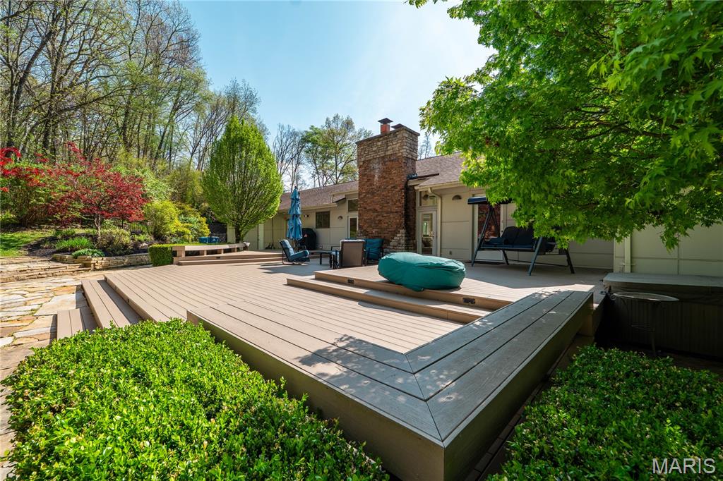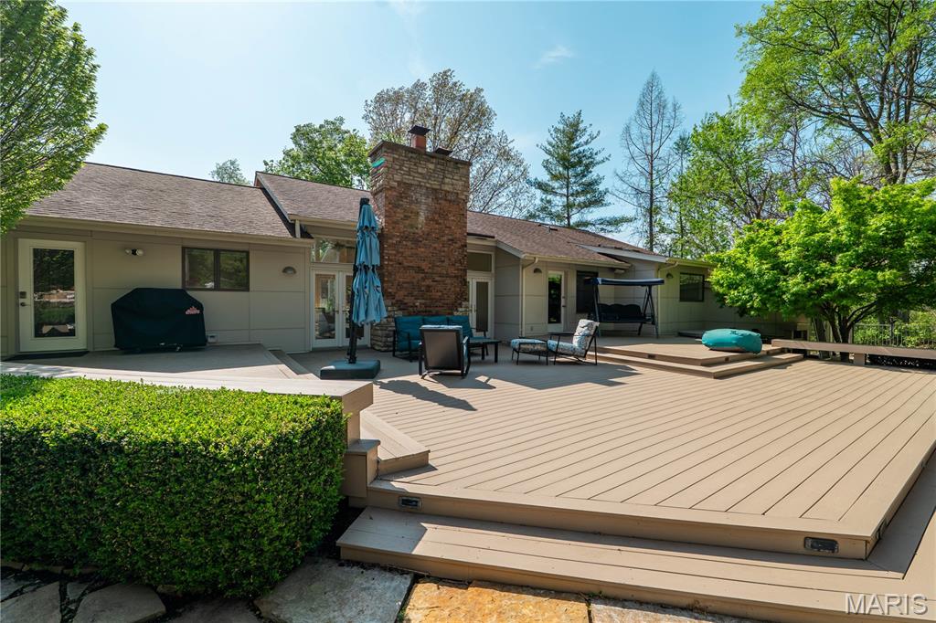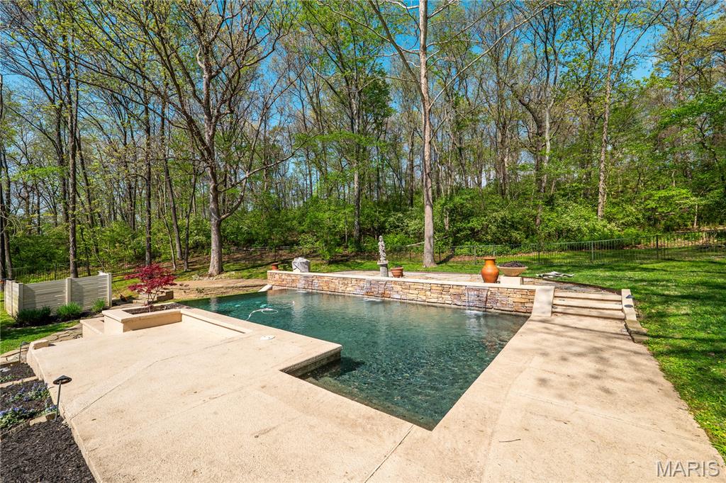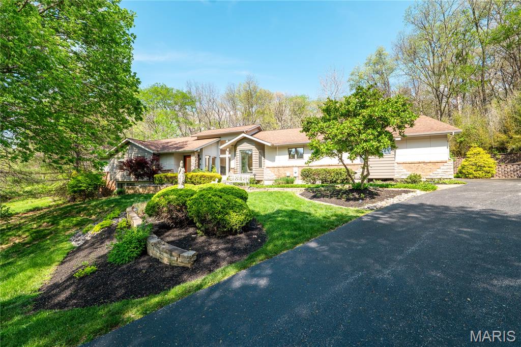 AUCTION LISTING - MORE INFORMATION & DETAILS COMING SOON! List price is not indicative of Seller’s final reserve amount. This property is part of an online bidding event. This sale will be executed with a no-contingency contract provided by brokerage representing the Seller. Set on 3.63± acres, this custom ranch is located on a quiet lane in Wildwood. The move-in ready home offers over 3,200 square feet on the main level with 4 bedrooms and 4.5 baths.The entry foyer is flooded with natural light and overlooks the beautiful front yard and koi pond. The great room features a fireplace flanked by French doors, providing views of the backyard. The great room and dining room provide lots of space to entertain and the open plan keeps everyone included. The adjoining kitchen features a center island, room for multiple cooks, and a spacious pantry. Large windows surround the breakfast table and brighten the entire space. The primary suite features a vaulted ceiling, dual vanities, zero-entry shower, jet tub, walk-in closet, and direct access to the deck. Two additional bedrooms include ensuite baths and walk-in closets. A fourth main-level bedroom is currently used as an office, with a full bath just across the hall. The main level also includes a laundry room, oversized 3-car garage, and a half bath conveniently located just steps from the backyard pool. The walkout lower level expands the living space with a family room, game room with wet bar, wine room, 5th bedroom, 5th full bath, and a large unfinished storage area. The backyard is surrounded with mature trees providing lots of privacy. You’ll be drawn outdoors to the large maintenance-free deck, hot tub, and Gunite saltwater pool with a vanishing edge waterfall. A private room on the north corner of the home is accessed from the back patio and offers flexible use as an office or studio. Located less than 10 minutes from Chesterfield Valley and the Clayton/Clarkson corridor, this beautiful property offers a private setting with easy access to nearby amenities. A transferable home warranty is included for peace of mind (see documents for details). Included with sale: All appliances, Sonos sound system, pool table, car charger wall plug (charging cable not included)