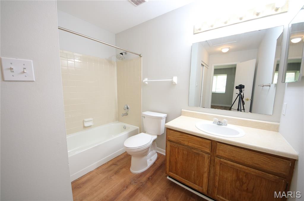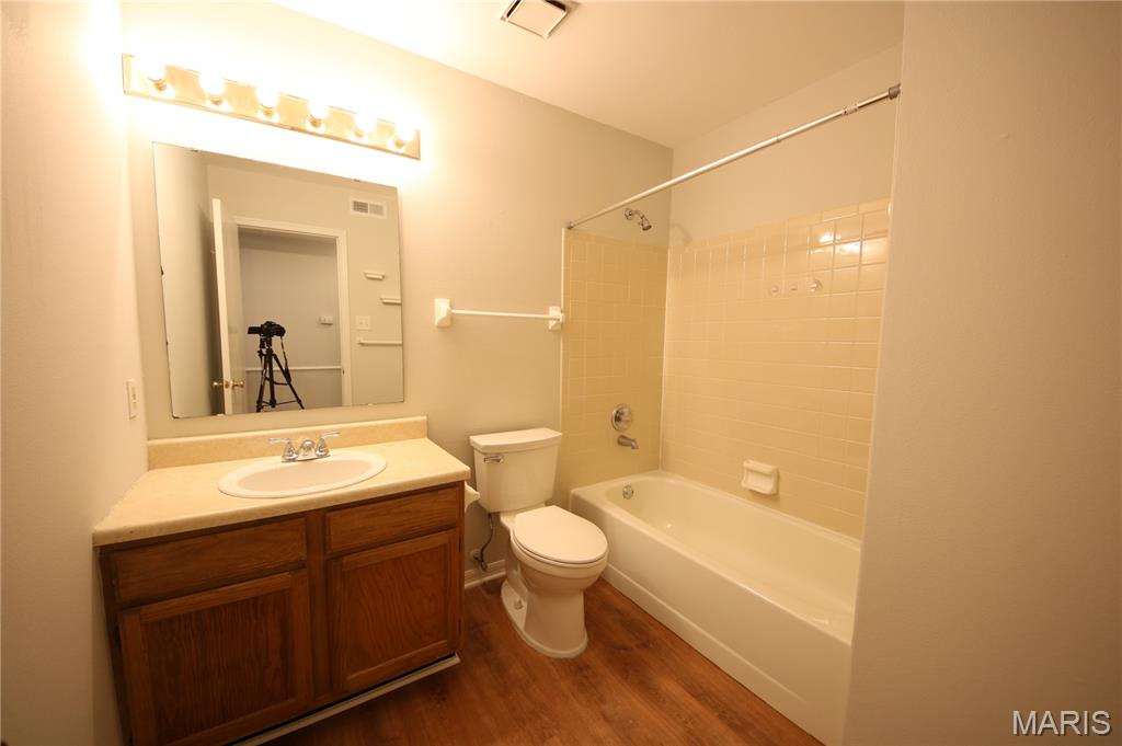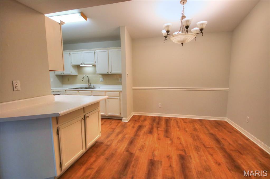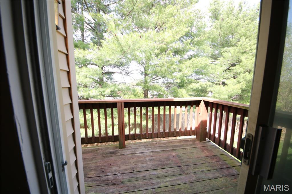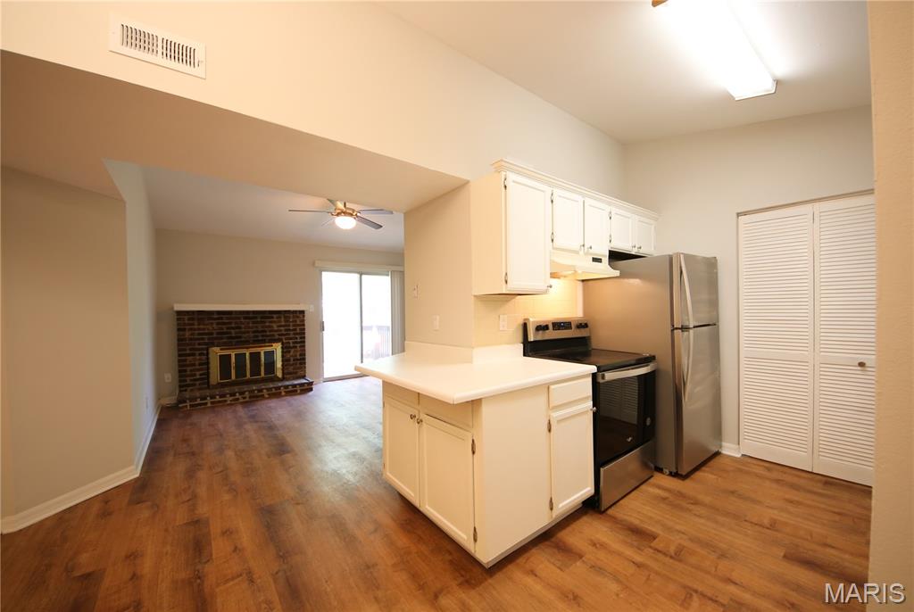 Located at 2337 Sandalwood Creek CT D in Wildwood, this condominium offers an inviting home experience, ready for immediate enjoyment. The expansive living room provides a comfortable setting for daily relaxation and enjoyment, distinguished by a soaring vaulted ceiling that enhances the feeling of spaciousness. A charming fireplace serves as a central point, inviting cozy moments and adding warmth to the surroundings. This area is thoughtfully designed within an open floor plan, promoting a sense of seamless living. Culinary pursuits are elevated in the well-appointed kitchen, featuring stylish shaker cabinets that offer ample storage and a refined aesthetic. A practical kitchen peninsula provides additional counter space and a versatile area for meal preparation or casual dining. The tasteful backsplash adds a polished finish to this functional and appealing space. One of the two comfortable bedrooms offers the privacy and convenience of an ensuite bathroom, creating a personal retreat within the residence. The second bedroom provides additional versatile space, complemented by a second full bathroom for comprehensive comfort. Stepping outside, a private balcony extends the living space, providing an ideal spot for enjoying fresh air and quiet moments outdoors. Additionally, this complex enjoys a private pool ready to be enjoyed in the summer time. This inviting condominium, built in 1985, offers a cohesive living experience across its two bathrooms and two bedrooms. This appealing condominium promises a delightful and comfortable setting for a truly enjoyable living experience.