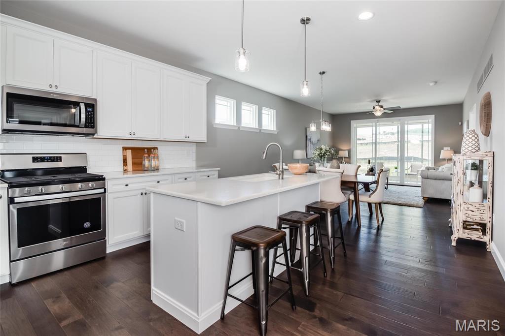 Fischer & Frichtel proudly present luxurious, low maintenance, free standing villa living at The Pointe at Brightleaf within Wildwood Town Center. Staying consistent with Wildwood Town Centers outstanding design standards, features include tree-lined streets, sidewalks on both sides, decorative street lights, abundant trees, landscaped common areas, walking paths with benches and a community a lake with fountain. Orchard Villas are free-standing ranch, 1.5-story and 2-story homes ranging from 1,347 – 2,250 square feet. All homeowners at The Pointe at Brightleaf will enjoy having their lawn care, landscaping maintenance and snow removal included in the homeowners association fee. All exteriors showcase 2 car garages, charming exteriors with brick or stone accents, James Hardie siding, architectural shingles, full yard sod, landscaping and lawn irrigation. Interior features include 9 ft ceilings, open floor plans, 42 inch wall cabinets, stainless steel appliances, walk in closets, double bowl vanities, R50 attic insulation, Low E windows and more. Homeowners will enjoy walking and biking over the pedestrian bridge and crosswalk to the restaurants, boutiques, grocery store, movie theater, and fitness center at Wildwood Town Center. Miles of connected walking and biking trails lead to parks, including Wildwood’s new Community Park, dog parks, playgrounds, picnic areas, equestrian trails and camping areas at Babler State Park and the Rockwoods Reservation. Buyers are paired with one of our design consultants at the Fischer and Frichtel Home Center, who present a vast selection of features, finishes and options and guide them through the selection process. Our entire Home Building Team is comprised of highly respected professionals whose talent and passion for design and construction have helped our company win countless awards, including excellence in design, craftsmanship, and customer service.