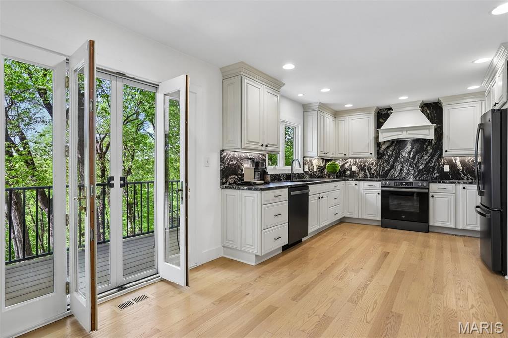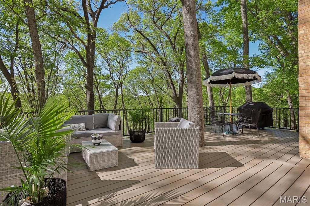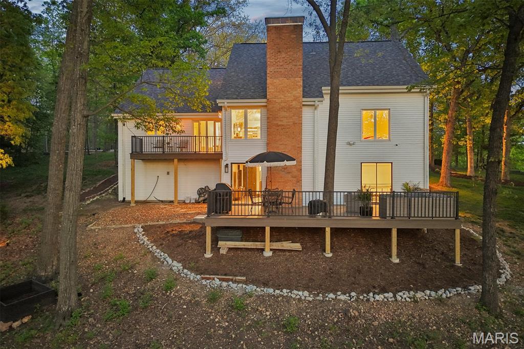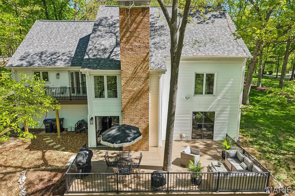 Welcome to 1604 Elk Fork Road, a beautifully transformed Wildwood retreat where thoughtful design, quality craftsmanship, and major updates come together in an incredible setting. Since purchasing the home, the owners have invested over $351,000 in renovations and improvements, creating a property that feels elevated, warm, and move-in ready. The exterior immediately impresses with a completely rebuilt wrap-around front porch, new front door, extensive deck and balcony reconstruction, fresh landscaping, sod, irrigation, landscape lighting, sealed driveway, and tree clearing that enhances both curb appeal and usable outdoor space. Enjoy peaceful mornings on the porch, entertaining on the kitchen balcony, or relaxing on the rebuilt lower deck surrounded by nature. Inside, the kitchen has been beautifully updated with leathered granite countertops and backsplash, GE matte black appliances, Blanco undermount sink, Delta black stainless faucet, painted solid wood cabinetry, and under-cabinet lighting. The bathrooms have been upgraded with a luxury feel, featuring Italian Dolomite marble tile, frameless shower doors, floating vanities, and Kohler hardware. Additional improvements include refinished red oak hardwood flooring, new carpet throughout multiple levels, updated interior lighting, electric fireplace inserts, black iron loft railing, new interior doors and trim, custom closet systems, fresh paint, garage floor coating, and an improved workroom. Major functional upgrades include a new well pump, chimney cap, irrigation system, and extensive outdoor enhancements. This is a rare opportunity to own a home with high-end finishes, substantial recent investment, and a private Wildwood setting—all thoughtfully updated for today’s lifestyle. Marketing remarks