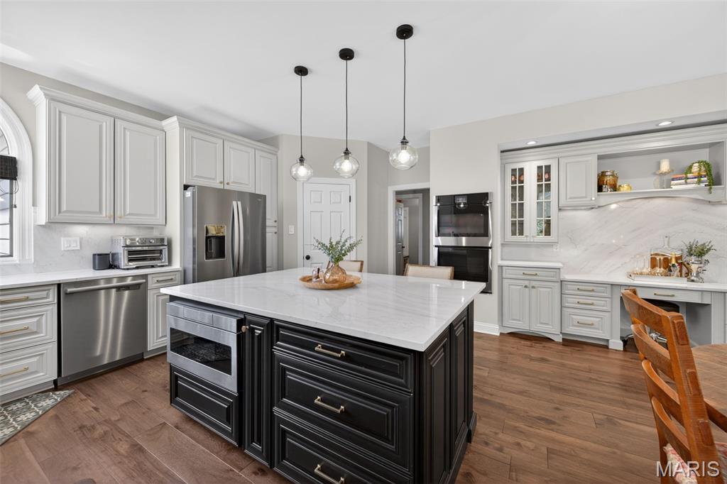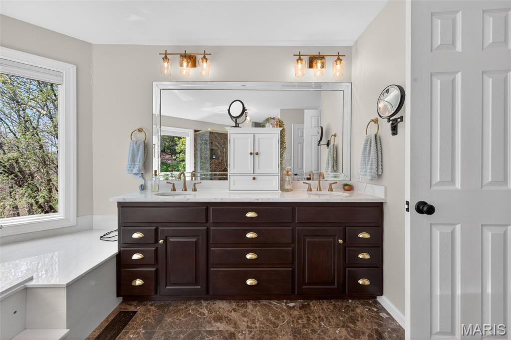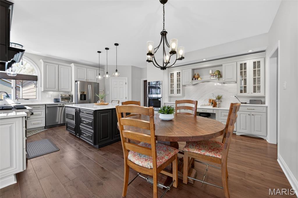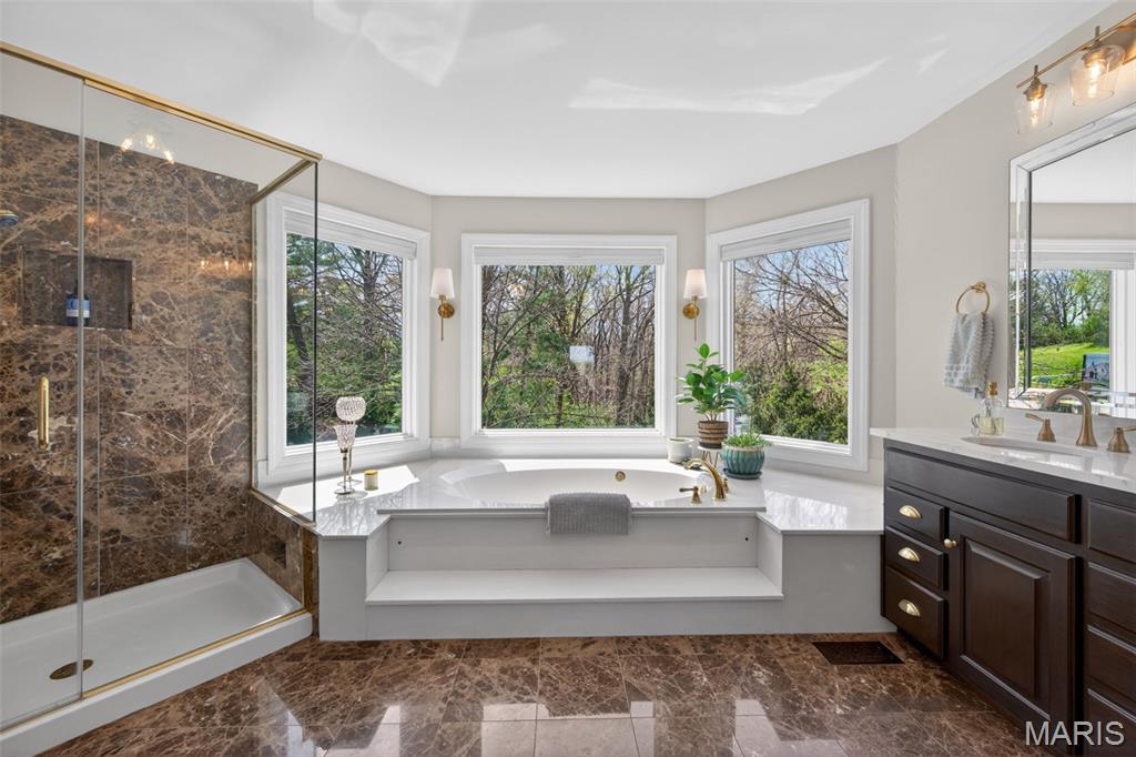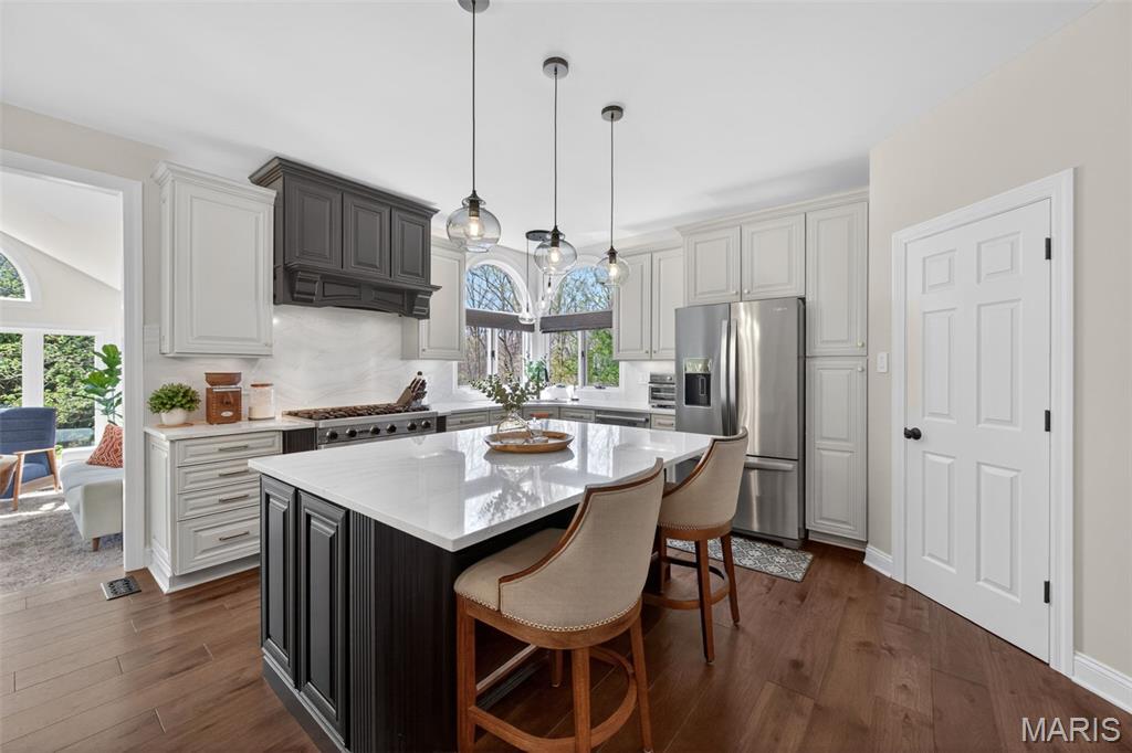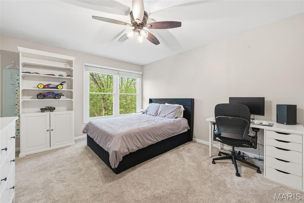 This stunning home on Drummer Lane could be yours, just in time for summer! Located in Wildwood, just on the edge of Chesterfield, filled with updates, and beautifully maintained, this 4 bed, 4.5 bath home offers over 4,800 sqft of living space on a private .62-acre lot in the highly sought-after Wildhorse subdivision. No detail has been overlooked with extensive upgrades throughout, including all new windows across the entire home, a brand new roof, new driveway, and upgraded 6” gutters with extended drainage for optimal water management. The exterior shines with enhanced grading, a new front porch overhang, HUE outdoor lighting, and a fully upgraded irrigation system with rotary sprinkler heads. Inside, you’ll find a fresh, modern feel with new flooring and carpet on both main and upper levels, all new lighting fixtures, and beautifully updated kitchen and bath spaces. The kitchen is equipped with a new sink, disposal, dishwasher, double oven, and reverse osmosis system plumbed to the fridge + a glistening Viking range. The primary bath has been refreshed with new countertops, sinks, and faucets. This home also has a prime location within Wildhorse as well, sitting at the exact spot for bus pickup/dropoff, and just a quick walk down the street to the pool, lake, tennis courts, and walking trails! Wildhorse is known for its scenic surroundings, top-rated Rockwood schools, and easy access to parks and trails, making this home the perfect blend of lifestyle and luxury livability.