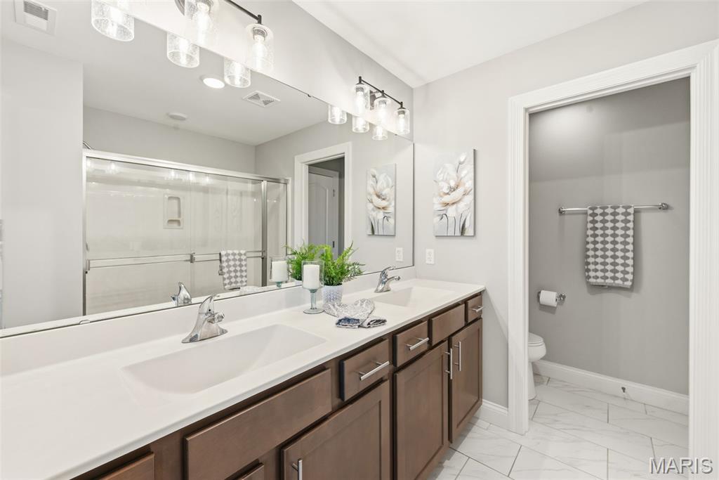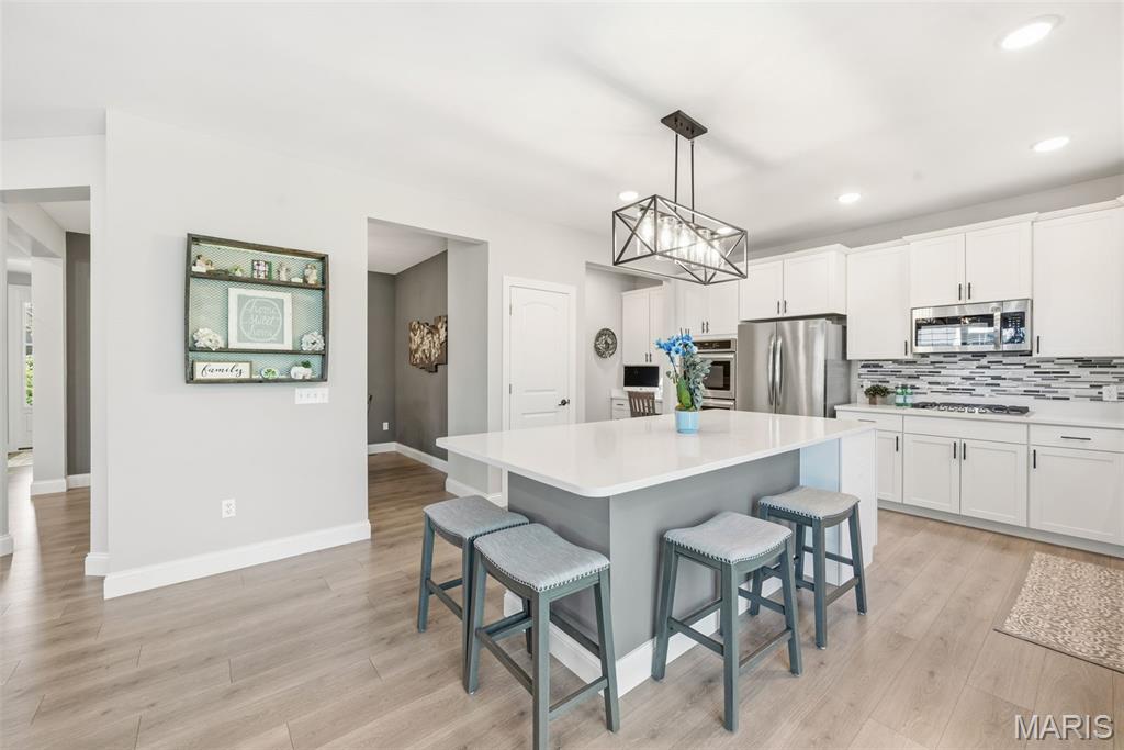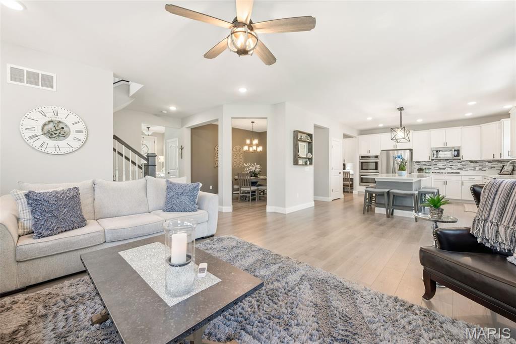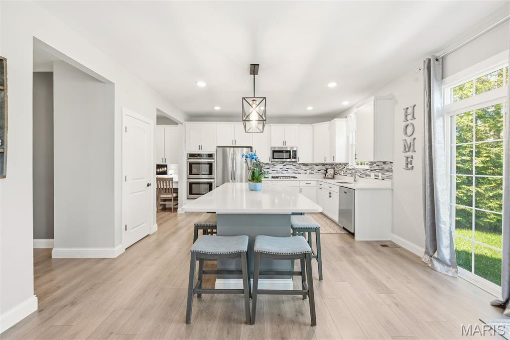 Coming Soon To Wildwood! Elegant and modern is what you will find in this custom Payne-built 4-bedroom, 3.5 bath 2-story in top-rated Rockwood Schools. Its open-concept layout features main floor flex room that is multi-purpose with Luxury vinyl plank flooring throughout the main level. A spacious dining room opens into the light and functional kitchen complete with 8-ft center island for dining, stainless steel appliances, Quartz countertops, Shaker cabinets, built-in double ovens, gas cooktop, built-in planning center with cabinets and powder room. Relax in the light-filled family room with gas fireplace or enjoy the outdoors while seated on the patio overlooking the professionally landscaped backyard. The second level extends the living quarters with three additional generous sized bedrooms, shared full bath, Loft area that functions as media or fitness room and Laundry room with white cabinetry. Finished lower level with Luxury vinyl plank flooring and neutral finishes offers a large rec area, cabinets and shelving for your own mini bar and third full bath. Located minutes from Wildwood Town Center for restaurants, shopping and farmers' market. Schedule your showing today!