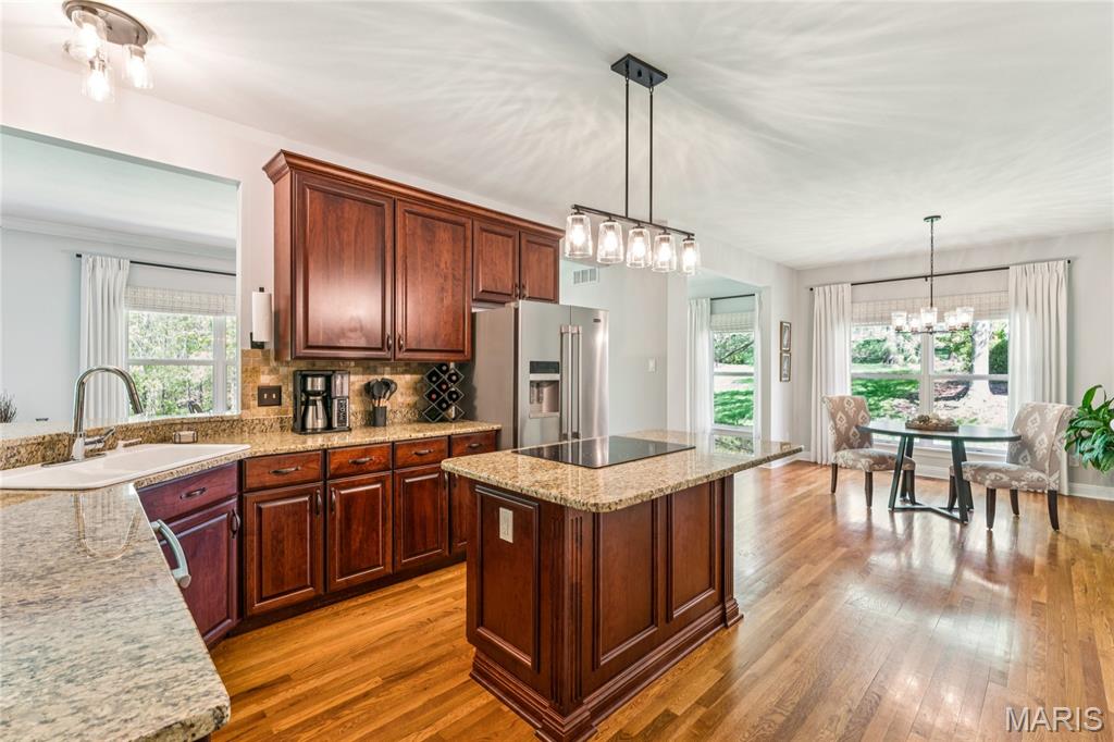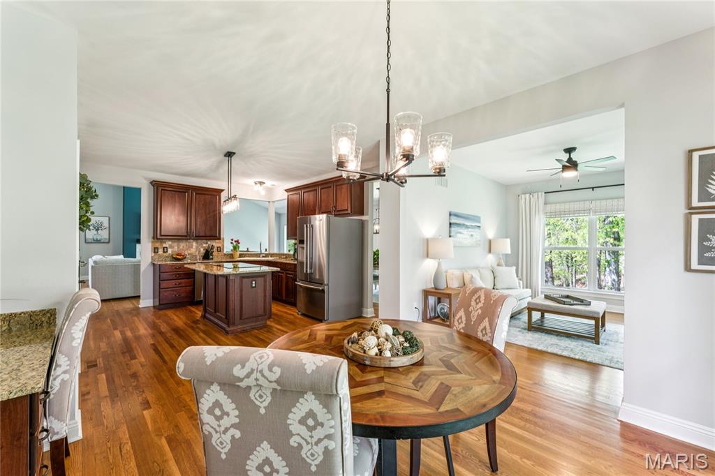Nestled at the end of a quiet cul-de-sac, this stunning residence combines modern sophistication with the warmth of a true family home. Boasting incredible curb appeal and meticulous maintenance, this is the atrium ranch you've been waiting for. Step inside to an airy, open floor plan featuring soaring ceilings and expansive windows that bathe the home in natural light. The kitchen is a chef’s dream, featuring granite countertops, center island, wall oven, and stainless steel appliances. Your personal retreat awaits, complete with a spa-inspired ensuite bath and generous walk-in closet space. Whether you need a quiet home office for those deep-work days or a vibrant playroom, the flexible layout accommodates every stage of life. The lower level is made for entertaining with access to the rear yard and deck, wet bar, and wood burning fireplace. Updates in 2025 include: bedroom carpeting, hearth room wood floors, plantation shutters, light fixtures throughout, additional irrigation. Open house Sunday April 19, 12-2pm!