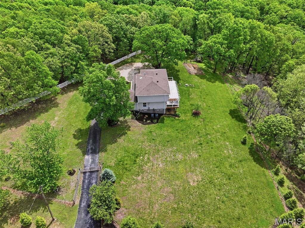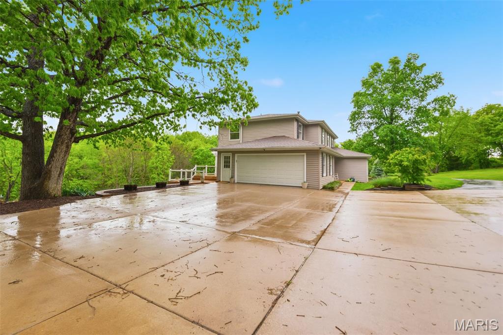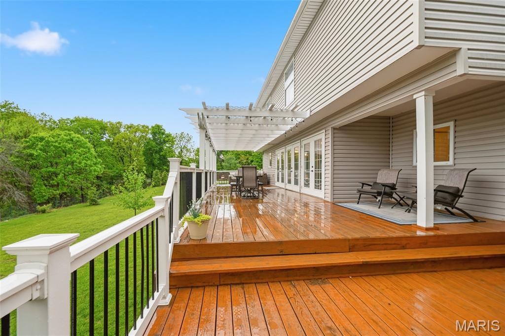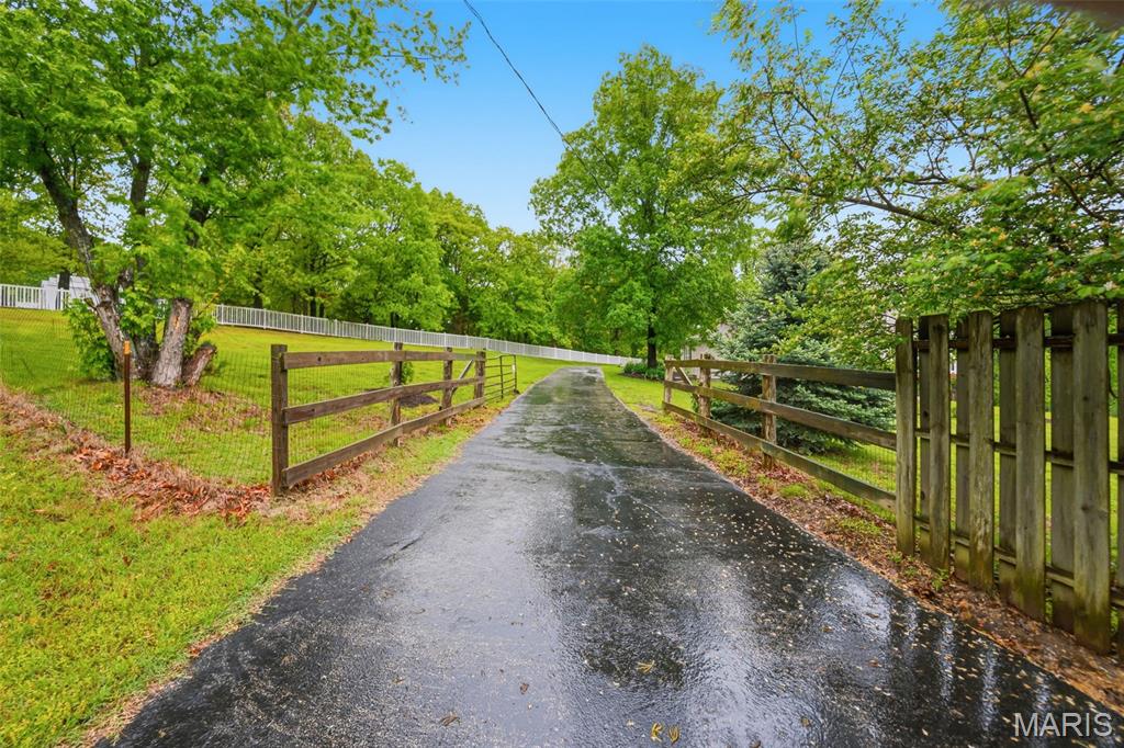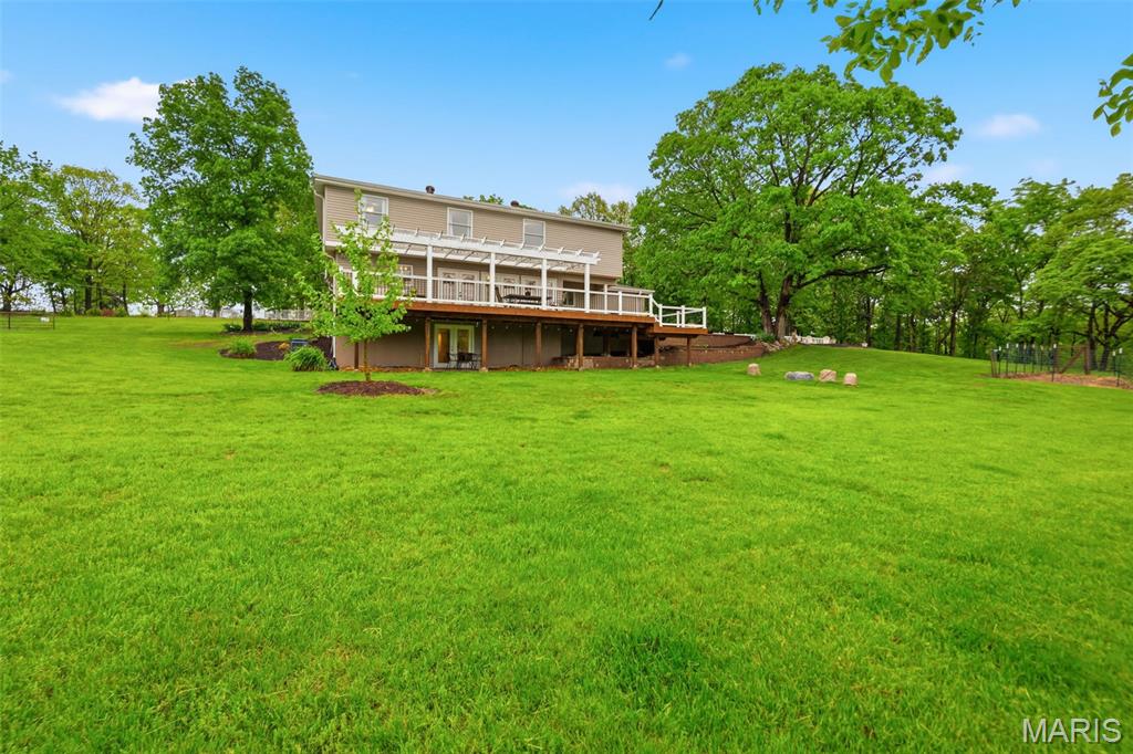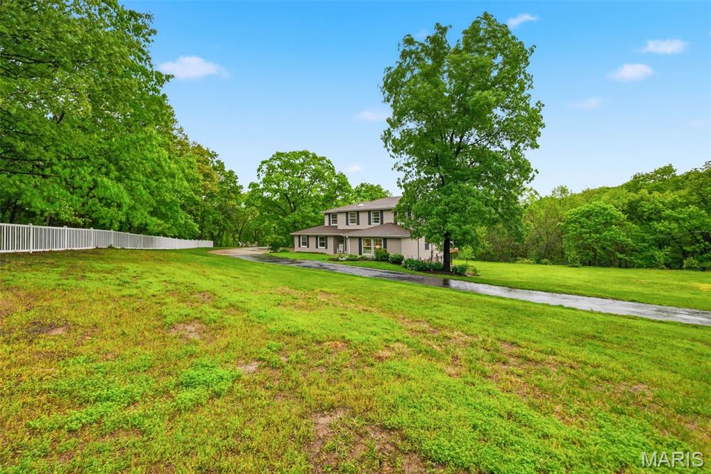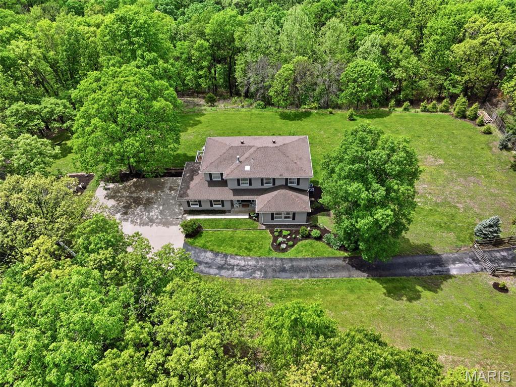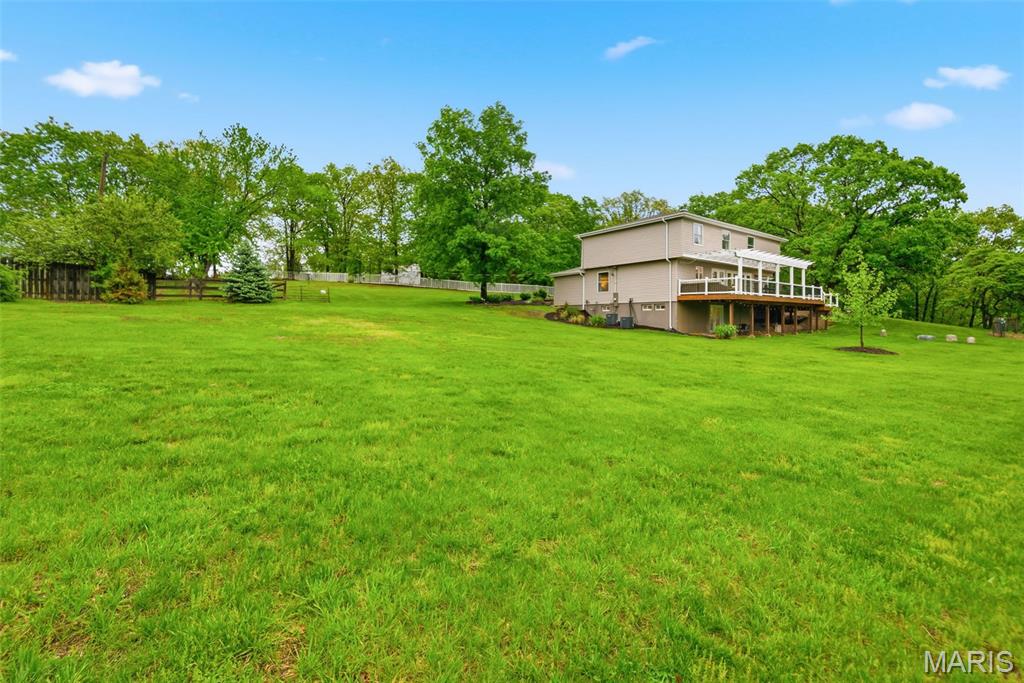 Don’t miss this exceptional Wildwood home, gracefully set on 3 private acres with breathtaking scenic views and a retreat-like setting. Equestrian-friendly—horses are welcome!! The spacious entry foyer welcomes you with bamboo flooring that extends throughout the main level, complementing the home’s inviting and functional floor plan. The living and dining rooms flow seamlessly into the open-concept kitchen and family room, where French doors fill the space with natural light and provide effortless access to the expansive deck—perfect for indoor-outdoor living and entertaining. The kitchen is thoughtfully designed and beautifully appointed with stainless steel appliances, granite countertops, 42-inch cabinetry, and an dreamy walk-in pantry. Upstairs, you’ll find 4 generously sized bedrooms, along with a convenient second-floor laundry that can easily be converted back into a 5th bedroom if desired. The spacious primary suite features a walk-in closet and a well-appointed en-suite bath. The walkout, partially finished lower level offers a recreation room, wet bar, and bonus room—ideal for additional living, entertaining, or flexible use. Outdoors, the property truly shines as a private retreat, featuring a garden area, tasteful landscaping, and a fire pit perfect for gathering and creating lasting memories. The fully fenced grounds provide ample space for recreation, pets, and horses.