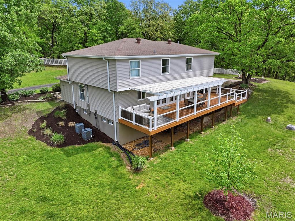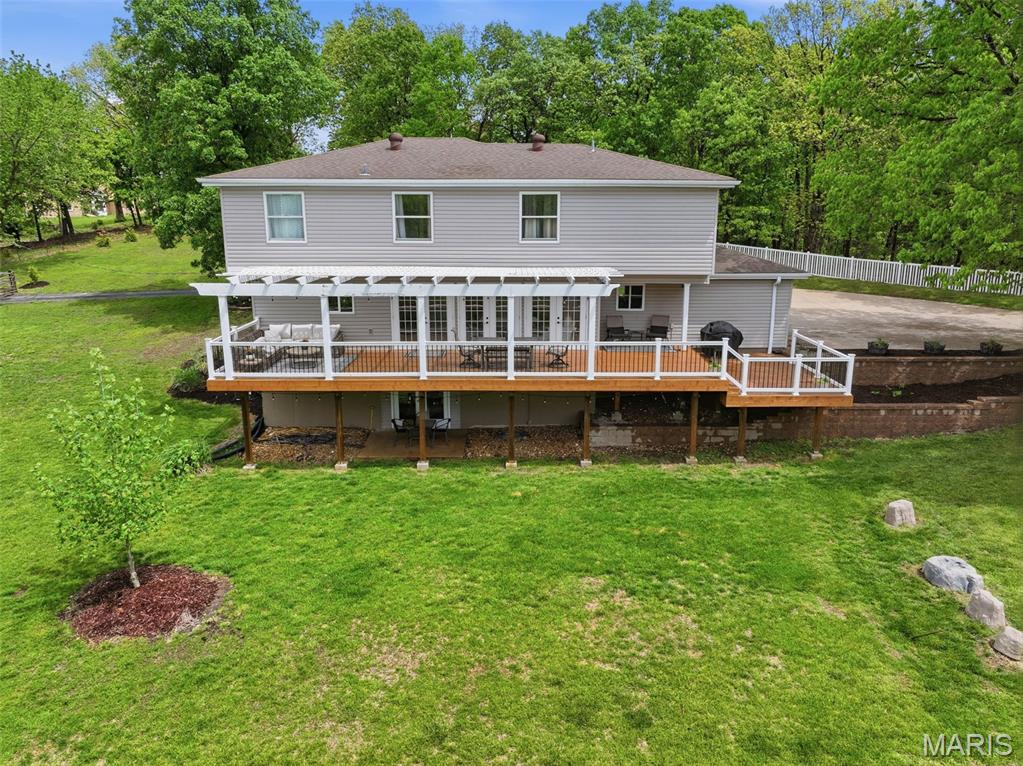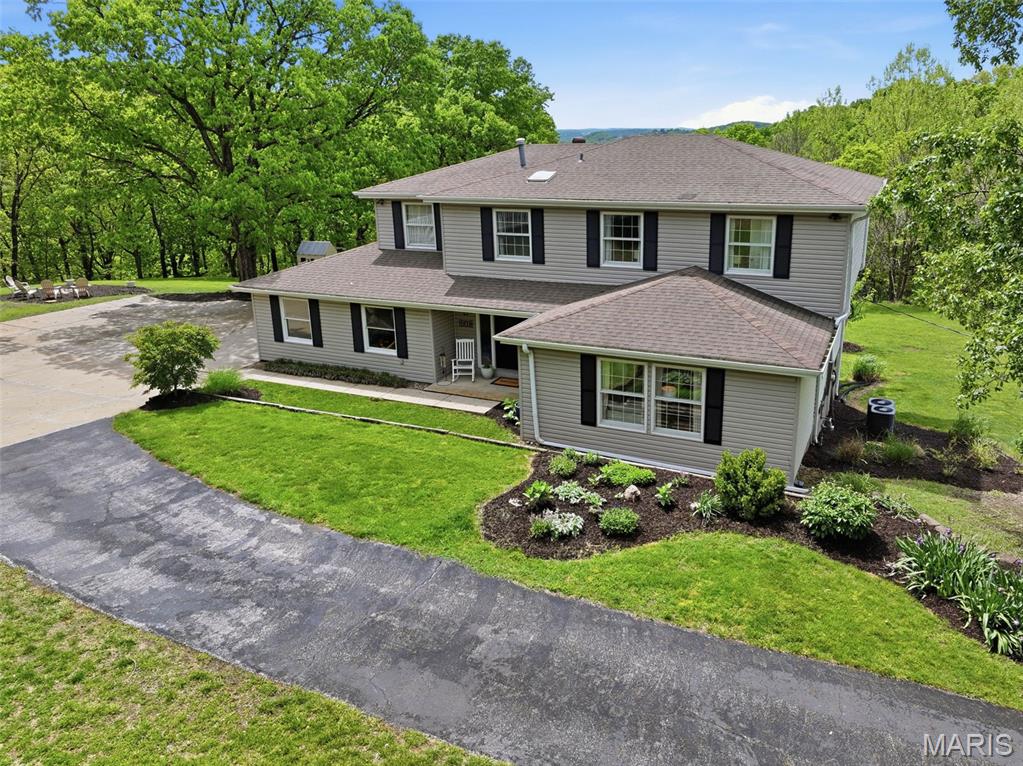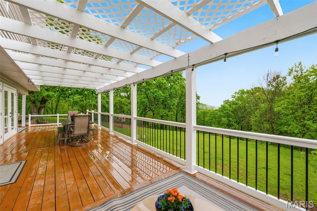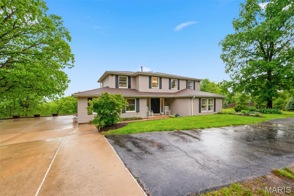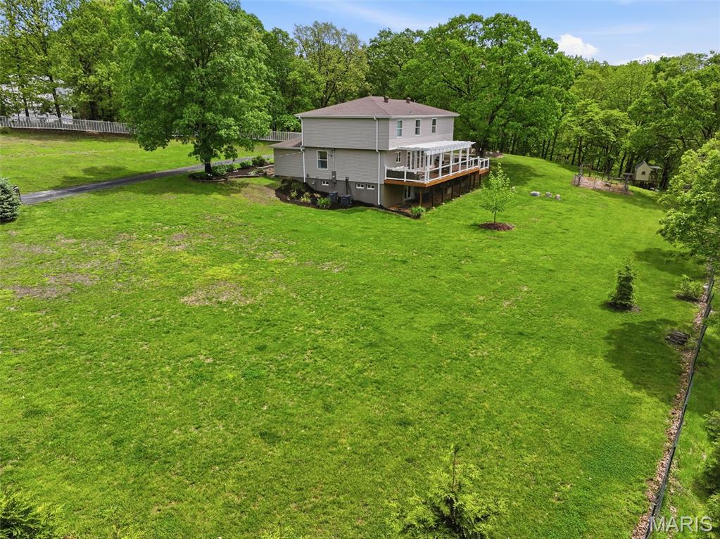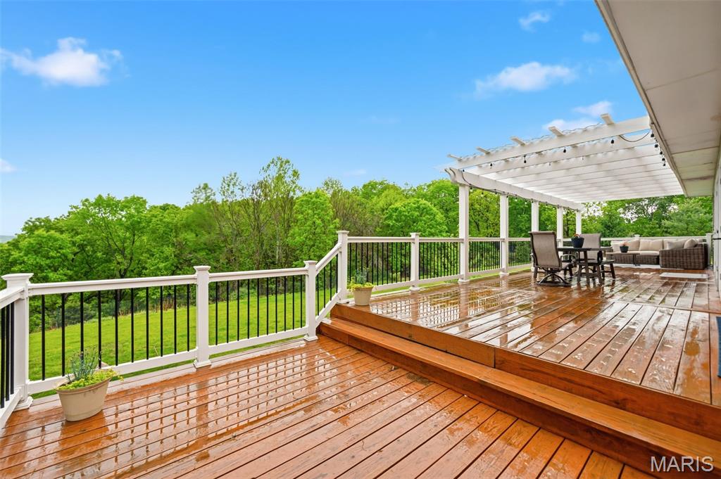 Don’t miss this exceptional Wildwood home, gracefully set on 3 private acres with breathtaking scenic views and a retreat-like setting. Equestrian-friendly—horses are welcome!! The spacious entry foyer welcomes you with bamboo flooring that extends throughout the main level, complementing the home’s inviting and functional floor plan. The living and dining rooms flow seamlessly into the open-concept kitchen and family room, where French doors fill the space with natural light and provide effortless access to the expansive deck—perfect for indoor-outdoor living and entertaining. The kitchen is thoughtfully designed and beautifully appointed with stainless steel appliances, granite countertops, 42-inch cabinetry, and an dreamy walk-in pantry. Upstairs, you’ll find 4 generously sized bedrooms, along with a convenient second-floor laundry that can easily be converted back into a 5th bedroom if desired. The spacious primary suite features a walk-in closet and a well-appointed en-suite bath. The walkout, partially finished lower level offers a recreation room, wet bar, and bonus room—ideal for additional living, entertaining, or flexible use. Outdoors, the property truly shines as a private retreat, featuring a garden area, tasteful landscaping, and a fire pit perfect for gathering and creating lasting memories. The fully fenced grounds provide ample space for recreation, pets, and horses.