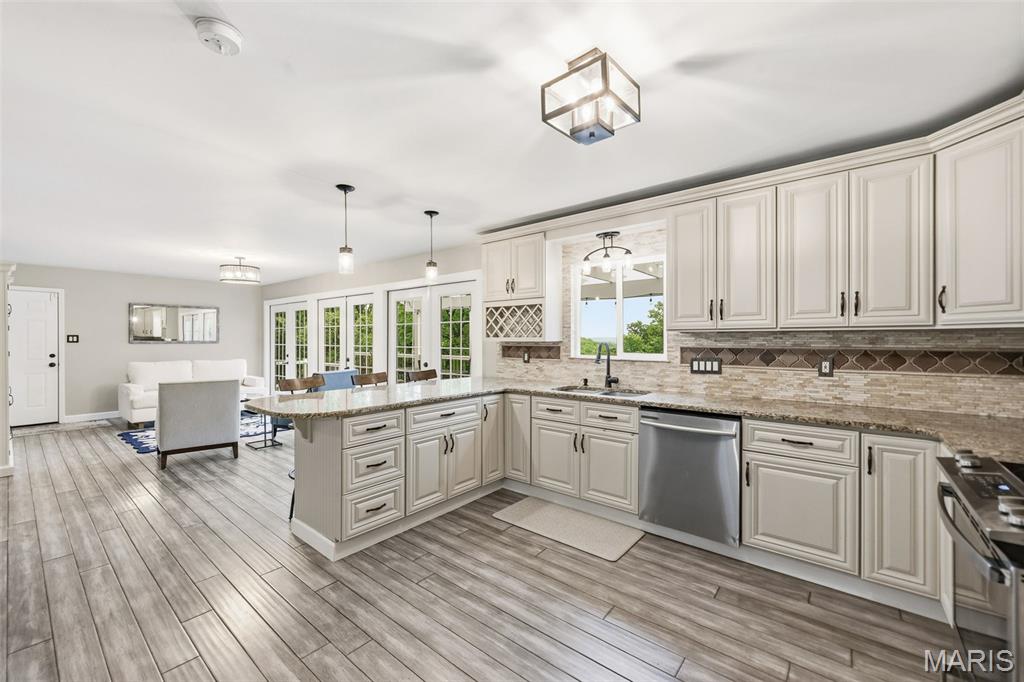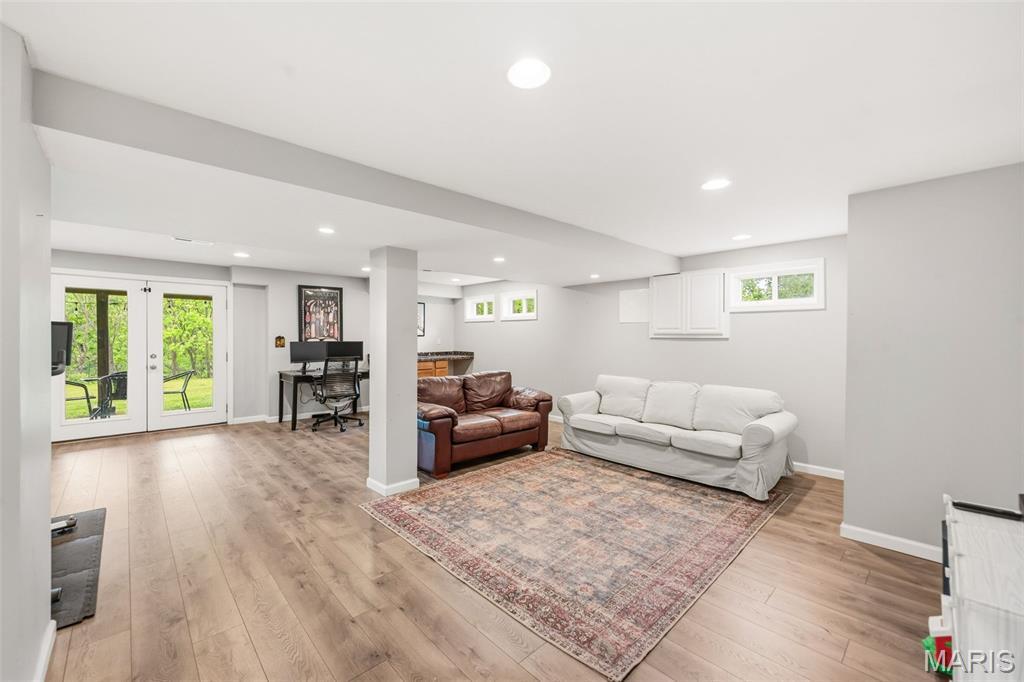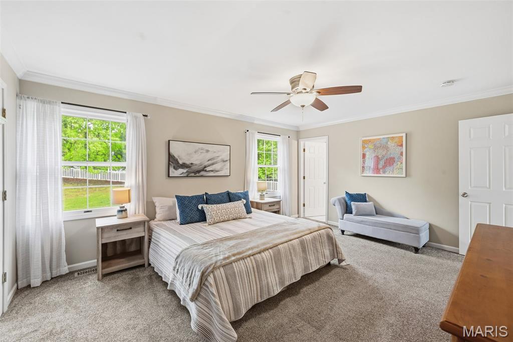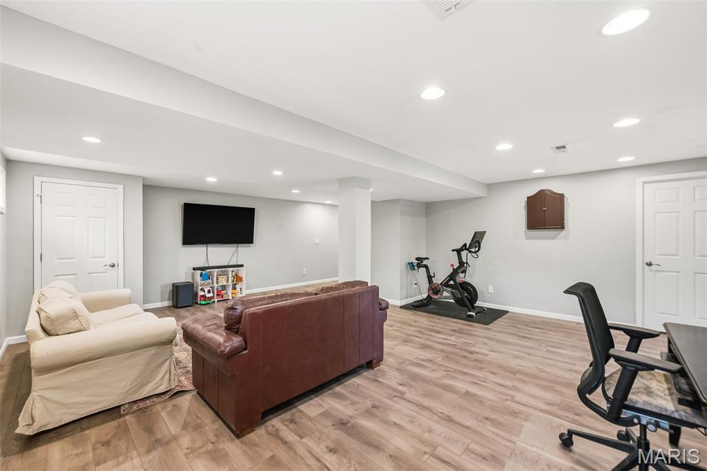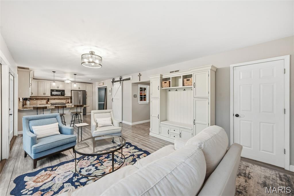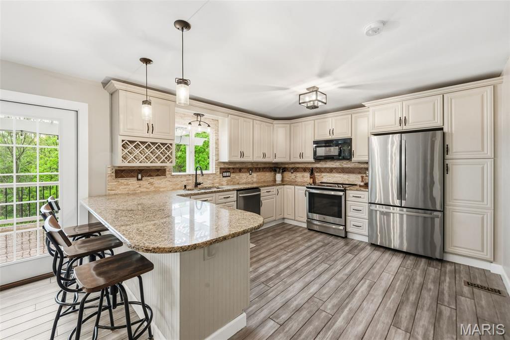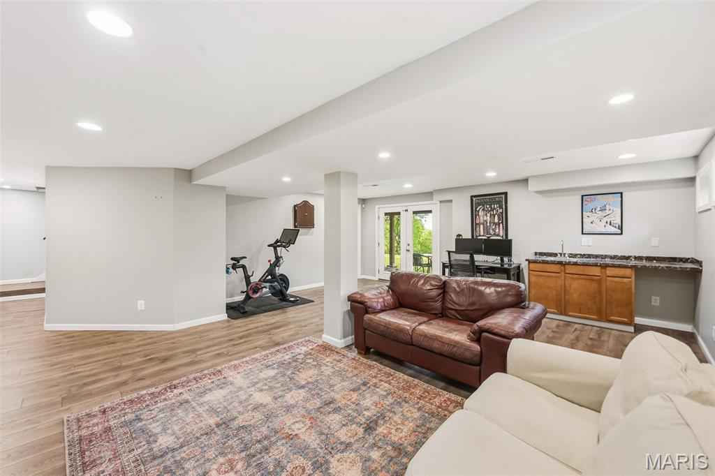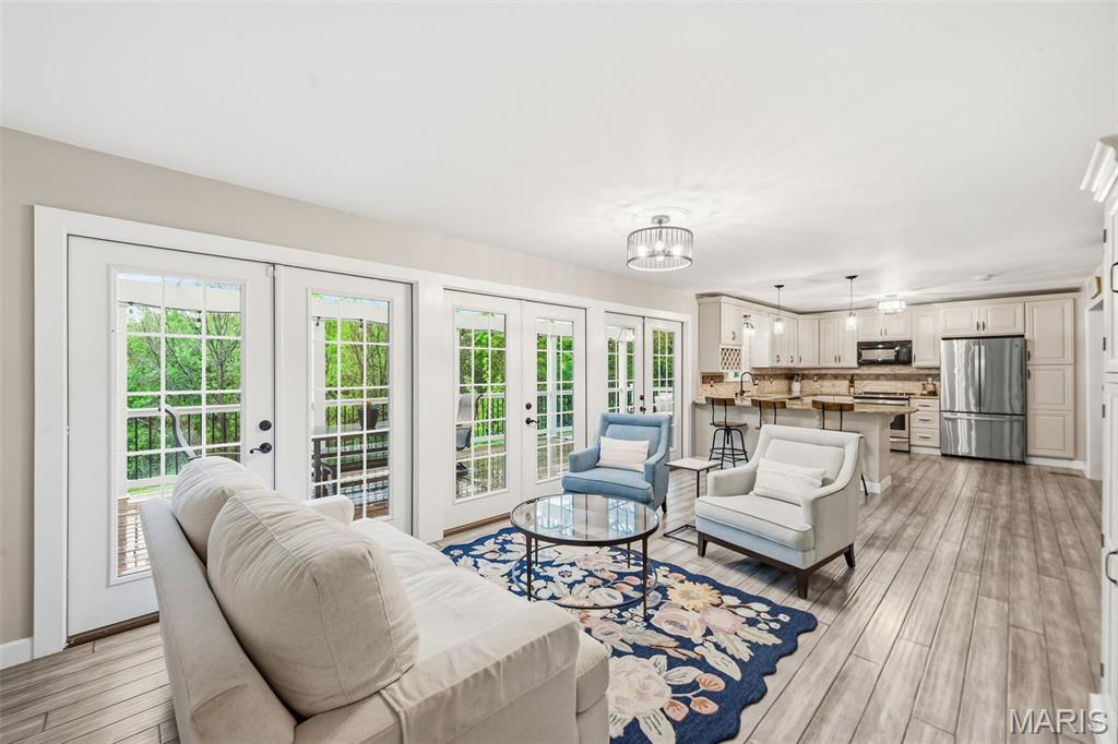 Don’t miss this exceptional Wildwood home, gracefully set on 3 private acres with breathtaking scenic views and a retreat-like setting. Equestrian-friendly—horses are welcome!! The spacious entry foyer welcomes you with bamboo flooring that extends throughout the main level, complementing the home’s inviting and functional floor plan. The living and dining rooms flow seamlessly into the open-concept kitchen and family room, where French doors fill the space with natural light and provide effortless access to the expansive deck—perfect for indoor-outdoor living and entertaining. The kitchen is thoughtfully designed and beautifully appointed with stainless steel appliances, granite countertops, 42-inch cabinetry, and an dreamy walk-in pantry. Upstairs, you’ll find 4 generously sized bedrooms, along with a convenient second-floor laundry that can easily be converted back into a 5th bedroom if desired. The spacious primary suite features a walk-in closet and a well-appointed en-suite bath. The walkout, partially finished lower level offers a recreation room, wet bar, and bonus room—ideal for additional living, entertaining, or flexible use. Outdoors, the property truly shines as a private retreat, featuring a garden area, tasteful landscaping, and a fire pit perfect for gathering and creating lasting memories. The fully fenced grounds provide ample space for recreation, pets, and horses.