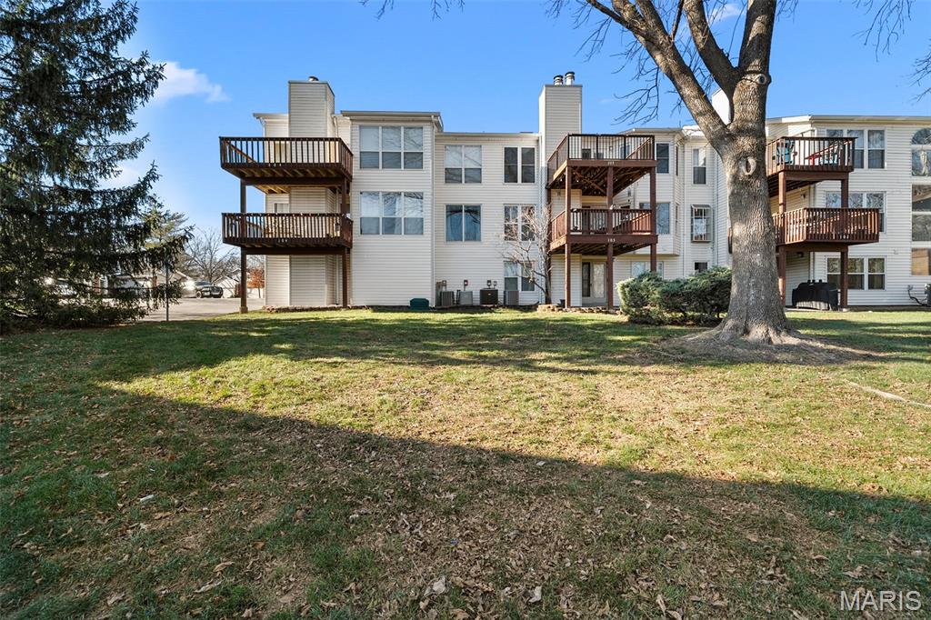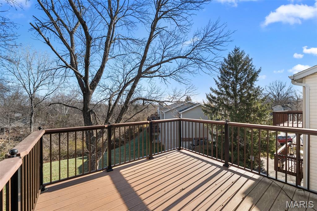 Welcome home to this inviting 2-bedroom, 2-bath condo in the desirable Woodside Trails community of Ballwin, nestled in a very quiet neighborhood. Located on the second floor, this well-maintained residence offers a comfortable, low-maintenance lifestyle in a peaceful, tree-lined setting. Upon entering, you’ll appreciate the distinctive tongue-and-groove wood accent wall, adding warmth and character to the space. The open and functional layout is filled with abundant natural light, neutral finishes, and flexible living areas ideal for everyday living or entertaining. Enjoy the rear deck overlooking a large common area with a small wooded backdrop, providing a serene outdoor retreat. The deck was replaced in 2019 and features low-maintenance composite flooring with aluminum rails and spindles. Community amenities include a pool, clubhouse, and conveniently located tennis and pickleball courts. Recent improvements include fresh paint throughout the entire condo in September, a new water heater installed in October, and all window screens rescreened in September. Woodside Trails also offers beautifully maintained grounds and easy access to shopping, dining, parks, and major highways, making commuting and daily errands a breeze. All appliances will remain in unit. This Ballwin condo delivers comfort, convenience, and exceptional value in a sought-after location.