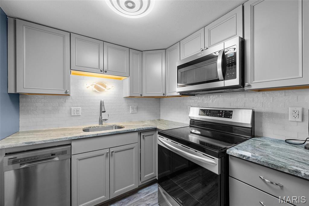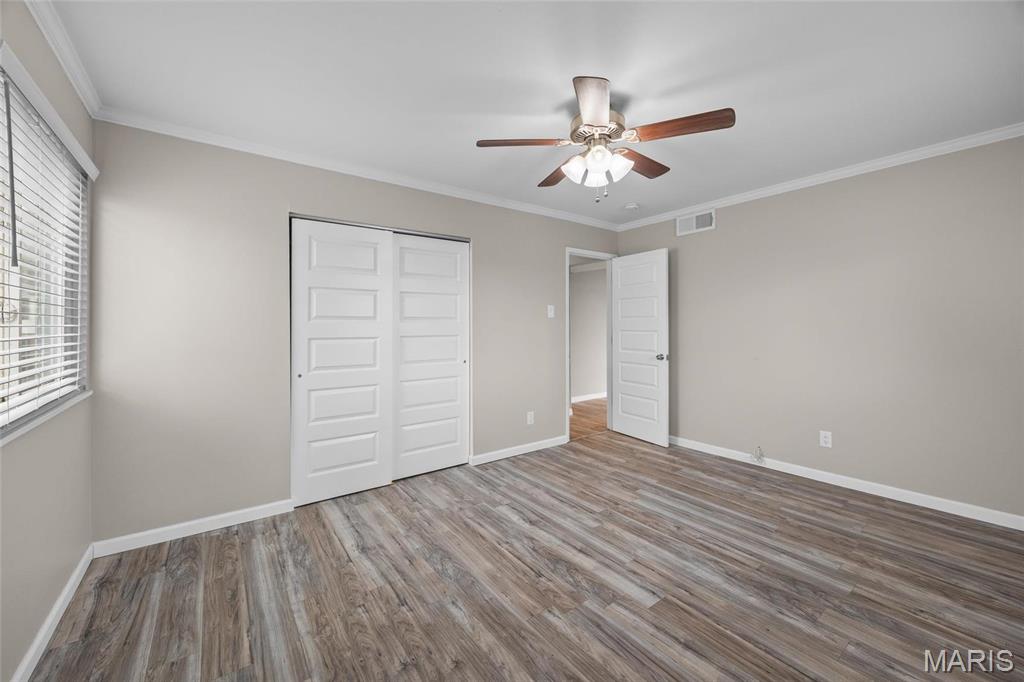 Enjoy this renovated two bed, one bath condo. This is low maintenance living at its best! Details...Details...Lots of all new items down to vent covers and doorknobs. There is luxury wood plank flooring, all new designer doors and crown molding throughout. Kitchen features all new cabinets, granite countertops, new sink with new disposal, neutral backsplash and a pantry too! Don't forget to take a look at the all-new stainless steel appliances to include a specialty dishwasher and icemaker. Large 15x11 Primary Bedroom with large closet with built in shelves. New wood blinds and fans in all bedrooms. You will find additional storage in the large 4x4 closet in the hallway as well as optional storage overhead in the crawl space. Livingroom is 16x12 with added can lighting and a closet in the entry way. Complete unit has been remediated fo Copper wiring, hardwired smoke detectors. Location: Interior Unit