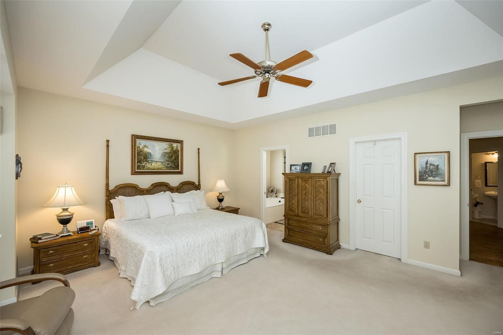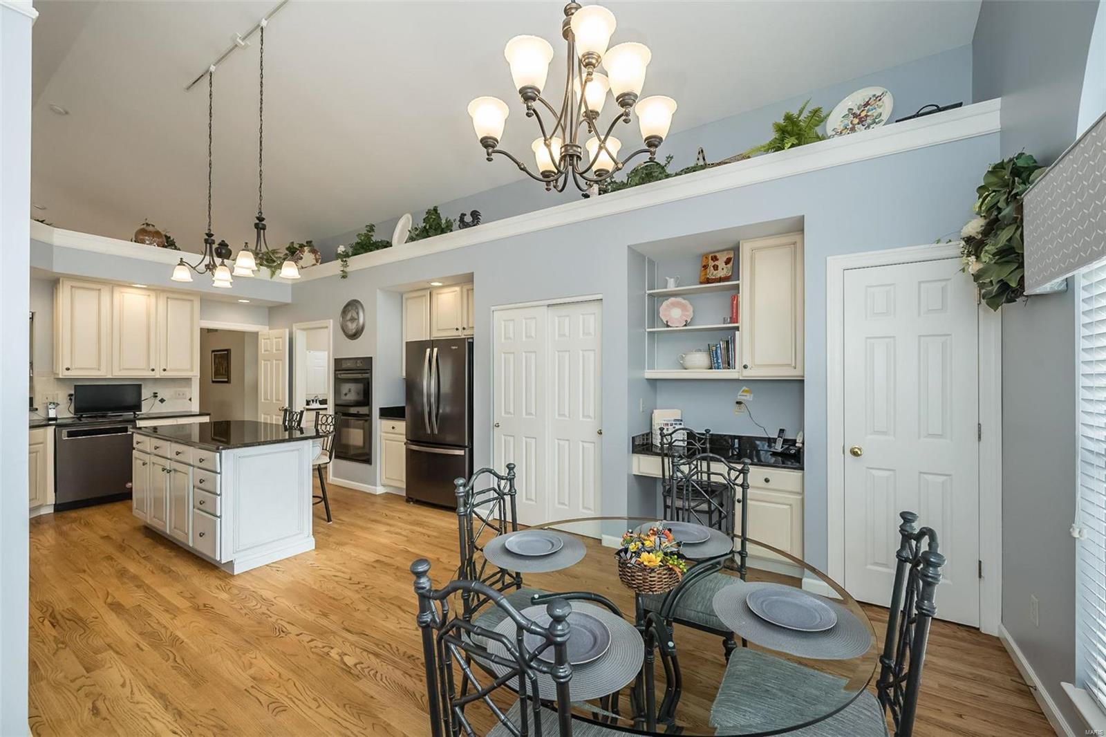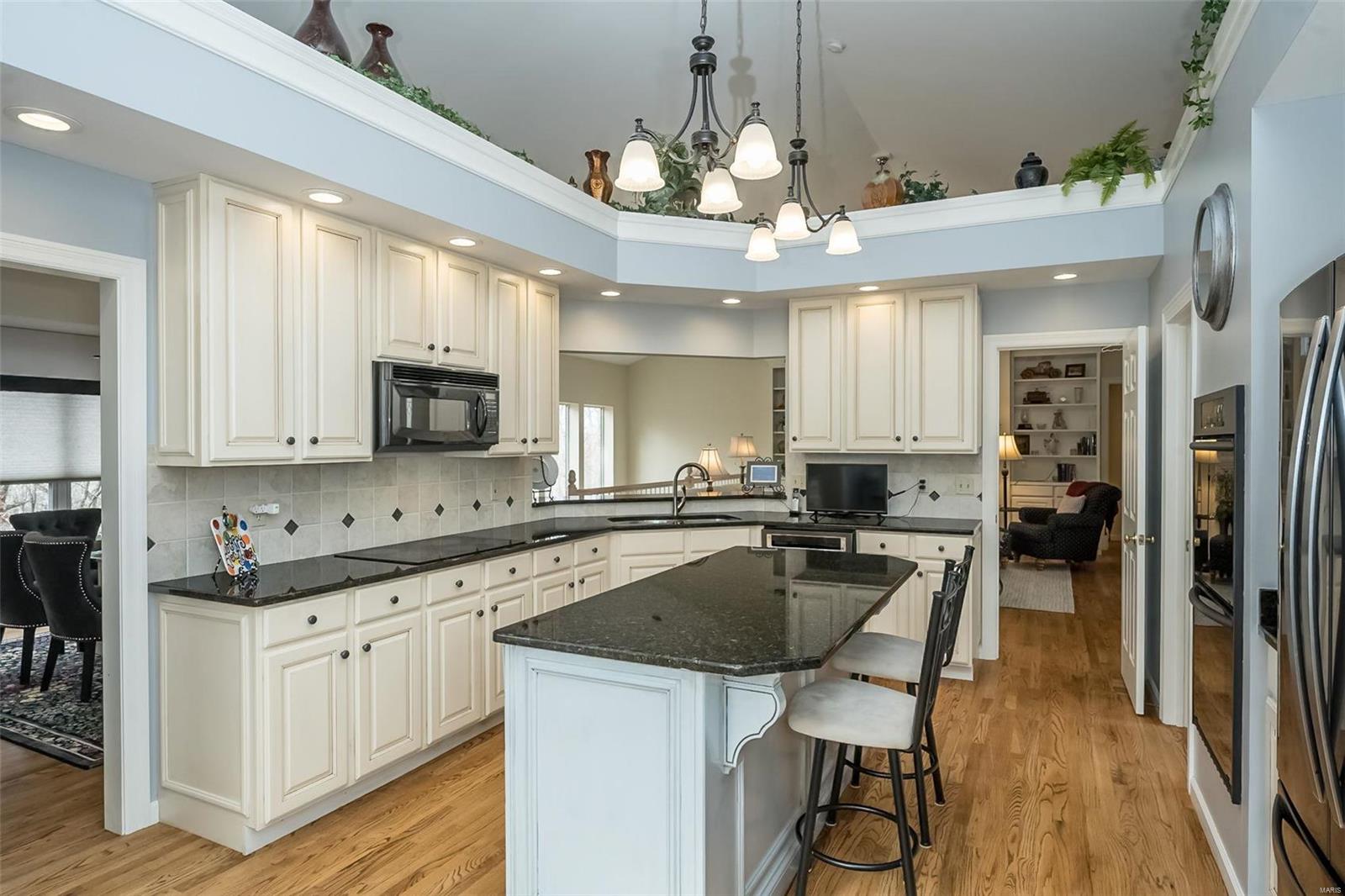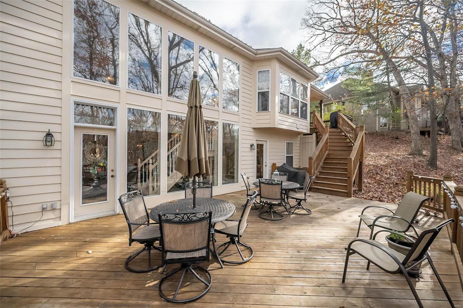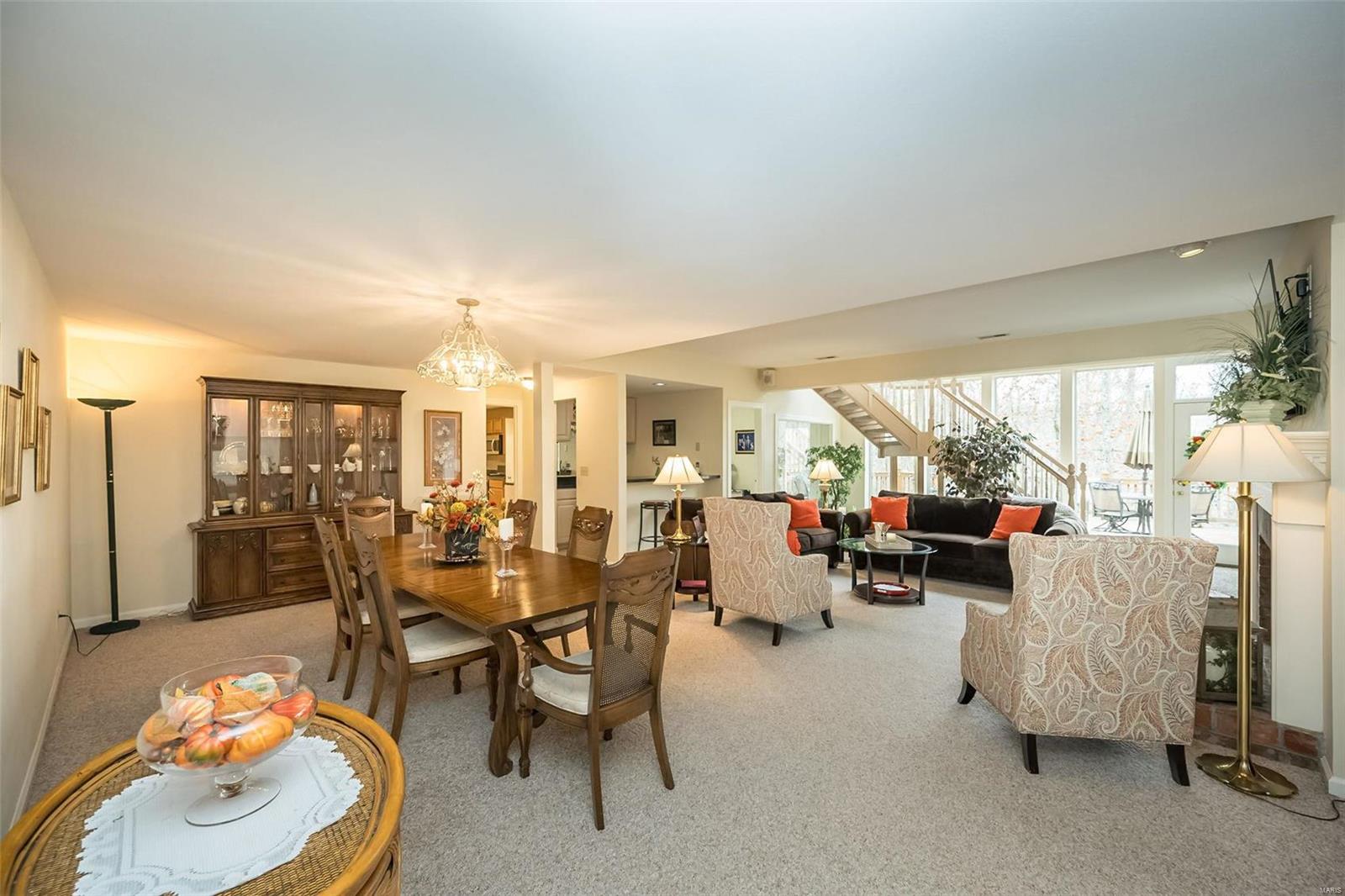 This stunning atrium ranch, located in Wildhorse Village has been lovingly cared for by its original owner & is ready for YOU! This meticulously maintained 4-bedroom, 3.5-bath home offers 3,700+ sq. ft. of finished space. The chef’s kitchen features vaulted ceilings, a center island, hardwood floors, & a breakfast room that opens to a covered deck. The spacious living room includes a wall of windows, hardwood floors, & a fireplace. The luxurious primary suite boasts a 5-window bay, coffered ceiling, huge walk-in closet, & a newly renovated bath. The walk-out lower level is perfect for entertaining w/ a FULL KITCHEN, great room, fireplace, wet bar, 4th bedroom, and full bath. Enjoy the large cedar deck overlooking the private, wooded backyard. Additional features include a 3-car side-entry garage, new roof to be installed prior to closing. The neighborhood features 2 swimming pools, tennis courts, & multiple nature trails. This home offers the perfect blend of privacy & convenience!