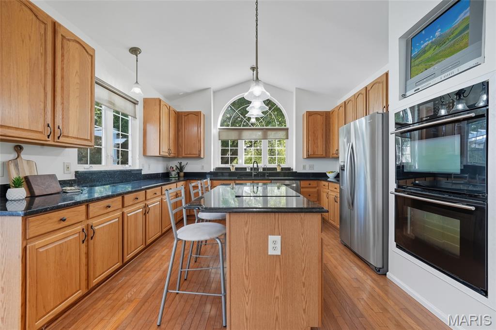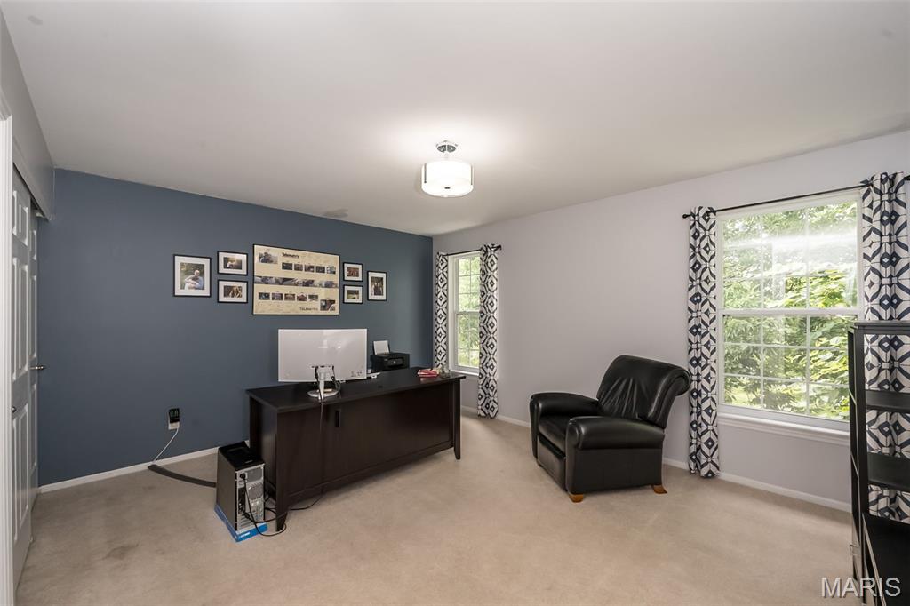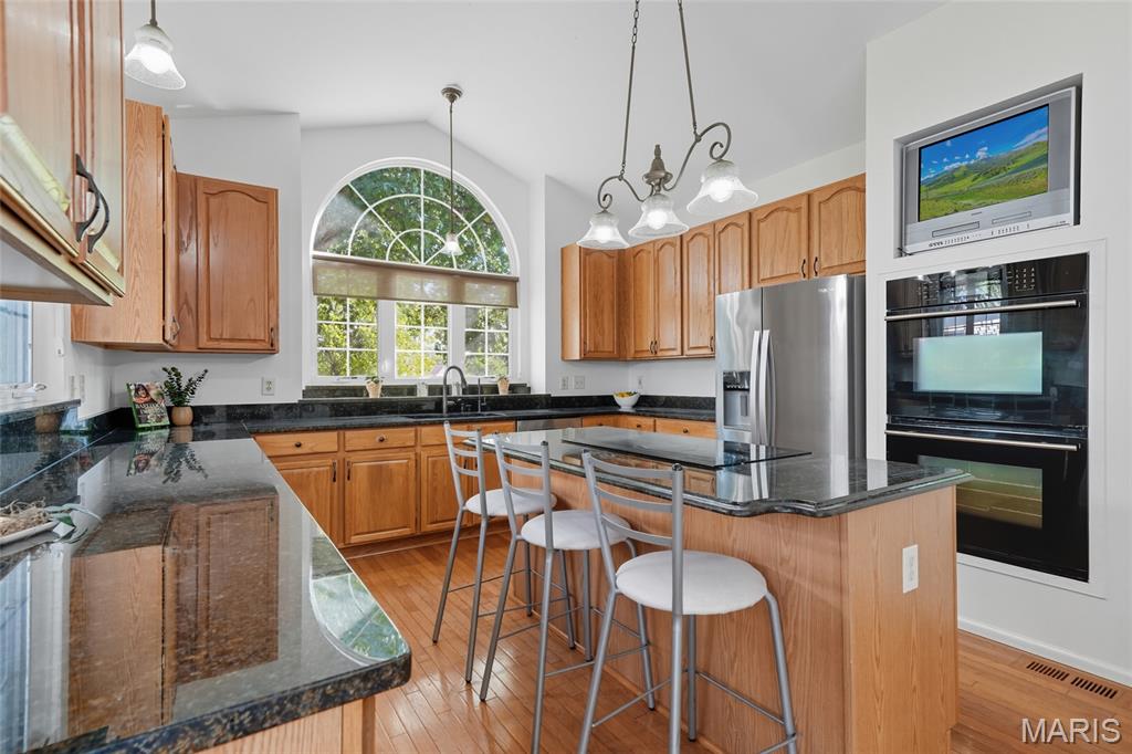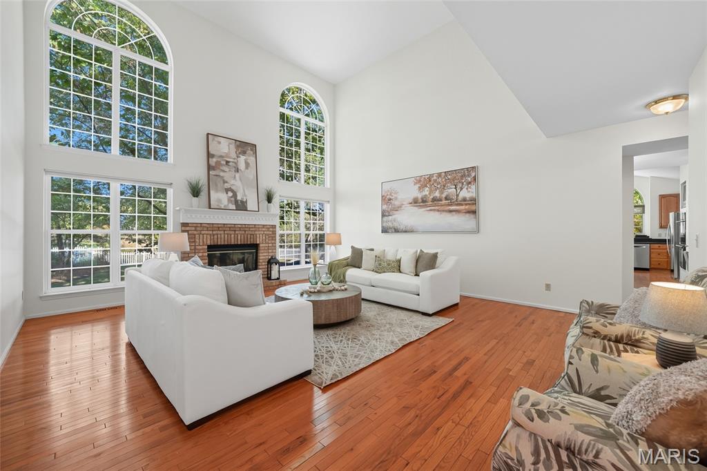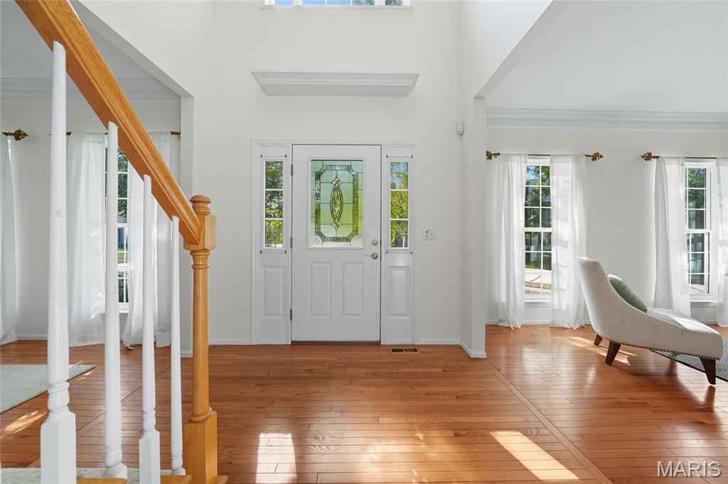 Recently updated and freshly painted, you will love the new look of this charming 1.5 story home that has over 3800 sq. ft. of living space and sits on an approximately 0.46-acre level lot. The home offers 4 bedrooms and 3 full and 2-1/2 bathrooms. The fenced backyard provides a lovely outdoor space to enjoy the built-in stone fireplace, relaxing under the pergola or enjoying the stone patio overlooking the trees and woods. The open-concept layout of the interior of the home creates a welcoming and functional floor plan. The Great room living area features large ceiling to floor windows. The kitchen is equipped with ample cabinetry and counter space, providing an ideal setting for meal preparation and entertaining. The main floor laundry room is just off the kitchen and has a utility sink and storage closet. The main floor primary bedroom suite features ample square footage, large walk-in closet and an ensuite bathroom with separate tub and shower and his and hers vanities. The additional 3 bedrooms are well-proportioned, and 2 bedrooms share access to Jack n Jill bath with double vanities. There is also a 2nd floor ensuite with adjoining full bathroom. The lower level has a 1/2 bath, pool room area, workshop area with built-in shelves and bench, and recreation room with electric stove fireplace. You will love the 3-car garage with epoxy painted floors. The property's location allows for convenient access to a variety of amenities in the surrounding area.