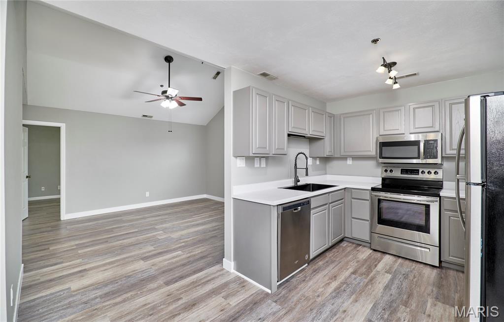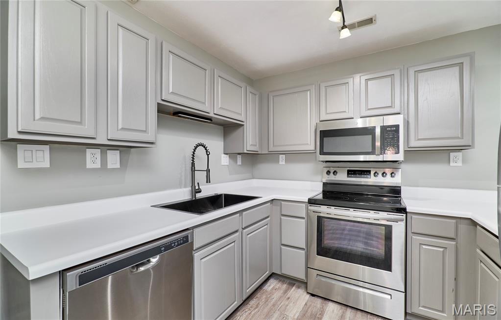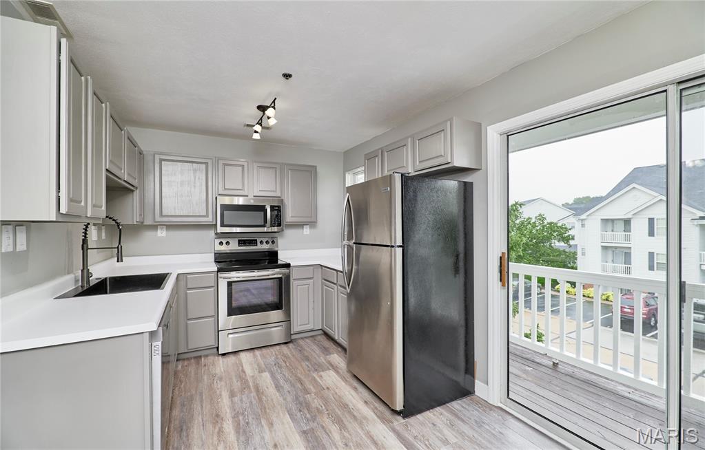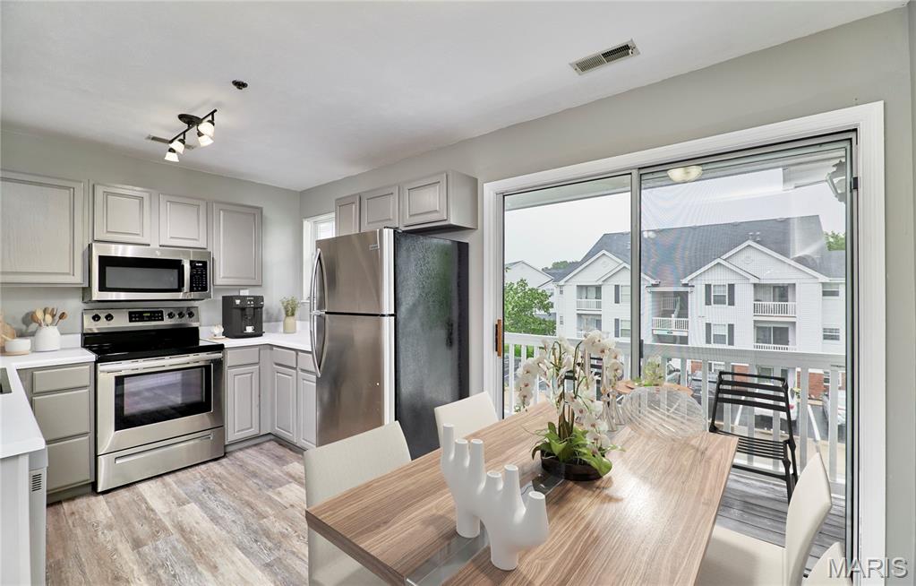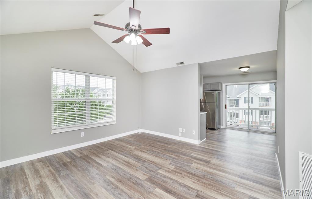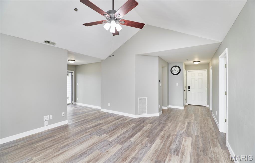 Top-floor privacy and luxurious vaulted ceilings set the tone in this beautifully updated 2-bed, 2-bath condo in the heart of Wildwood! Enjoy the comfort of no upstairs neighbors and sunlit, open living areas with stylish LVP flooring throughout. The kitchen features newer stainless-steel appliances, a large sink, and plenty of prep space. Both bathrooms are updated with tile floors and sleek new vanities. The primary suite includes a roomy walk-in closet and updated en-suite. Step outside to your private covered balcony—perfect for morning coffee or evening breezes. Added perks: front screen door, ceiling fans, and private storage locker. The building backs to peaceful green space with mature trees. Enjoy community amenities like a pool, playground, walking trails, tennis & basketball courts—all minutes from Wildwood Town Center, shopping, dining, and the YMCA.