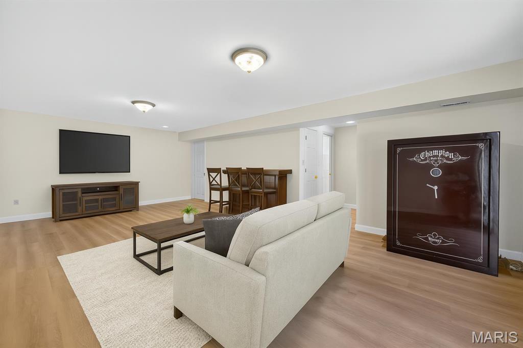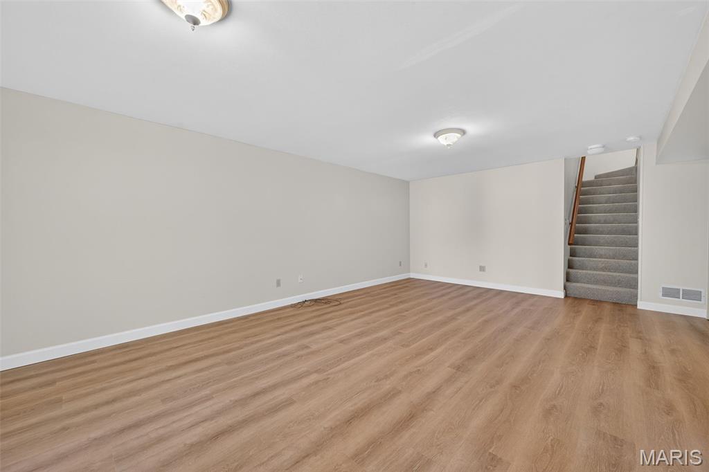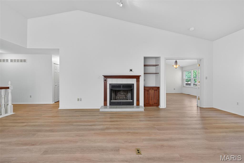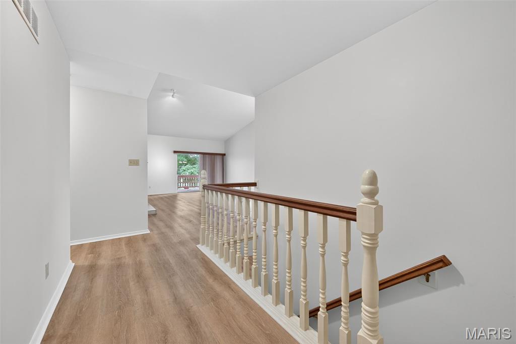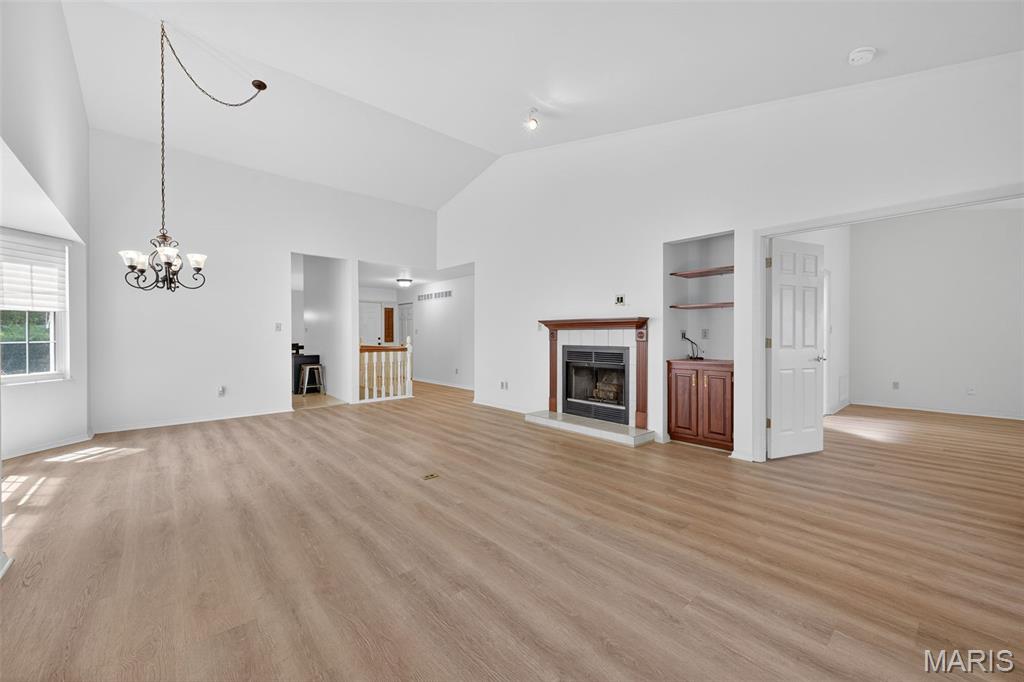 Love lake life without the maintenance? This spacious 3-bedroom, 3-bath villa in the Harbors at Lake Chesterfield offers the perfect blend of peaceful retreat and everyday convenience. Enjoy morning walks around the scenic lake, afternoons by the pool, and evenings at the clubhouse or on your private deck. Inside, you’ll find an open main-floor layout with vaulted ceilings, a cozy woodburning fireplace, and main-floor laundry. The finished walk-out lower level expands your living space and includes a full bath, ideal for guests, a home office, or hobbies. One of the home's most underrated features is the incredible amount of storage throughout, including deep closets, built-in shelving, and a nice size garage with extra room for gear, tools, or seasonal items. With low-maintenance HOA living, quick access to shopping and dining in Wildwood, and top-rated Rockwood schools nearby, this villa makes everyday living feel like a getaway. *Total Living is area is based on Above Grade Tax Record and Below Grade Floorplan.