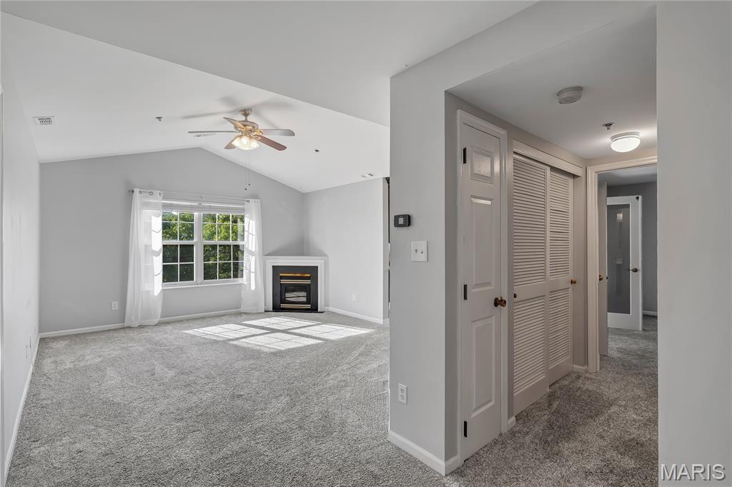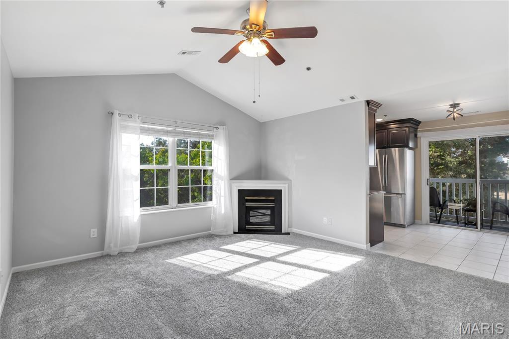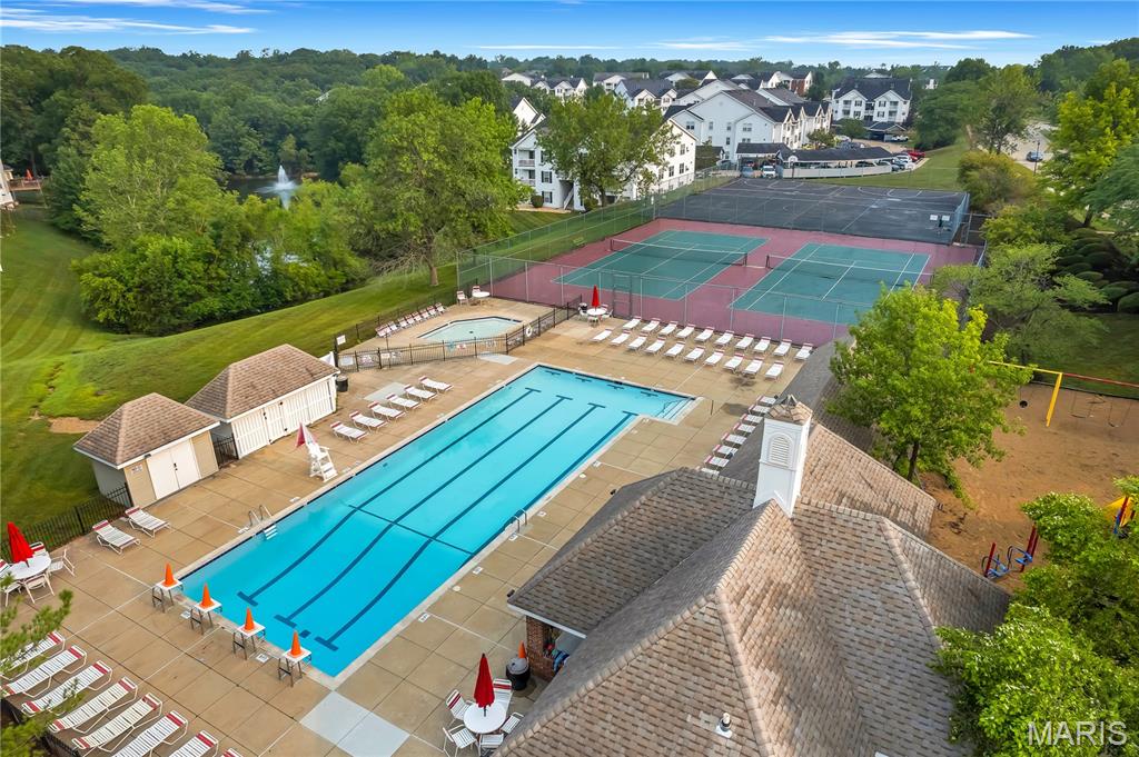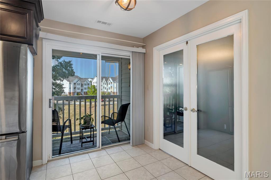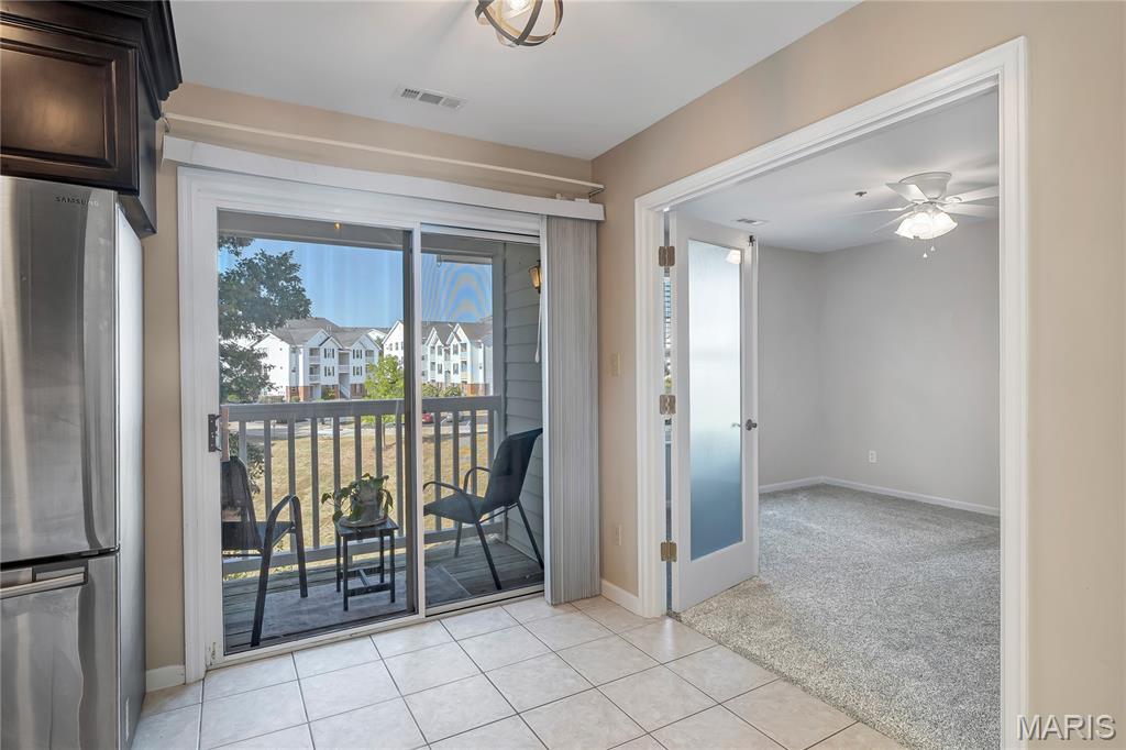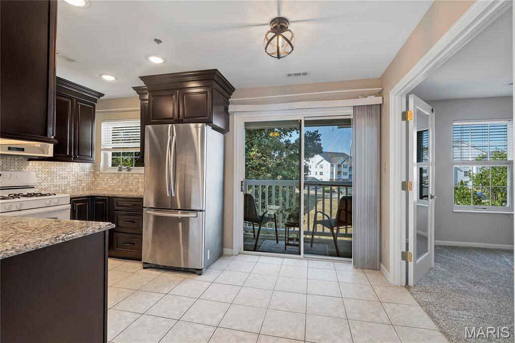 COMES WITH A COVERED PARKING SPOT! Welcome to Victoria Crossing! It’s not hard to picture yourself enjoying life in this beautifully updated 2 bed, 2 bath Rockwood School District condo that is conveniently located near local shops & entertainment. The living room features a gas fireplace, vaulted ceilings, gorgeous natural light, & calming views of the wooded common ground and lake. In the kitchen you will find granite countertops, upgraded cabinets with under cabinet lighting, & a stainless steel french door refrigerator. Next is the owners suite, complete with a walk-in closet, full bath, & more refreshing natural light. The second bedroom/office has french doors & is just two steps away from the second full bath. Enjoy the easy access main floor laundry (the washer and dryer stay) and bonus storage off the balcony. Victoria Crossing comes with great amenities including sparkling pools, playgrounds, & tennis courts. This unit has an added bonus of a rare dedicated covered parking spot. Book your appointment today!