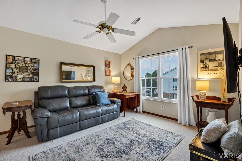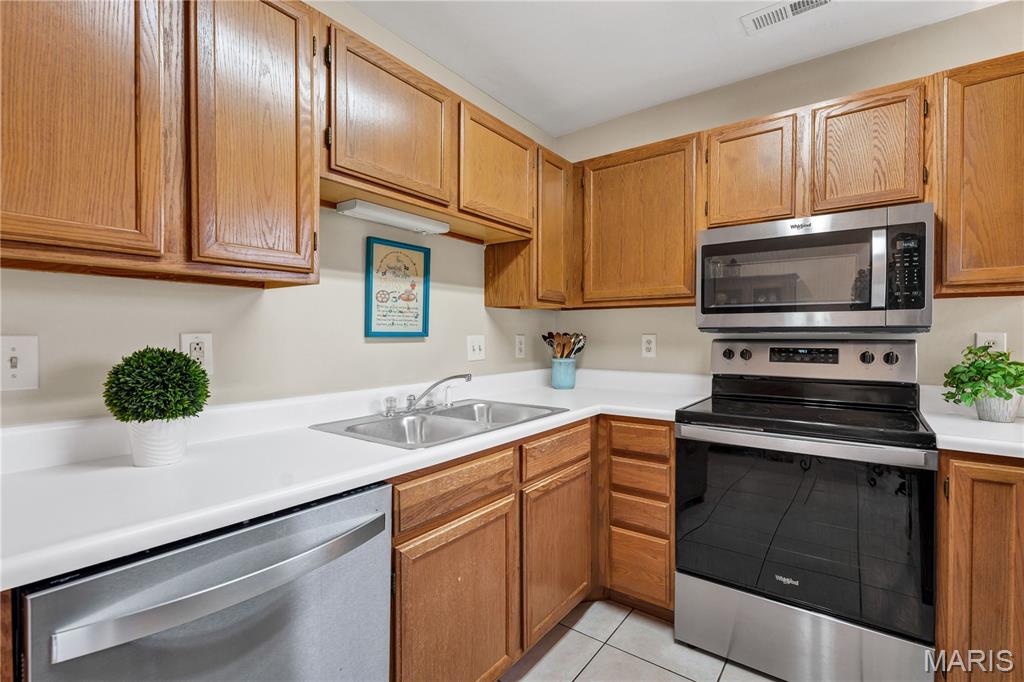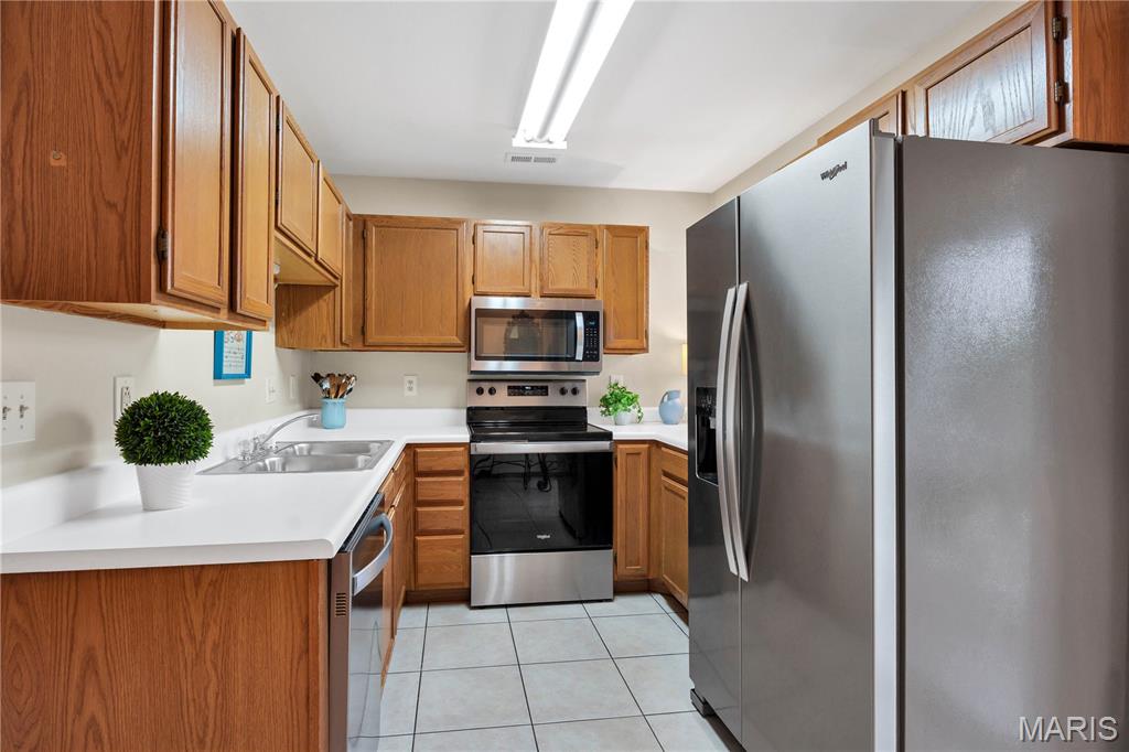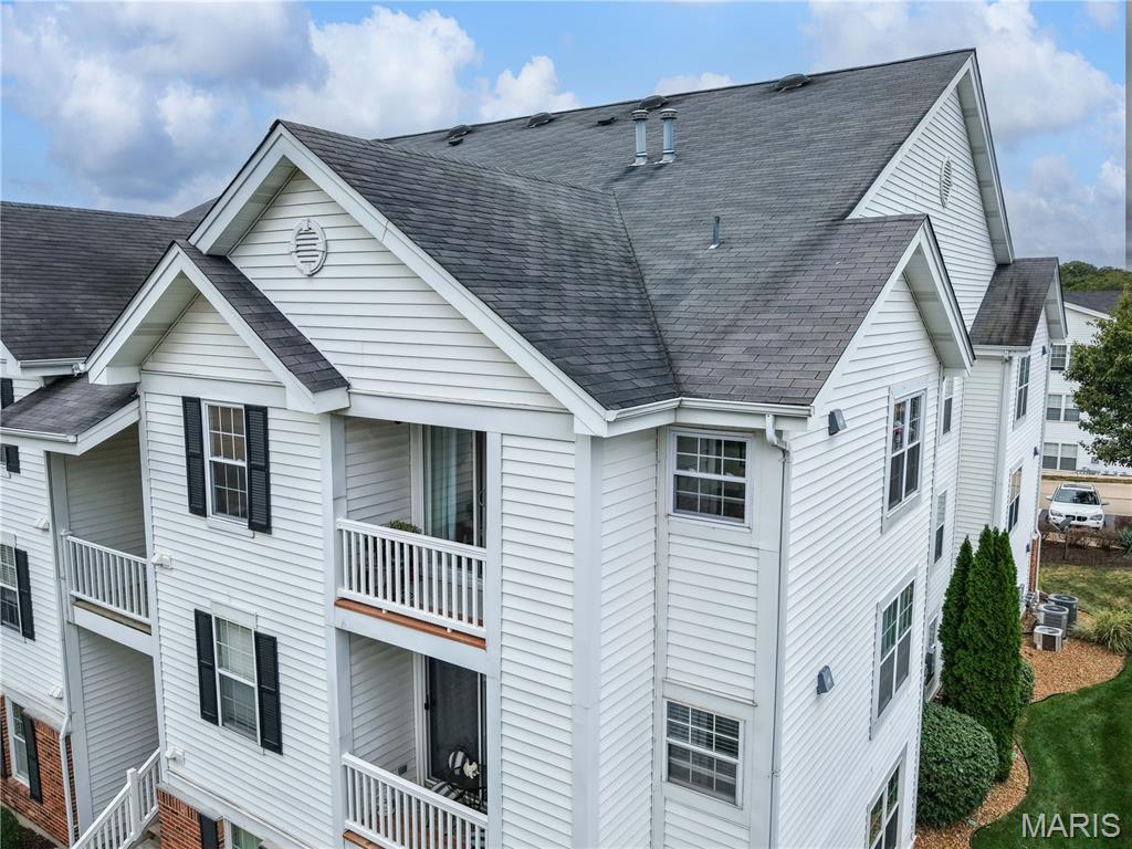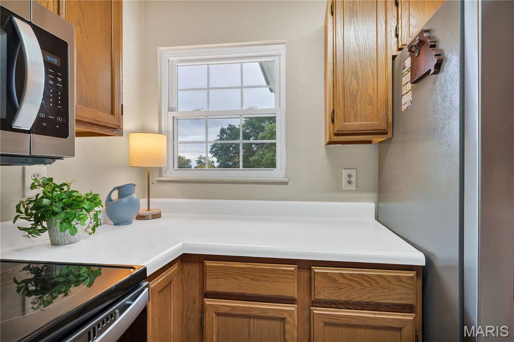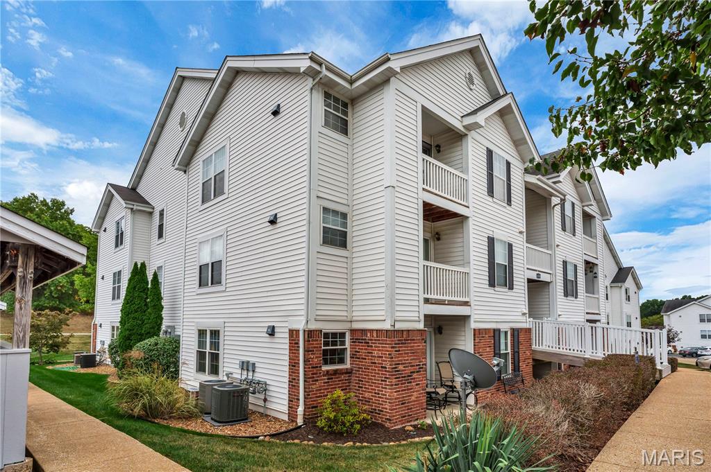 Easy Wildwood living awaits in the desirable, park-like community of Victoria Crossing! Enjoy a highly walkable, bikeable lifestyle in the heart of Wildwood, just minutes from Town Center, shopping, dining, entertainment, and the area’s extensive trail system. This popular top-floor 2-bedroom, 2-bath condo offers an open, light-filled layout, with a vaulted ceiling in the Living Room that enhances the spacious feel and adds architectural charm. Soak up the sun - and the savings, with new (2022) thermal entry and sliding doors plus energy-efficient double tilt-in windows throughout, resulting in up to 30% annual utility savings. The Kitchen shines with new stainless steel appliances (2022) that include: dishwasher, electric range, built-in microwave, and refrigerator that stays - plus a new garbage disposal (2025). The Dining Area opens to a private balcony with storage closet and a pleasant open view. The Primary Suite features a walk-in closet, lighted ceiling fan, and full private bath. Enjoy an active and relaxing lifestyle with two community pools, a playground, tennis and basketball courts, and multiple scenic ponds—all within a beautifully maintained setting. Experience the convenience of this outstanding location—where exceptional trails, restaurants, shopping and community events are just steps away. Savor morning coffee, browse local shops, or meet friends for dinner—all the benefits of Wildwood Town Center are right at your doorstep! Water, sewer, and trash are included in monthly HOA. Highly rated Rockwood School District.
